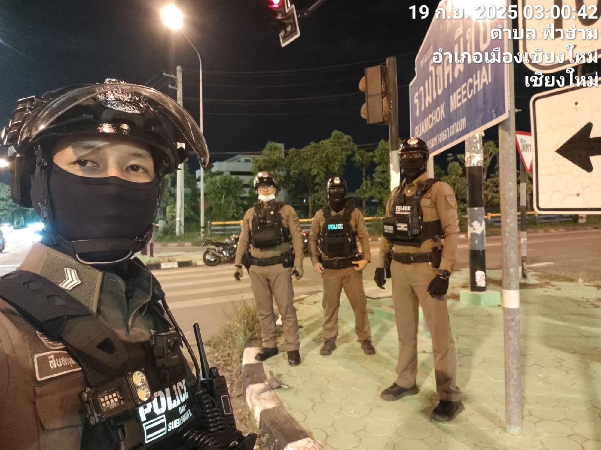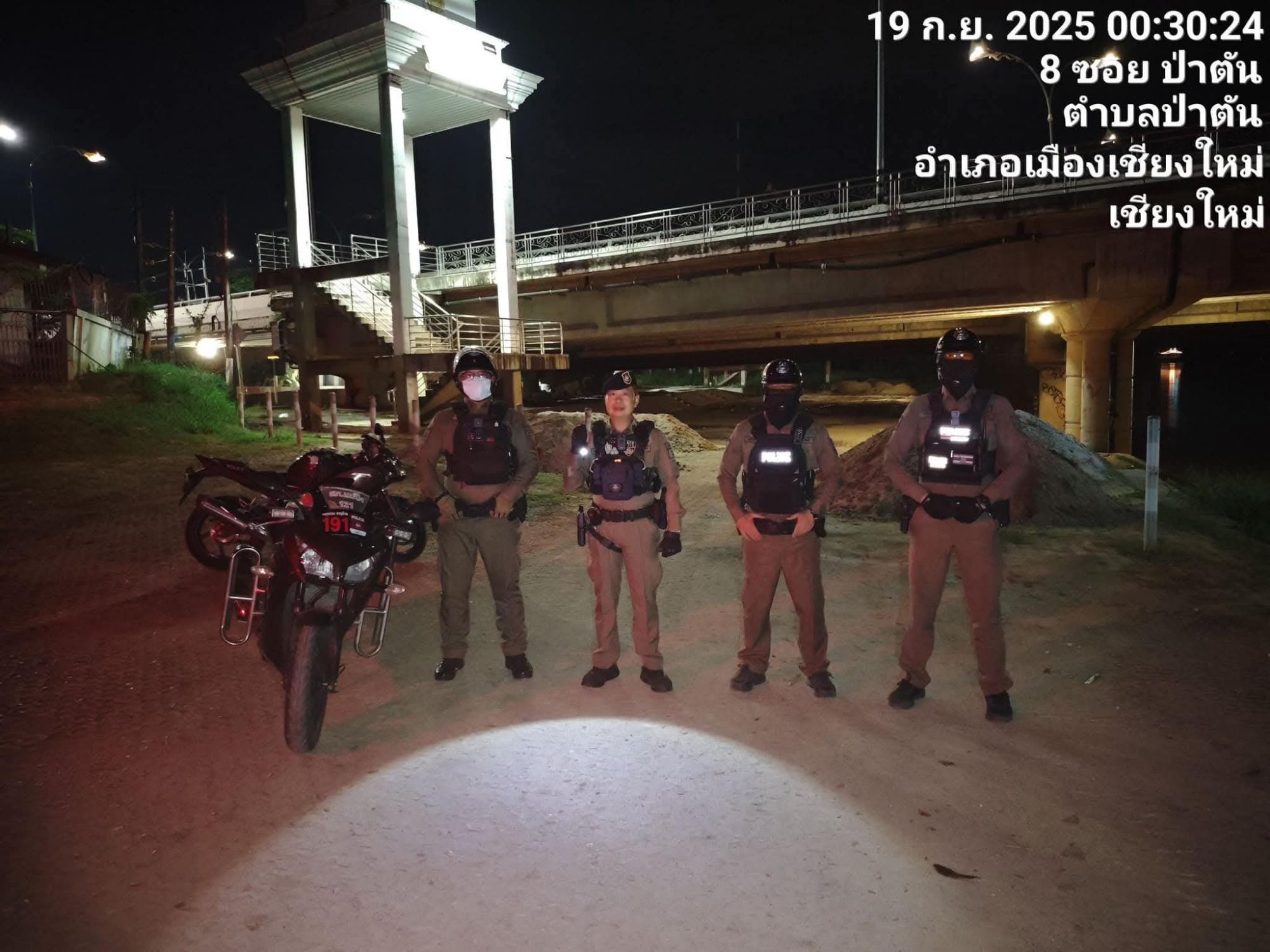เมื่อวันที่ 18 ก.ย. 2568 เวลา 23.00 – 03.00 น. ของอีกวันนำโดย พ.ต.ท.กิตติ์พิสิฐ ระย้าย้อย รอง ผกก.ป.สภ.แม่ปิง พ.ต.ท.สุนทยา ปรารมภ์ สวป.สภ.แม่ปิง นำกำลังพร้อมชุดเคลื่อนที่เร็ว “ไล่ล่าทรชนคนพาล” ตั้งจุดตรวจ-จุดสกัด บริเวณ สะพานเหล็ก ถนนเชียงใหม่–ลำพูน ต.วัดเกต อ.เมือง จ.เชียงใหม่ เพื่อป้องกันอาชญากรรม การแข่งรถในทาง และลดอุบัติเหตุบนท้องถนน