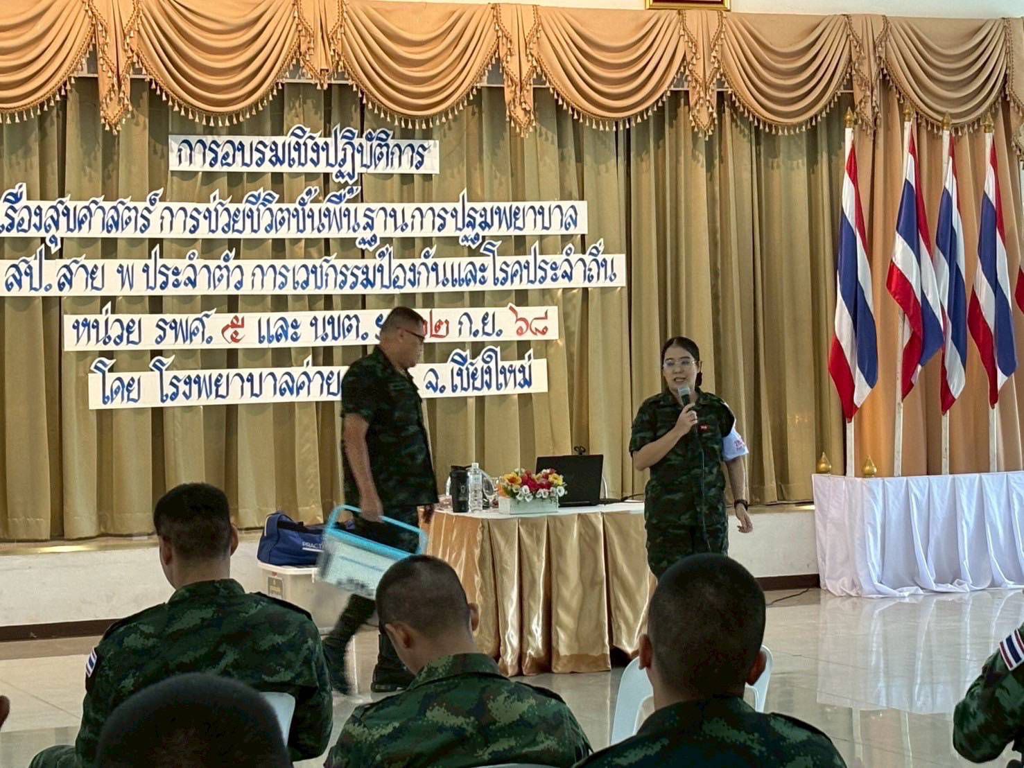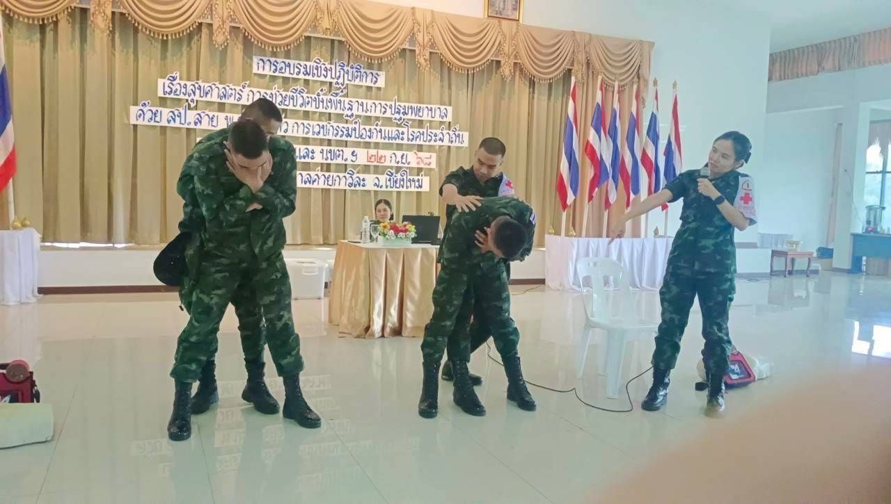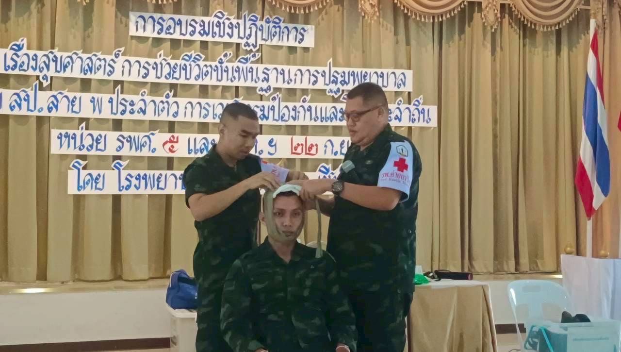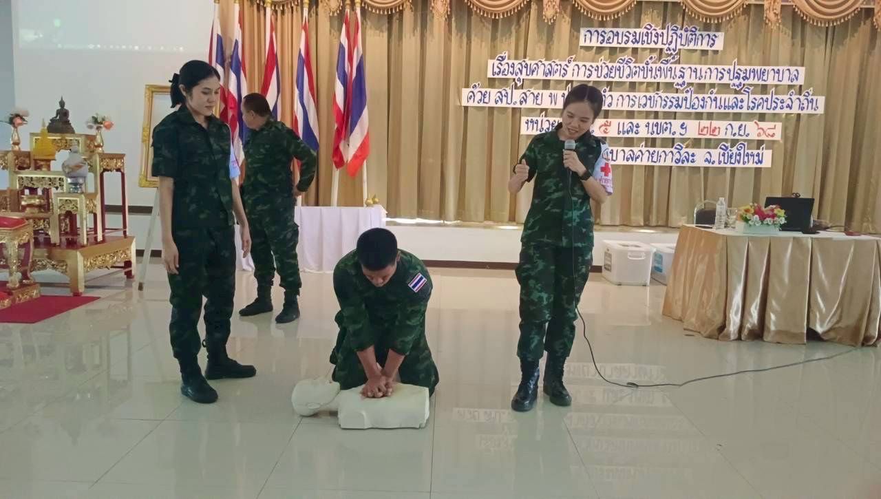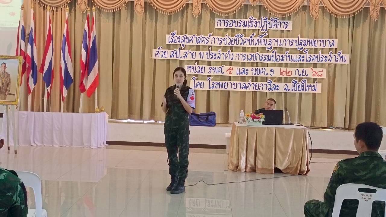 เมื่อวันที่ 22 กันยายน 2568 โรงพยาบาลค่ายกาวิละ โดยทีมส่งเสริมสุขภาพและเวชกรรมป้องกัน ร่วมกับทีมครู ก. จัดการอบรมให้ความรู้แก่กำลังพลกรมรบพิเศษที่ 5 ที่จะขึ้นปฏิบัติภารกิจป้องกันชายแดน ณ แหล่งชุมนุมนักรบพิเศษ ค่ายขุนเณร อำเภอแม่ริม จังหวัดเชียงใหม่ การอบรมครั้งนี้ครอบคลุมทั้งภาคทฤษฎีและปฏิบัติ ตั้งแต่การช่วยชีวิตขั้นพื้นฐาน การปฏิบัติการฟื้นคืนชีพด้วยการปั๊มหัวใจร่วมกับการใช้เครื่องกระตุ้นไฟฟ้าหัวใจอัตโนมัติ การปฐมพยาบาลเบื้องต้นและการใช้อุปกรณ์ช่วยชีวิตประจำกาย การเคลื่อนย้ายผู้บาดเจ็บทางยุทธวิธี การช่วยเหลือผู้ป่วยสำลักอาหาร ตลอดจนการดูแลสุขาภิบาลสนาม