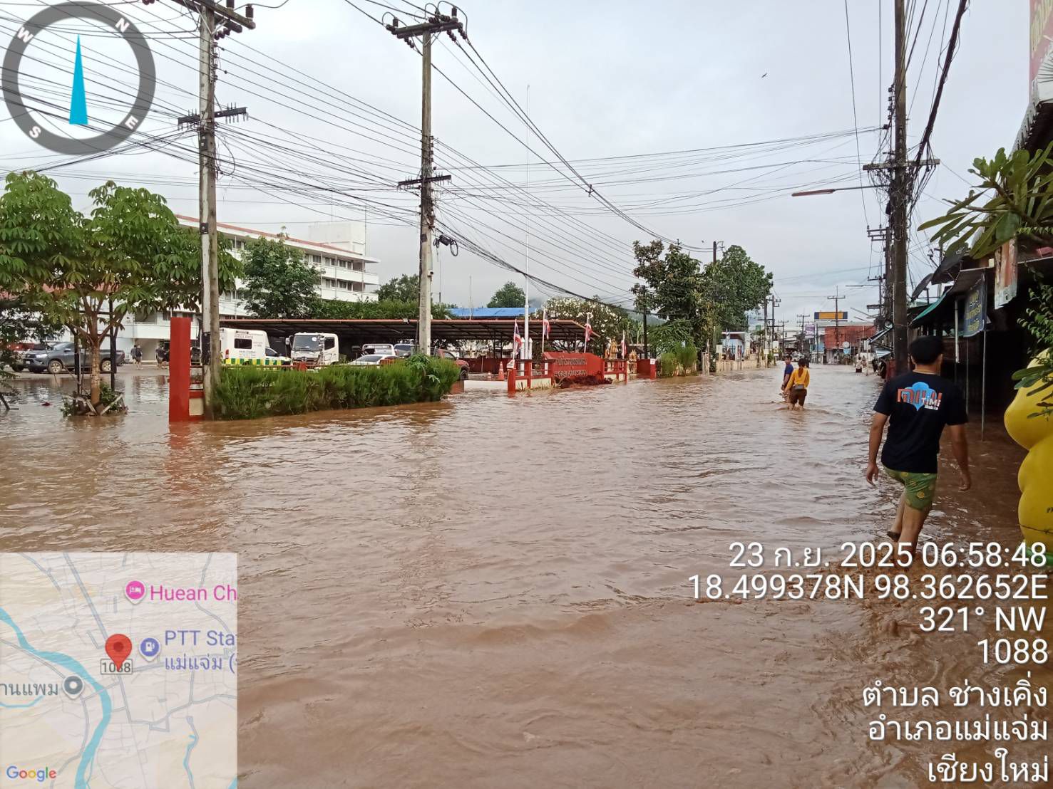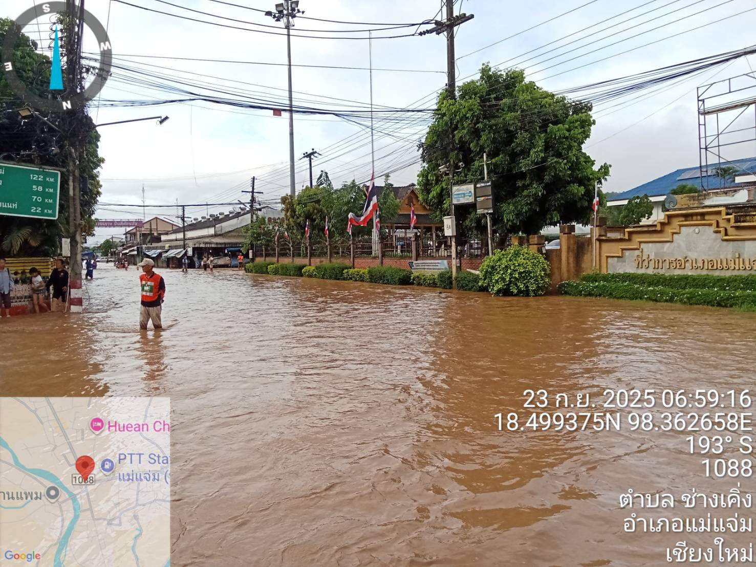 จากการลงพื้นที่ของเจ้าหน้าที่มีปริมาณน้ำท่วมขังรอการระบายในพื้นที่อำเภอแม่ริม ซึ่งปัจจุบันระดับน้ำเข้าสู่ภาวะปกติแล้ว ส่วนที่อำเภอแม่แจ่ม มีปริมาณน้ำป่าไหลหลากเข้าท่วมบ้านเรือนของราษฎร ในพื้นที่ลุ่มต่ำของลำน้ำแจ่ม โดยเฉพาะในเขตตัวเมืองแม่แจ่มขณะนี้ระดับน้ำเริ่มทรงตัวและมีแนวโน้มลดลงเช่นกัน