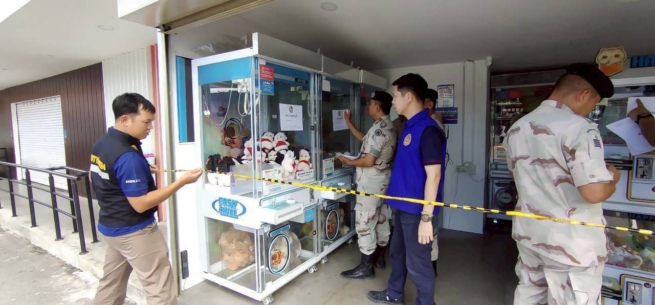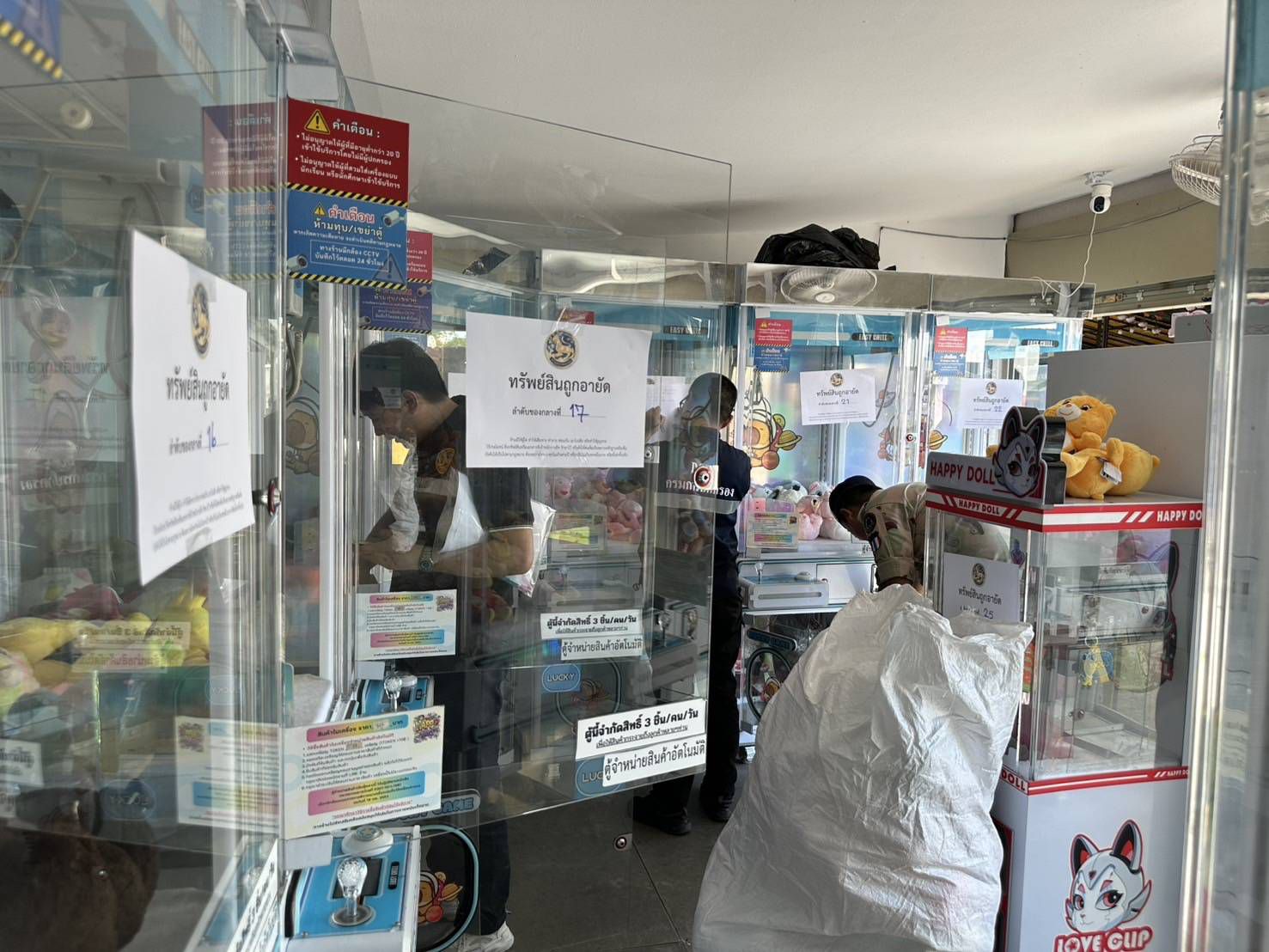 จากการตรวจค้นของเจ้าหน้าที่ชุดจับกุมพบว่า ภายในสถานประกอบการ ประกอบไปด้วย ตู้คีบตุ๊กตาแบบหยอดเหรียญ จำนวน 26 เครื่อง ตู้แลกเหรียญ จำนวน 1 เครื่อง และตู้กดตุ๊กตาแบบล้อหมุนจำนวน 2 เครื่อง ที่เปิดให้บริการอยู่ เจ้าหน้าที่ชุดจับกุมจึงได้ติดต่อเจ้าของร้าน/ผู้ดูแลมารับทราบการตรวจค้น โดยให้สาธิตวิธีการเล่นตู้คีบตุ๊กตาภายในร้าน