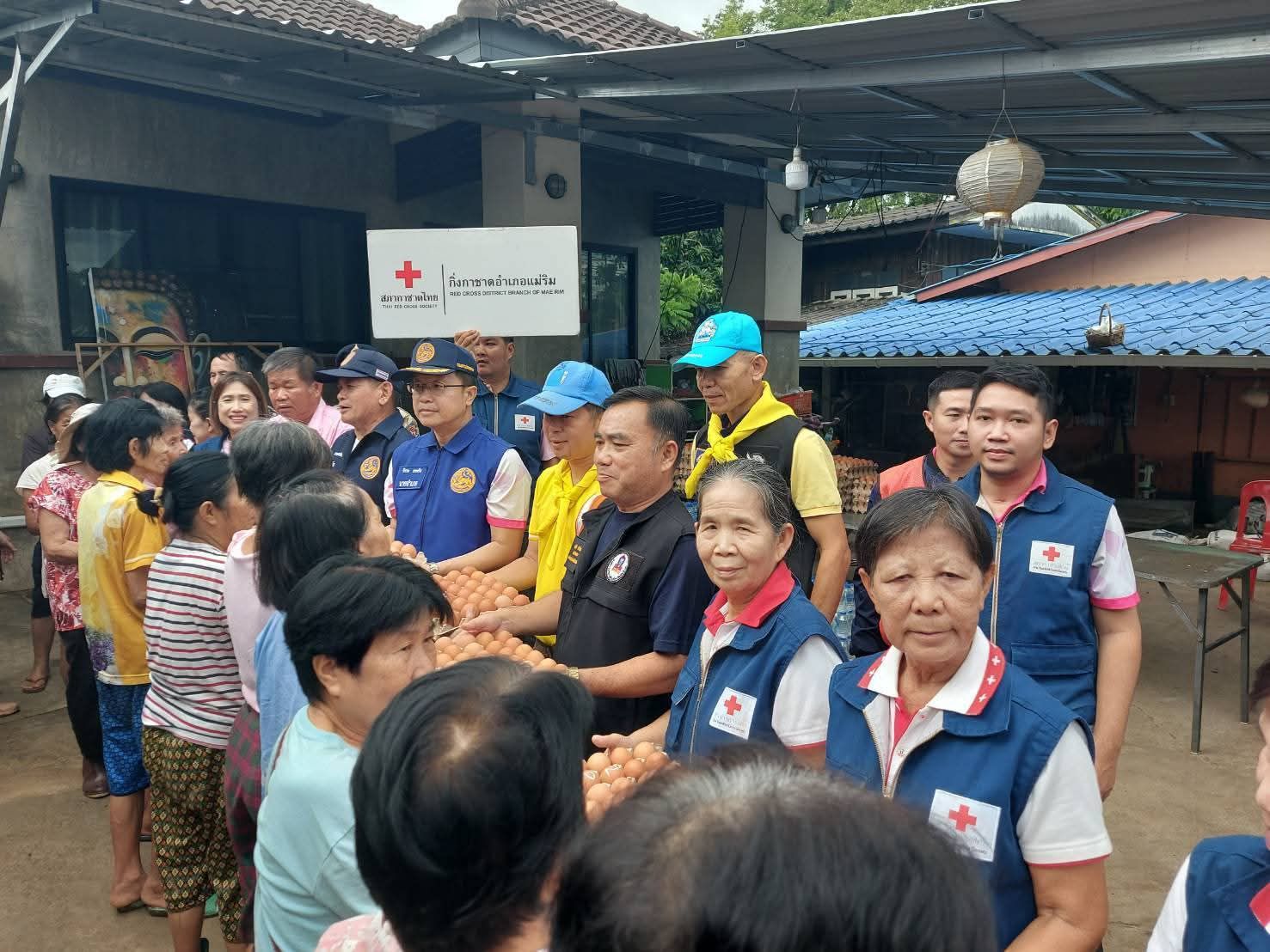 พ.ต.ท.นำพล พรกมการัตน์ รอง ผกก.ป.สภ.แม่ริม พร้อมด้วย พ.ต.ต.วุฒิไกร สมใจ สวป.(ชส.) สภ.แม่ริม พร้อมด้วยชุดจิตอาสา ลงพื้นที่ให้การช่วยเหลือผู้ประสบอุทกภัย และมอบเครื่องอุปโภค–บริโภคแก่ประชาชนที่ได้รับผลกระทบจากน้ำท่วมในพื้นที่ตำบลริมใต้ และตำบลแม่แรม อำเภอแม่ริม จังหวัดเชียงใหม่