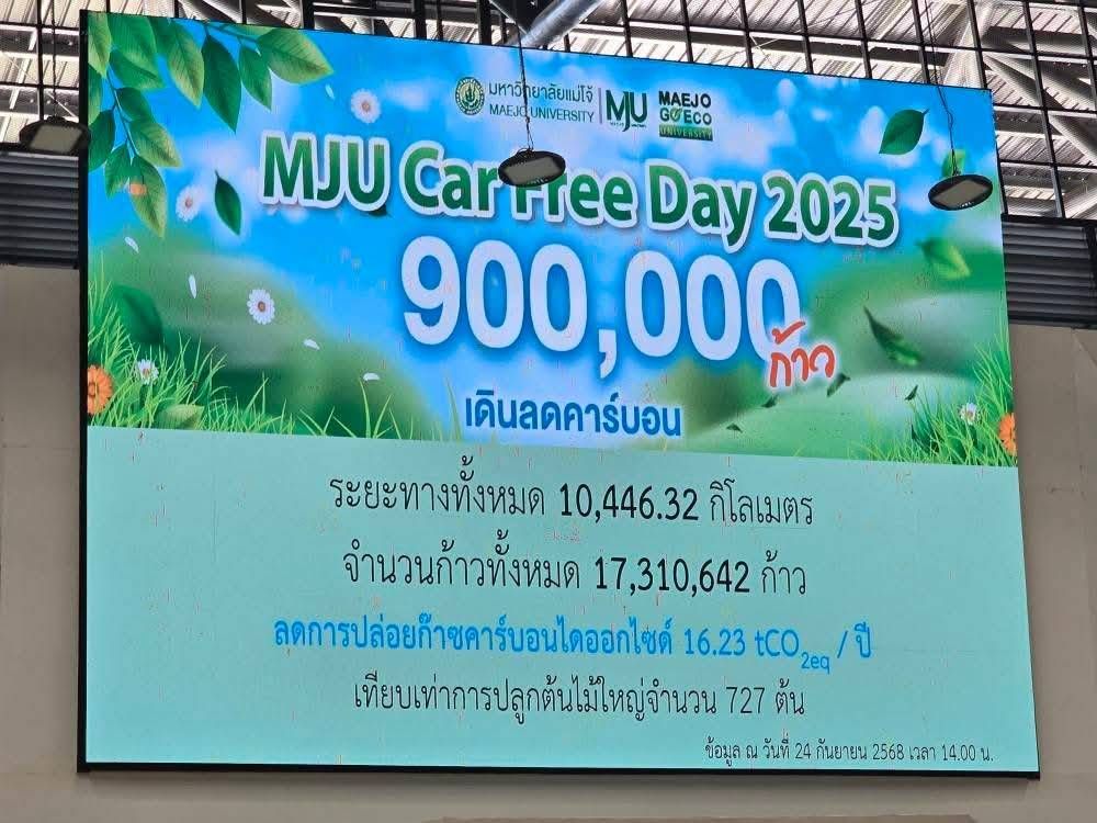 สำหรับกิจกรรม MJU Car Free Day 2025 “900,000 ก้าว เดินลดคาร์บอน” ทางคณะอนุกรรมการขับเคลื่อนการพัฒนาและจัดอันดับมหาวิทยาลัยสู่ความยั่งยืน (SDG Impact Raking Green University แaะ Healthy University) ด้านสิ่งแวดล้อม (Sustainable Environment) ร่วมกับกองกายภาพและสิ่งแวดล้อม กองพัฒนานักศึกษา องค์การนักศึกษา และสภานักศึกษา จัดขึ้นภายใต้โครงการขับเคลื่อนการพัฒนาและจัดอันดับมหาวิทยาลัยสู่ความยั่งยืน (SDG Impact Raking Green University แaะ Healthy University) ด้านสิ่งแวดล้อม (Sustainable Environment)