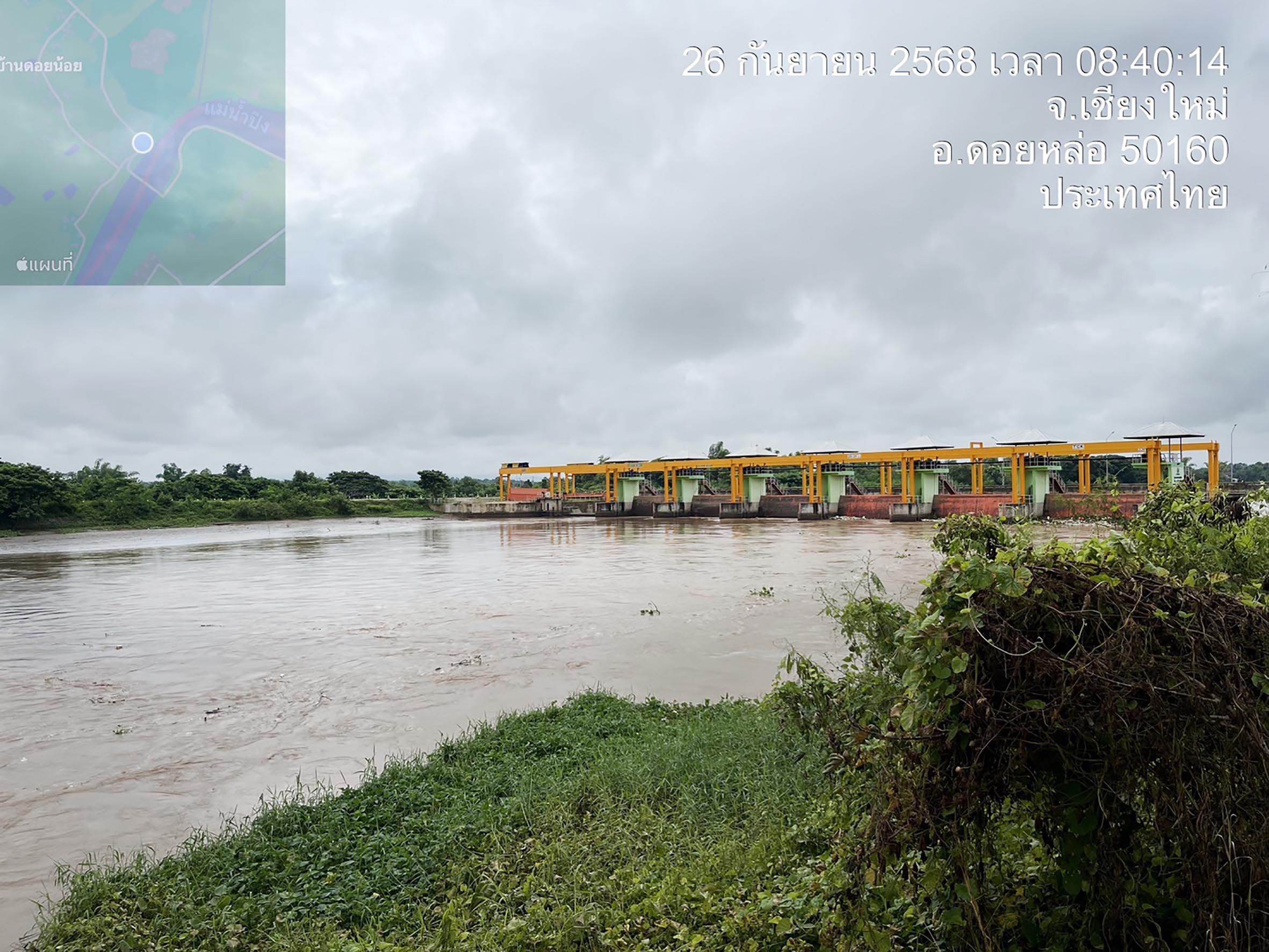 เมื่อวันที่ 26 ก.ย. 68 นายเกื้อกูล มานะสัมพันธ์สกุล ผู้อำนวยการโครงการชลประทานเชียงใหม่ ลงพื้นที่ติดตามการระบายน้ำของประตูระบายน้ำในแม่น้ำปิงตลอดสาย ตั้งแต่ประตูระบายน้ำท่าวังตาล อ.เมือง จ.เชียงใหม่ มีการเปิดประตูระบายน้ำทั้งหมด 6 ช่องบาน ไปถึงประตูระบายน้ำฝายดอยน้อย อ.ดอยหล่อ โดยมีนายณรงค์ วงศ์จันทร์ทิพย์ หัวหน้าฝ่ายส่งน้ำและบำรุงรักษาที่ 7 โครงการชลประทานเชียงใหม่ ให้ข้อมูลและนำตรวจการเปิดบานประตูระบายน้ำ ซึ่งได้มีการเปิดบานประตูระบายน้ำทุกบาน 6 ช่องบาน ยกบานสูง 3 เมตร ระบายน้ำ 460 ลบ.ม.ต่อวินาที เพื่อดึงมวลน้ำจากลำน้ำสาขาต่างๆ รวมถึงน้ำหลากที่อยู่ในเขตพื้นที่ตัวเมืองเชียงใหม่ ซึ่งระดับน้ำที่ด้านหน้าประตูระบายน้ำฝายดอยน้อยต่ำกว่าระดับเก็บกักปกติ ระดับสันฝาย 1.50 เมตร เพื่อดึงมวลน้ำจากพื้นที่ตอนเหนือของเมืองเชียงใหม่ และมวลน้ำจากลำน้ำสาขาต่างๆ เร่งการระบายน้ำของแม่น้ำปิง