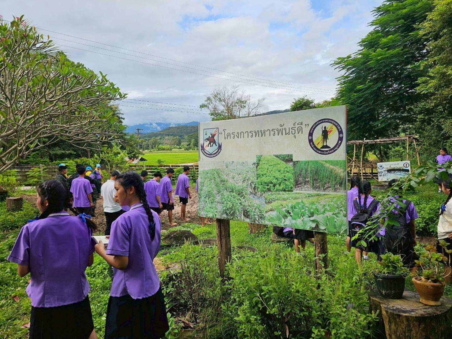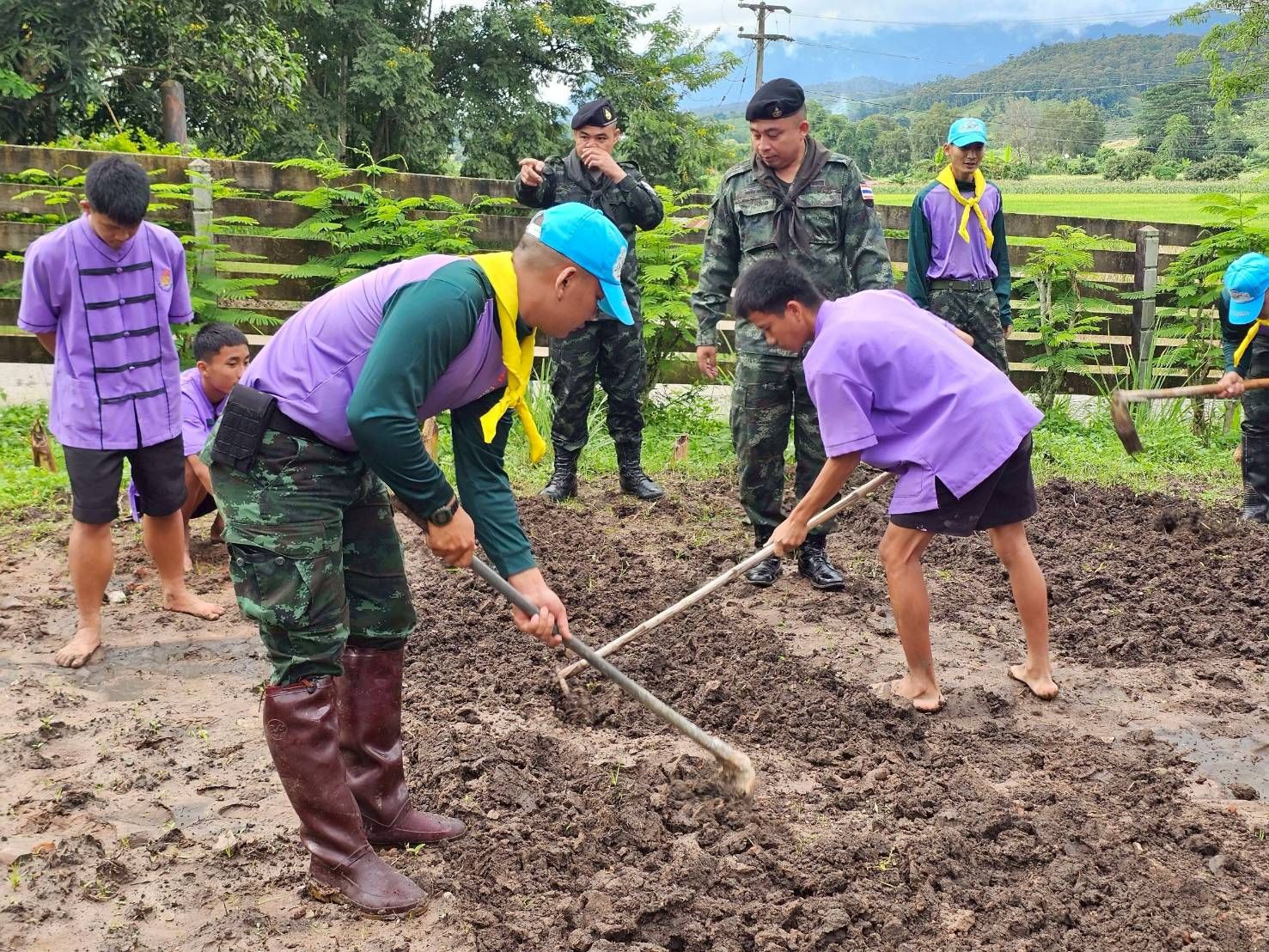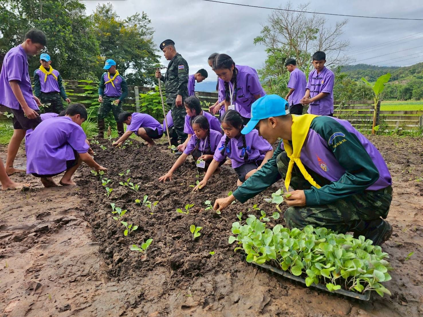 เมื่อวันที่ 26 ก.ย.68 เวลา 0830 กกล.ผาเมือง โดย บก.ผาดง ฉก.ไชยานุภาพ จัดกิจกรรมอบรมให้ความรู้เกี่ยวกับแนวทางปรัชญาเศรษฐกิจพอเพียงและสาธิตการทำแปลงเกษตรตาม โครงการทหารพันธุ์ดี “ชุมชนเบิกบาน อาหารปลอดภัย ” อีกทั้งได้มอบเมล็ดพันธุ์ผัก ให้กับคณะครู นักเรียน จากโรงเรียนทุ่งข้าวพวง ต.ทุ่งข้าวพวง อ.เชียงดาว ฯ เพื่อนำไปขยายผลต่อยอดที่แปลงเกษตรของโรงเรียน และเป็นการเสริมสร้างทักษะการประกอบอาชีพให้กับเยาวชน รวมถึงเป็นการส่งเสริมให้โรงเรียนปลูกผักที่มีคุณภาพที่ปลอดภัยไว้บริโภค ณ ฐานฯ บ.ห้วยเป้า ต.ทุ่งข้าวพวง อ.เชียงดาว จ.เชียงใหม่.