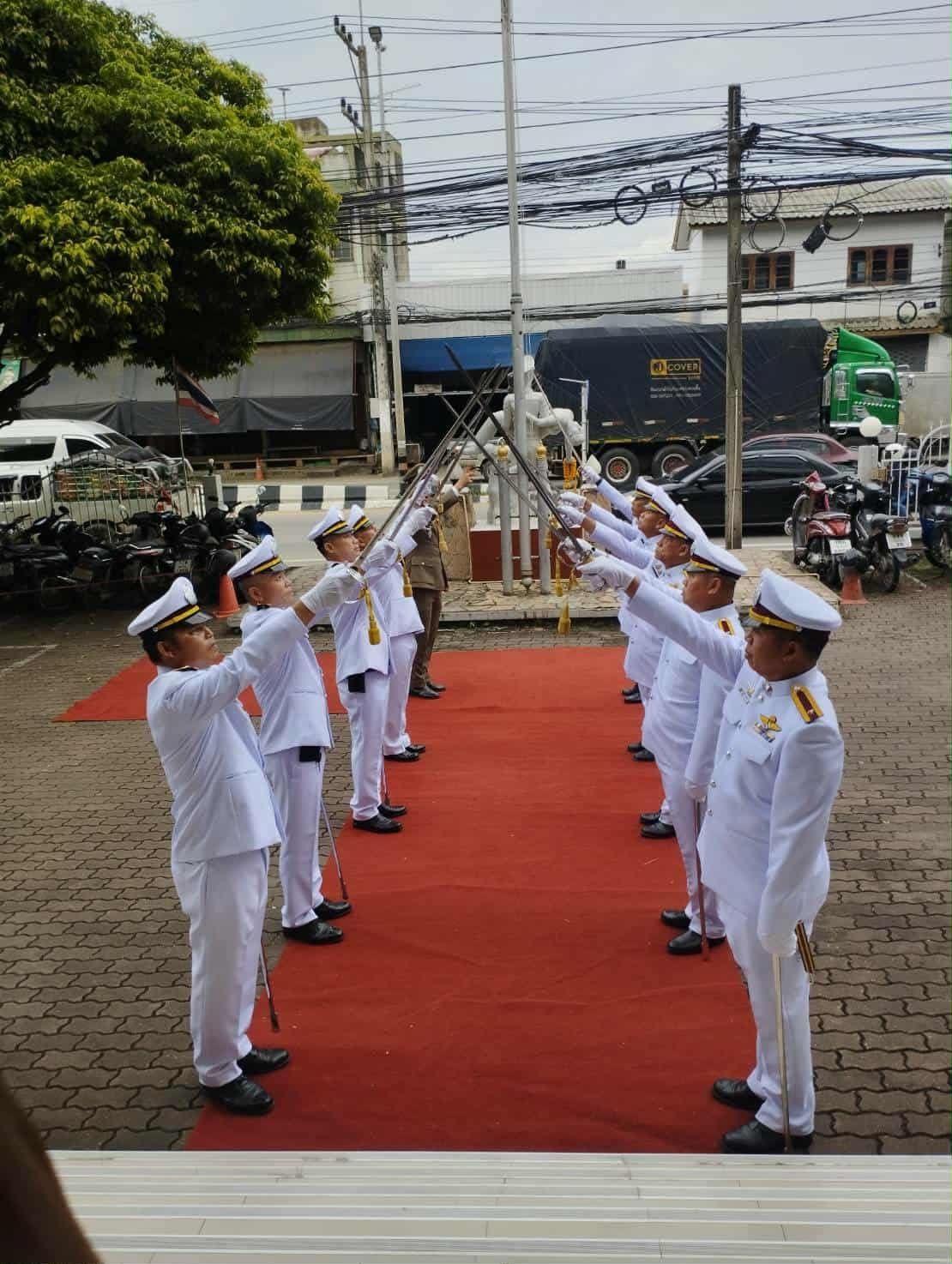 พิธีจัดอย่างสมเกียรติจากผู้บังคับบัญชาและเพื่อนข้าราชการตำรวจ โดยตั้งซุ้มกระบี่ให้ผู้เกษียณและคู่สมรสได้ลอดอย่างสมเกียรติสมภาคภูมิหลังปฏิบัติหน้าที่เป็นผู้พิทักษ์สันติราษฎร เป็นข้าราชการที่ดีมาจวบครบอายุราชการ60 ปี พร้อมรับช่อดอกไม้จากผู้บังคับบัญชา เพื่อนข้าราชการและครอบครัว รับของที่ระลึกจากผู้มาร่วมงาน…จากนั้นข้าราชการตำรวจที่เกษียณทุกนายกล่าวความรู้สึกและขอบคุณเป็นเสร็จพิธี.