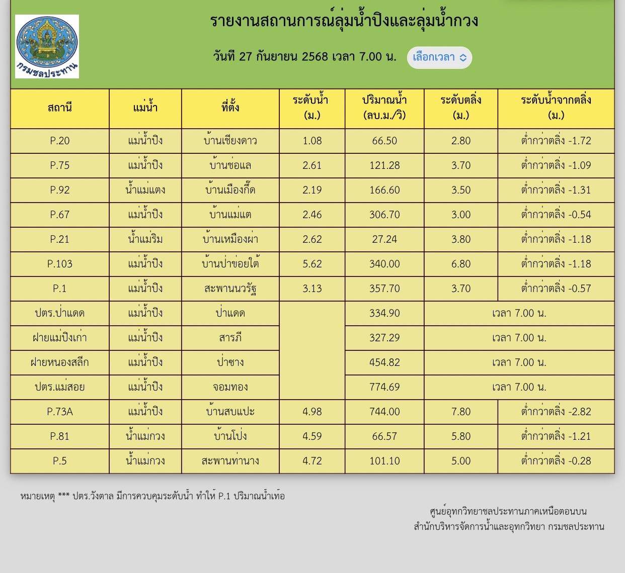 เขื่อนแม่งัดฯ งดการระบายน้ำ เมื่อเวลา 08.12 น. ลดผลกระทบกับแม่น้ำปิงหลังน้ำแม่แตงมีปริมาณน้ำที่มาก