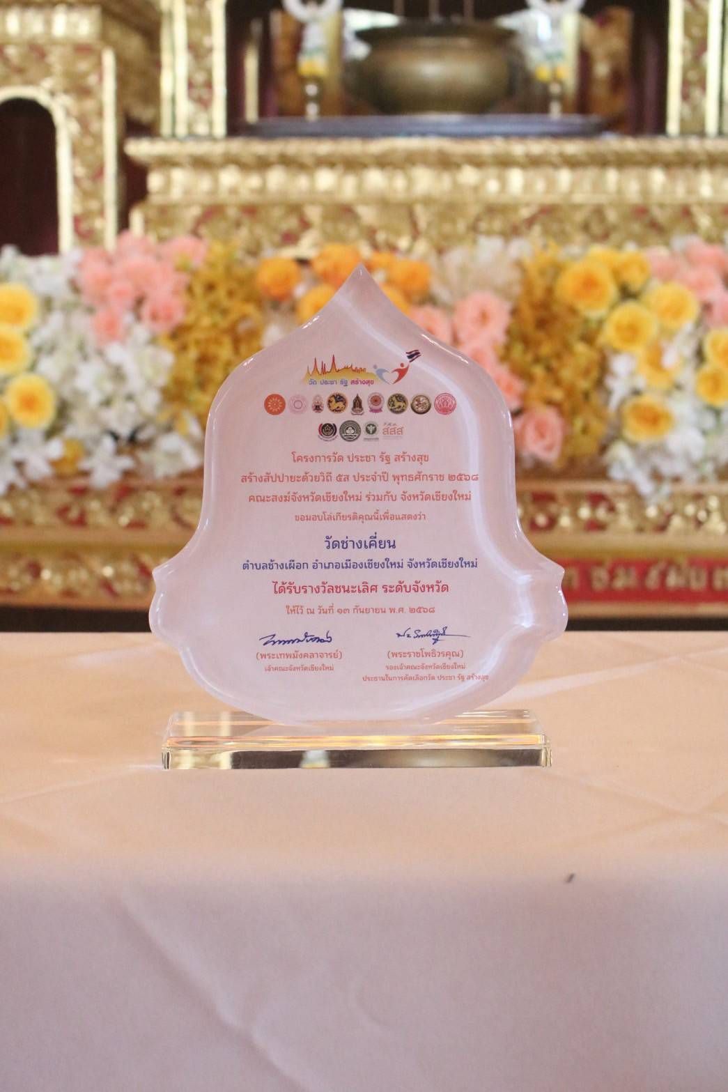 รับมอบโล่เกียรติคุณ โครงการวัด ประชา รัฐ สร้างสุข ดีเด่นระดับจังหวัด