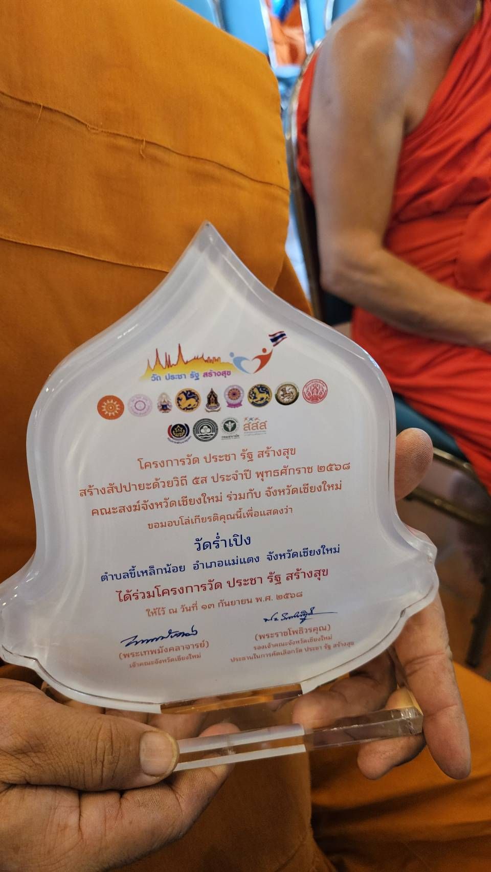 เมื่อวันเสาร์ที่ 27 กันยายน 2568 พระเทพปริยัติ ที่ปรึกษาเจ้าคณะภาค 7 เจ้าอาวาสวัดเจ็ดยอด พระอารามหลวง เมตตาเป็นประธานมอบโล่เกียรติคุณ โครงการวัด ประชา รัฐ สร้างสุข สร้างสัปปายะด้วยวิถี 5 ส ประจำปี พุทธศักราช 2568 ซึ่งคณะสงฆ์จังหวัดเชียงใหม่ ร่วมกับจังหวัดเชียงใหม่ มอบโล่รางวัลแก่วัดร่ำเปิง ตำบลขี้เหล็ก อำเภอแม่แตง จังหวัดเชียงใหม่ มีพระครูมนัสเขมาภิรม เจ้าอาวาสวัดร่ำเปิง รับมอบ ณ พระวิหารหลวง วัดสวนดอก พระอารามหลวง ตำบลสุเทพ อำเภอเมืองเชียงใหม่ จังหวัดเชียงใหม่.