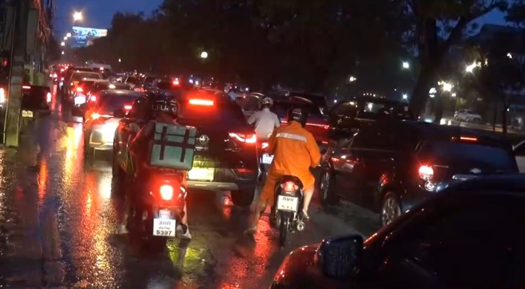 ฝนตกในตัวเมืองเชียงใหม่ ทำให้การจราจรติดขัดอย่างหนัก บนถนนบุญเรืองฤทธิ์ หัวแถวอยู่ก่อนถึงแจ่งหัวริน ท้ายแถวยาวไปจนถึงทางโค้งแจ่งกู่เฮือง สาเหตุมีการเทพื้นอุโมงค์สายไฟฟ้าใต้ดิน ทำให้เหลือเฉพาะช่องทางซ้ายมือเพียงช่องทางเดียว