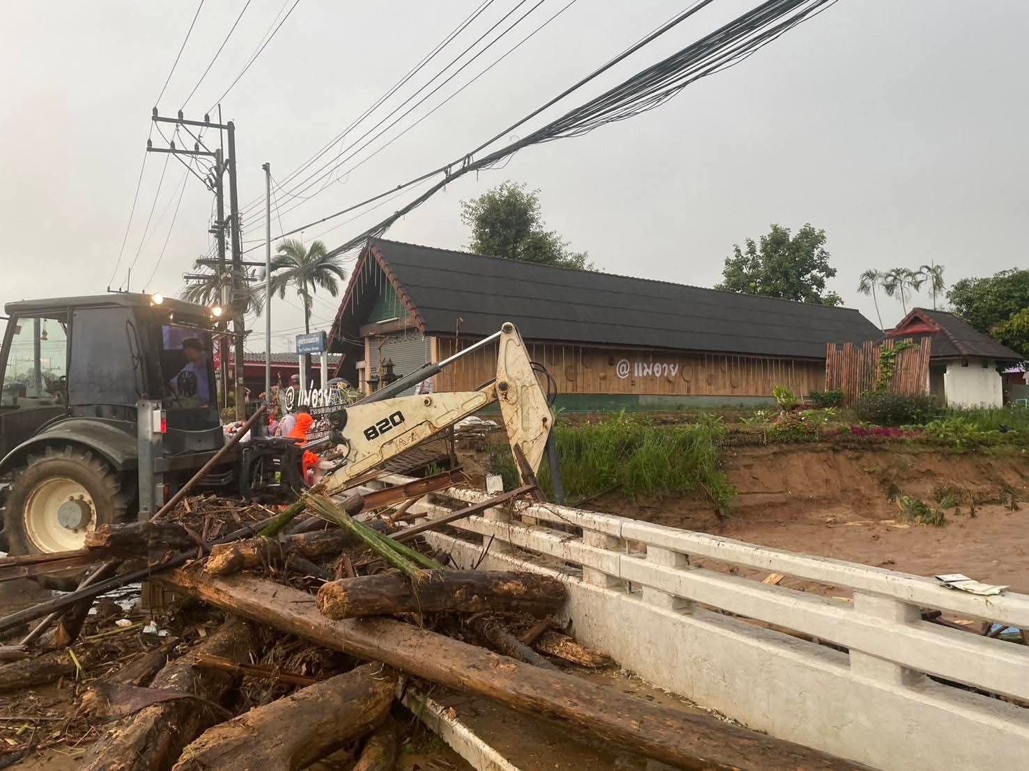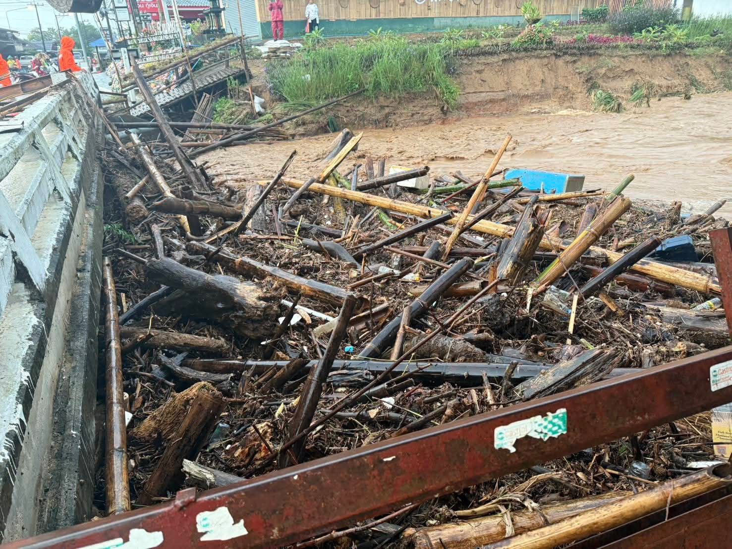 ลำน้ำอายที่เอ่อล้นตลิ่ง เข้าท่วมบ้านเรือนราษฎร ตลาด และร้านค้าอย่างหนัก โดยเฉพาะบริเวณสะพานข้ามลำน้ำอายที่มี เศษไม้จำนวนมากขวางทางน้ำไหล ทำให้เกิดการอุดตันและน้ำไหลย้อนกลับเข้าพื้นที่ชุมชน