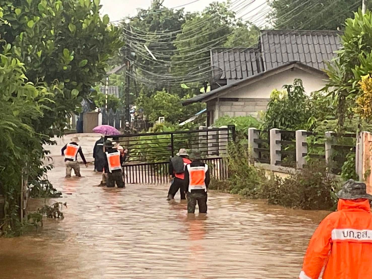 นายอำเภอแม่อาย ‘ลุยแต่เช้ามืด’ นำทีมฝ่าสายฝน! น้ำ ‘ลำน้ำอาย’ ทะลักท่วมชุมชน 6 หมู่บ้าน เดือดร้อนกลางดึก