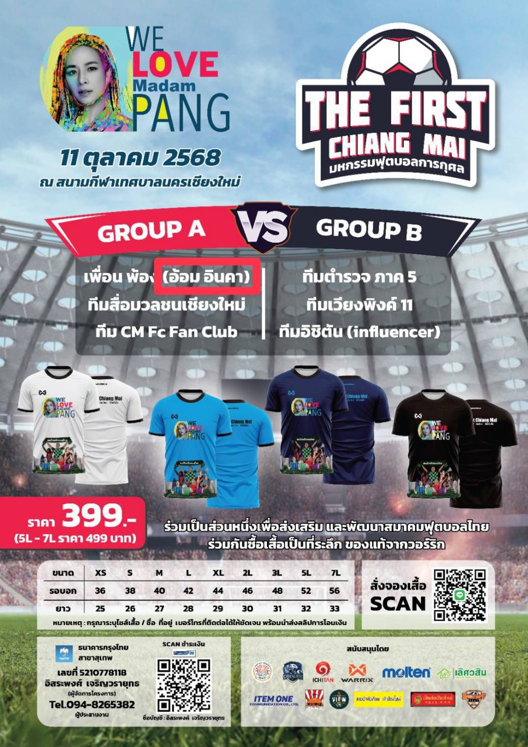 ทั้งนี้ มีทีมฟุตบอลตัวตึง นำโดย ทีมเพื่อนพ้อง-อ้อมอินคา, ทีมสื่อมวลชน, ทีมตำรวจ ภาค 5, ทีมเวียงพิงค์ 11, และทีม Influencer ชื่อดังของเชียงใหม่ ⚽️
