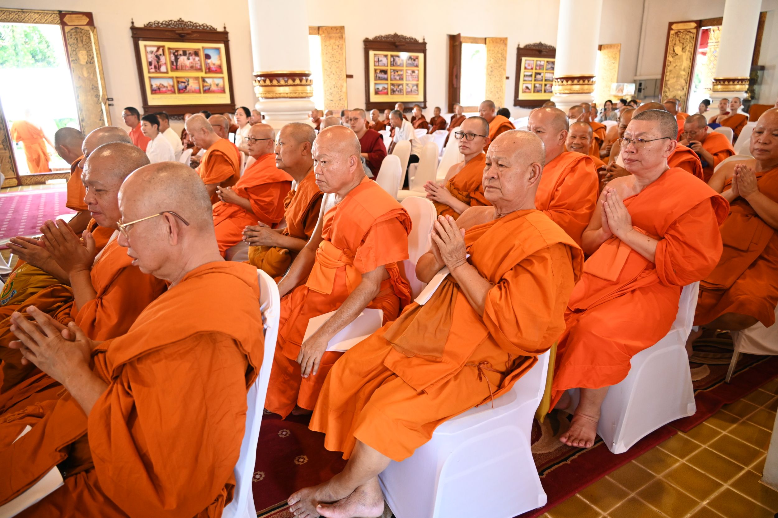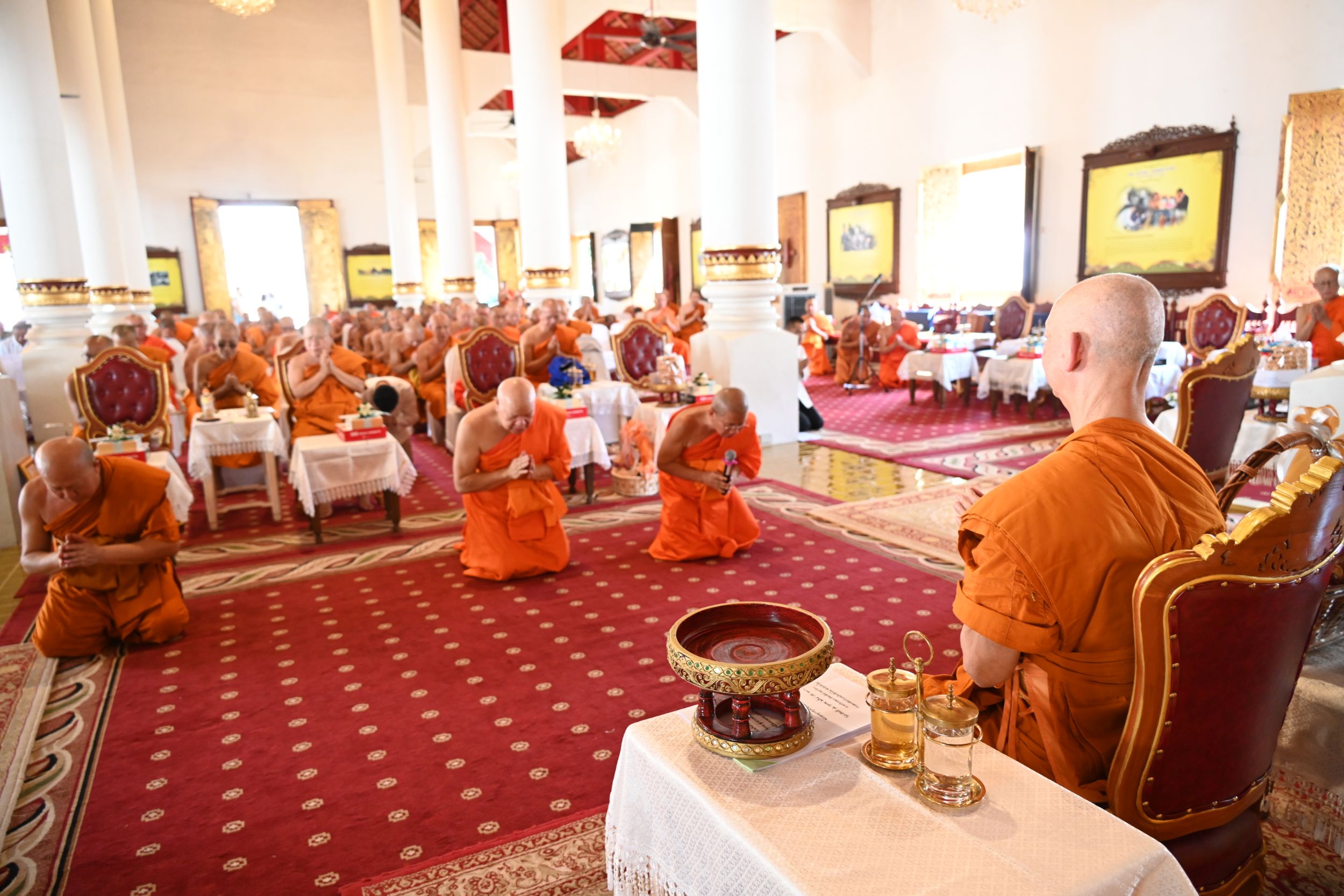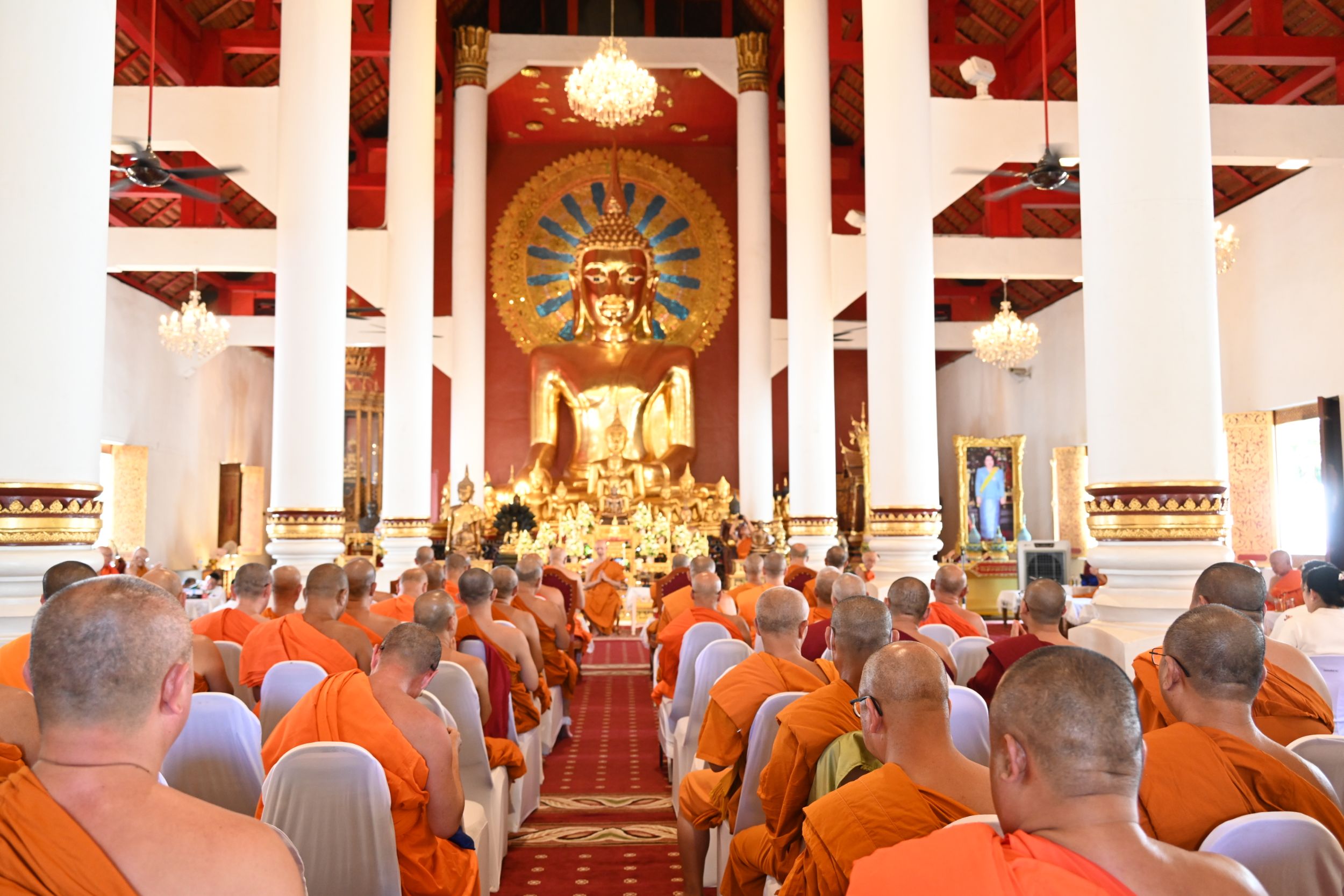 พระธรรมเสนาบดี เจ้าคณะภาค 7 เป็นประธานสงฆ์ จุดธูปเทียนบูชาพระรัตนตรัย และนำเจริญพระพุทธมนต์ เจริญจิตตภาวนา โดยมีพระมหาเถระจำนวน 17 รูป เข้าร่วมพิธี พร้อมด้วย พระเทพมังคลาจารย์ เจ้าคณะจังหวัดเชียงใหม่ และรองเจ้าคณะจังหวัดเชียงใหม่ทั้ง 4 รูป ในโอกาสนี้ ประธานสงฆ์ได้ประกอบพิธีมอบตราตั้งแก่ที่ปรึกษาเจ้าคณะจังหวัดเชียงใหม่ เจ้าคณะอำเภอ รักษาการเจ้าคณะอำเภอ และเลขานุการเจ้าคณะอำเภอ พร้อมทั้งแจ้งข่าวสารสำคัญของการคณะสงฆ์ ร่วมกับผู้อำนวยการสำนักงานพระพุทธศาสนาจังหวัดเชียงใหม่ และสำนักงานวัฒนธรรมจังหวัดเชียงใหม่ ช่วงท้ายของพิธี ผู้แทนคณะสงฆ์ได้กล่าวคำขอสูมาคารวะและถวายเครื่องสักการะแด่พระมหาเถระ จากนั้น พระมหาเถระได้อนุโมทนาให้พร ก่อนกราบพระรัตนตรัย เป็นอันเสร็จสิ้นพิธีอย่างสมบูรณ์และสง่างาม