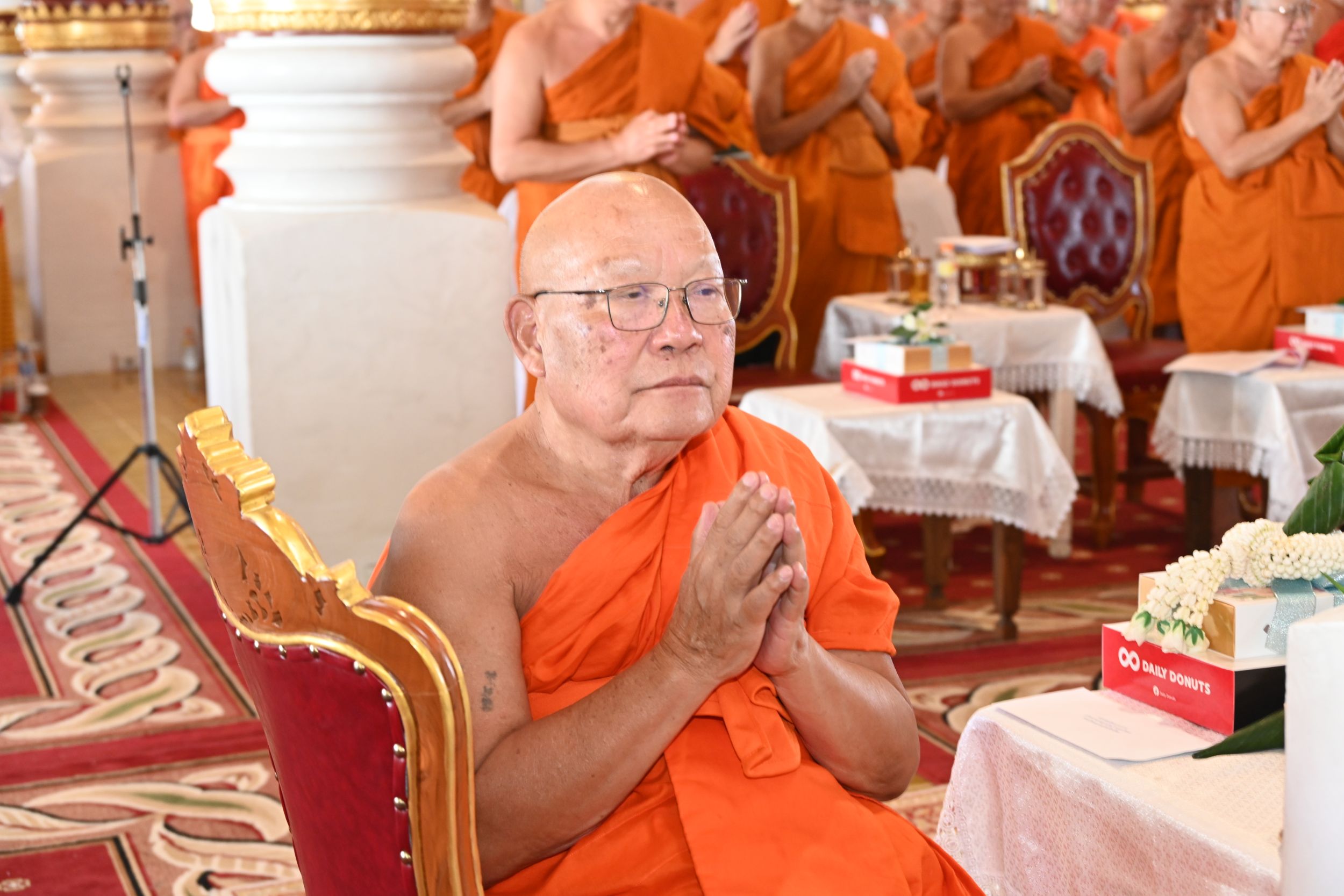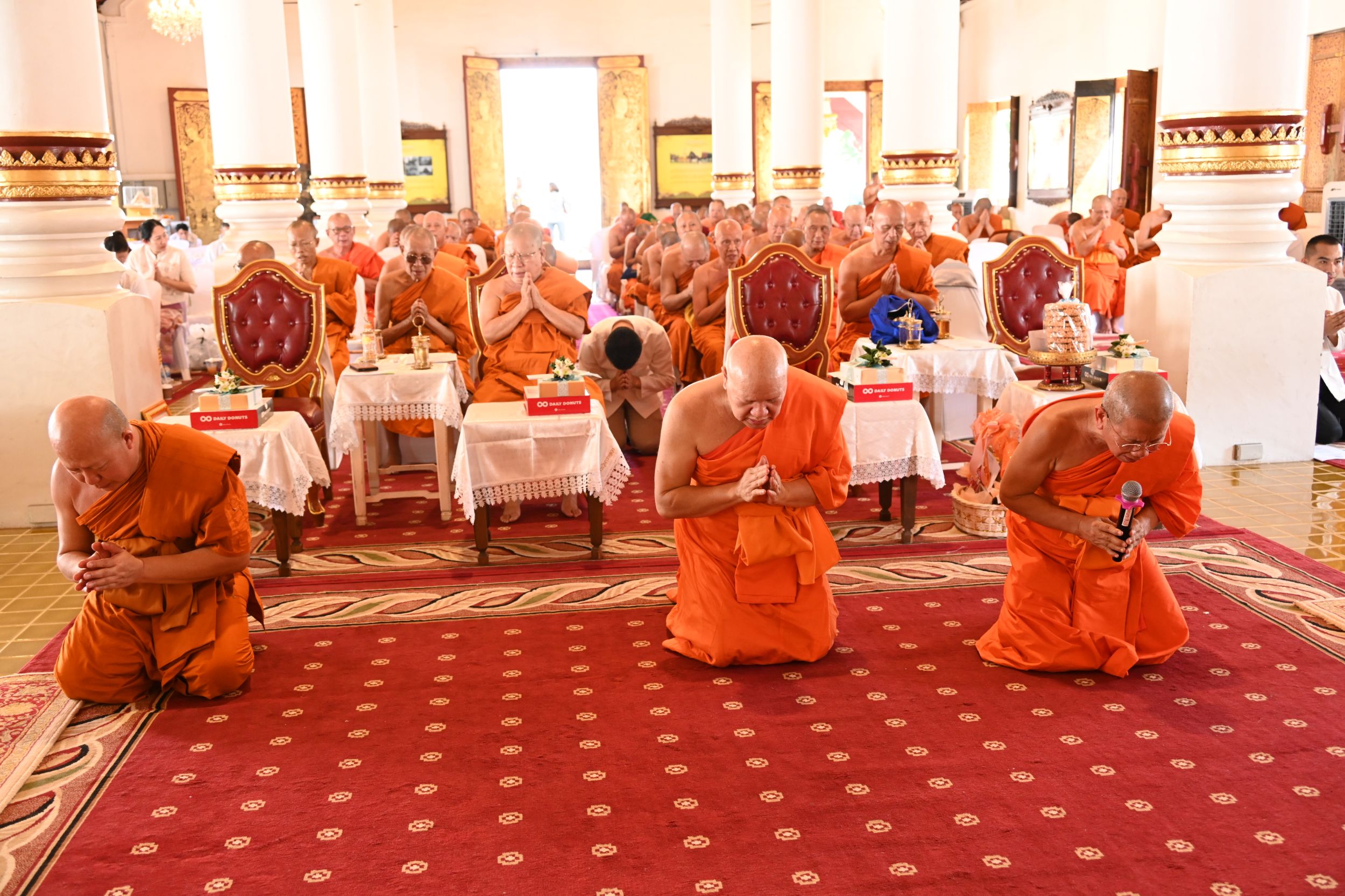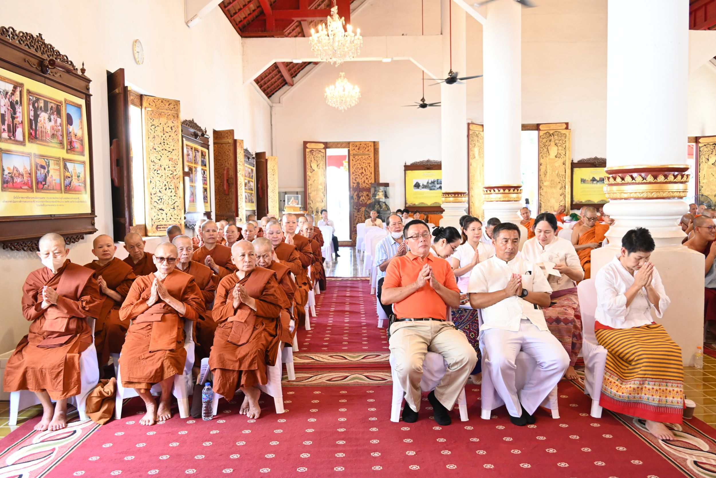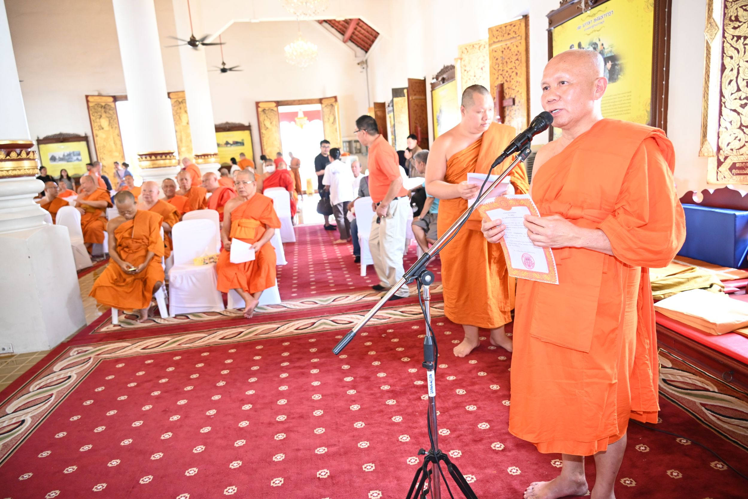 พระธรรมเสนาบดี เจ้าคณะภาค 7 เป็นประธานสงฆ์ จุดธูปเทียนบูชาพระรัตนตรัย และนำเจริญพระพุทธมนต์ เจริญจิตตภาวนา โดยมีพระมหาเถระจำนวน 17 รูป เข้าร่วมพิธี พร้อมด้วย พระเทพมังคลาจารย์ เจ้าคณะจังหวัดเชียงใหม่ และรองเจ้าคณะจังหวัดเชียงใหม่ทั้ง 4 รูป ในโอกาสนี้ ประธานสงฆ์ได้ประกอบพิธีมอบตราตั้งแก่ที่ปรึกษาเจ้าคณะจังหวัดเชียงใหม่ เจ้าคณะอำเภอ รักษาการเจ้าคณะอำเภอ และเลขานุการเจ้าคณะอำเภอ พร้อมทั้งแจ้งข่าวสารสำคัญของการคณะสงฆ์ ร่วมกับผู้อำนวยการสำนักงานพระพุทธศาสนาจังหวัดเชียงใหม่ และสำนักงานวัฒนธรรมจังหวัดเชียงใหม่ ช่วงท้ายของพิธี ผู้แทนคณะสงฆ์ได้กล่าวคำขอสูมาคารวะและถวายเครื่องสักการะแด่พระมหาเถระ จากนั้น พระมหาเถระได้อนุโมทนาให้พร ก่อนกราบพระรัตนตรัย เป็นอันเสร็จสิ้นพิธีอย่างสมบูรณ์และสง่างาม