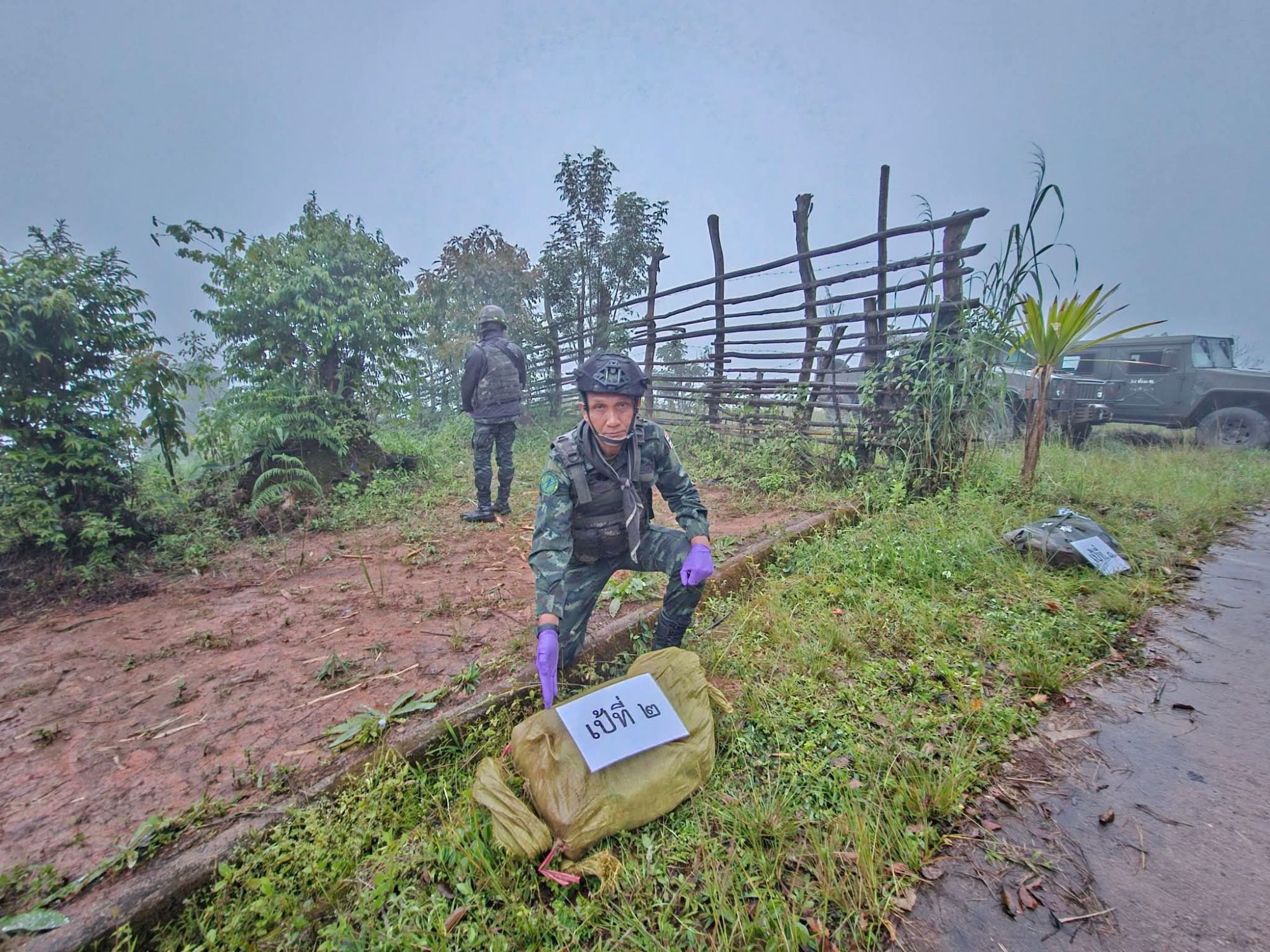 เมื่อวันที่ 14 ต.ค.68 เวลา 21.00 กองร้อยทหารม้าที่ 3 หน่วยเฉพาะกิจไชยานุภาพ กองกำลังผาเมือง จัดกำลังพล จำนวน 1 ชุดปฏิบัติการ ทำการเฝ้าตรวจเพื่อป้องกัน และสกัดกั้นการกระทำผิด ตามพระราชบัญญัติให้ใช้ประมวลกฎหมายยาเสพติด พ.ศ. 2564 บริเวณช่องทางเขาหัวนก ตำบลม่อนปิ่น อำเภอฝาง จังหวัดเชียงใหม่ ได้ตรวจพบกลุ่มบุคคลต้องสงสัย จำนวนประมาณ 3 – 4 คน เดินแบกกระสอบดัดแปลงเป็นเป้สะพายหลัง หน่วยจึงแสดงตัวเพื่อขอทำการตรวจค้น แต่กลุ่มบุคคลดังกล่าวได้ใช้อาวุธไม่ทราบชนิดยิงใส่ฝ่ายเรา ทำให้เกิดการปะทะกันประมาณ 10 นาที ผลการปะทะฝ่ายเราปลอดภัย