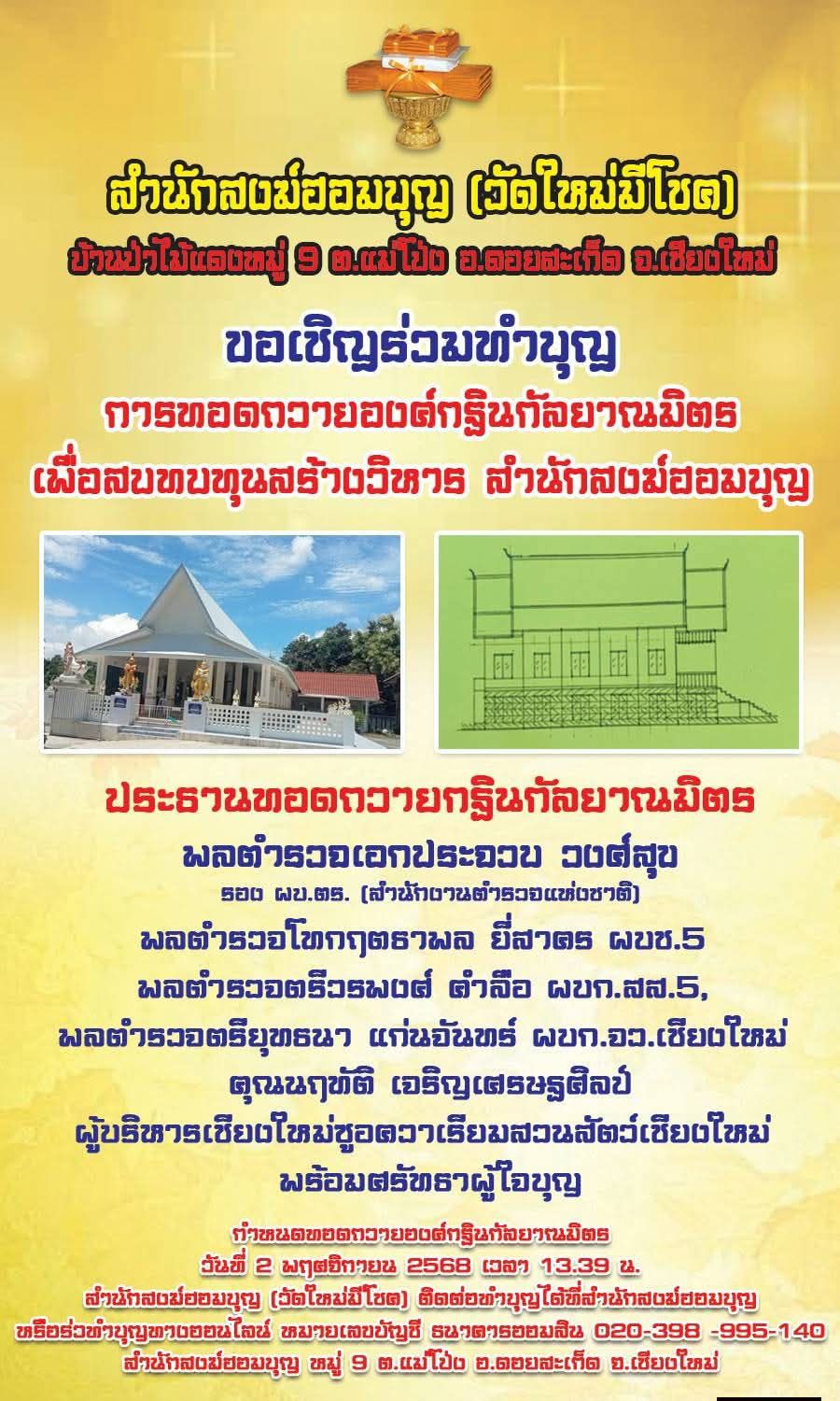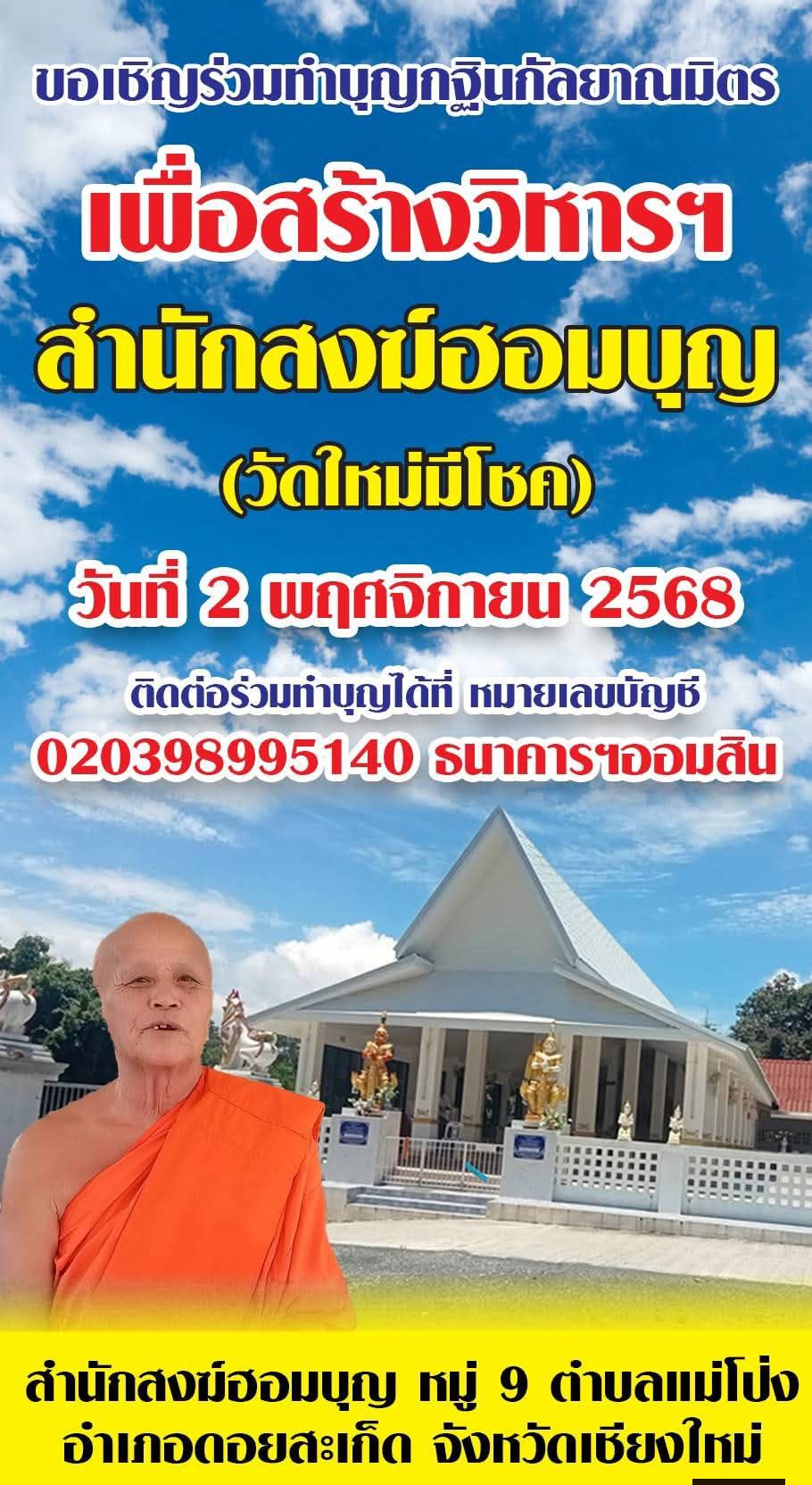เชียงใหม่-ขอเชิญร่วมบุญครั้งสำคัญ! สร้างศาสนสถาน “วิหาร” ณ สำนักสงฆ์ม่อมบุญ (วัดใหม่มีโชค) อ.ดอยสะเก็ด