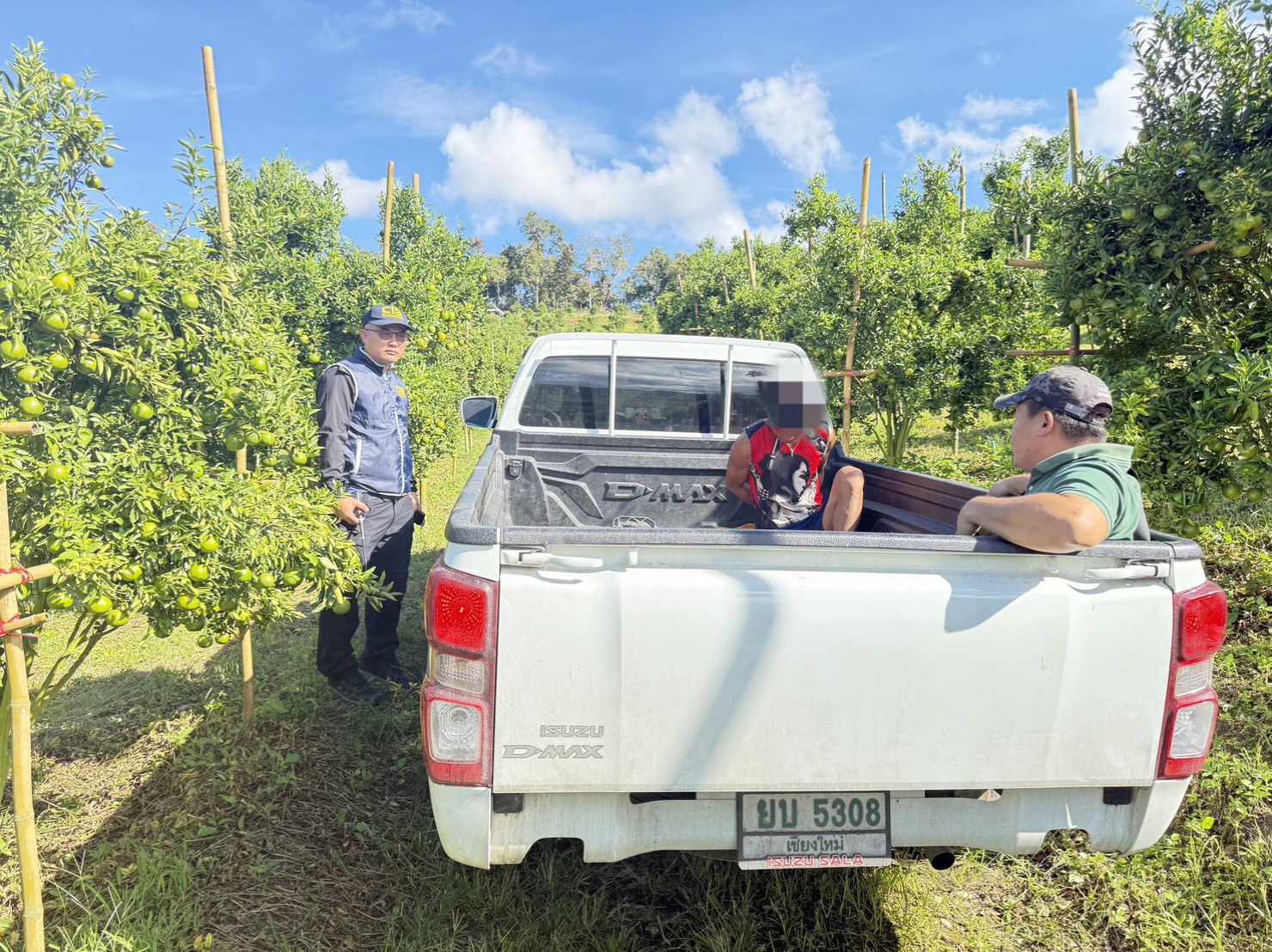 จากการลงพ้นที่ตรวจสอบเจ้าหน้าที่ได้ลงพื้นที่พบพื้นที่ป่ากว่า ถูกแผ้วถางจนหมดทั้งภูเขารวม 21 ไร่ และมีการปลูกส้มเขียวหวานเป็นแถวเป็นแนว พร้อมระบบน้ำสปริงเกอร์และบ่อบาดาลขนาดใหญ่ ภายในกระท่อมกลางสวนพบชายชาวเมียนมา นายสามห้า อายุ 52 ปี ไม่มีหนังสือเดินทางหรือใบอนุญาตทำงาน ตรวจค้นพบ ยาบ้า 6 เม็ด และอุปกรณ์เสพ ผลตรวจปัสสาวะมีสารเสพติด ซึ่งนายสามห้ารับสารภาพว่าทำงานเฝ้าสวนให้ นายจ้าง ได้รับค่าจ้างเดือนละ 5,000 บาท