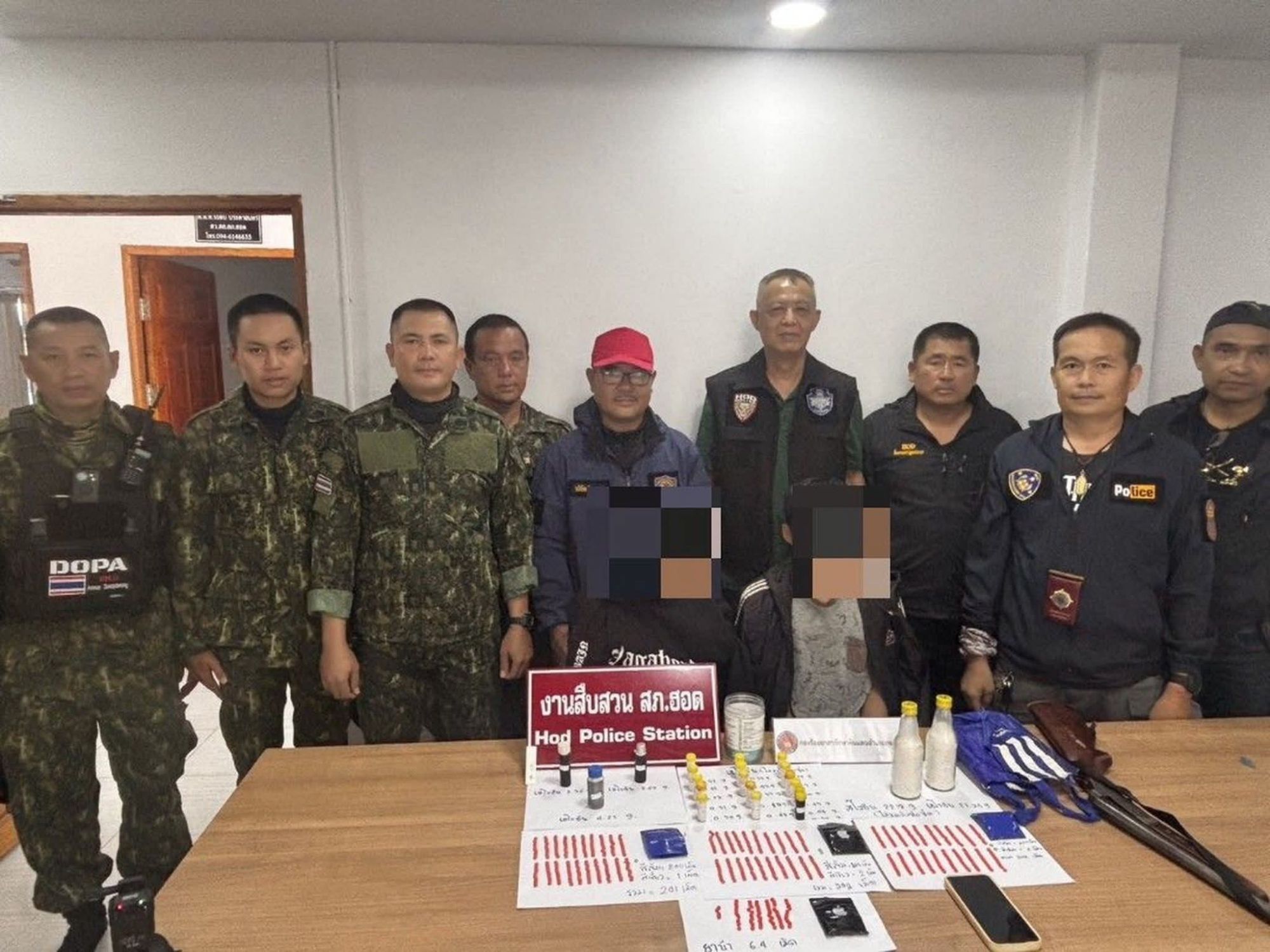 เชียงใหม่-สภ.ฮอด ร่วมฝ่ายปกครอง บุกจับ 2 ผู้ต้องหาค้ายารายสำคัญ ยึดยาเสพติดและอาวุธปืน