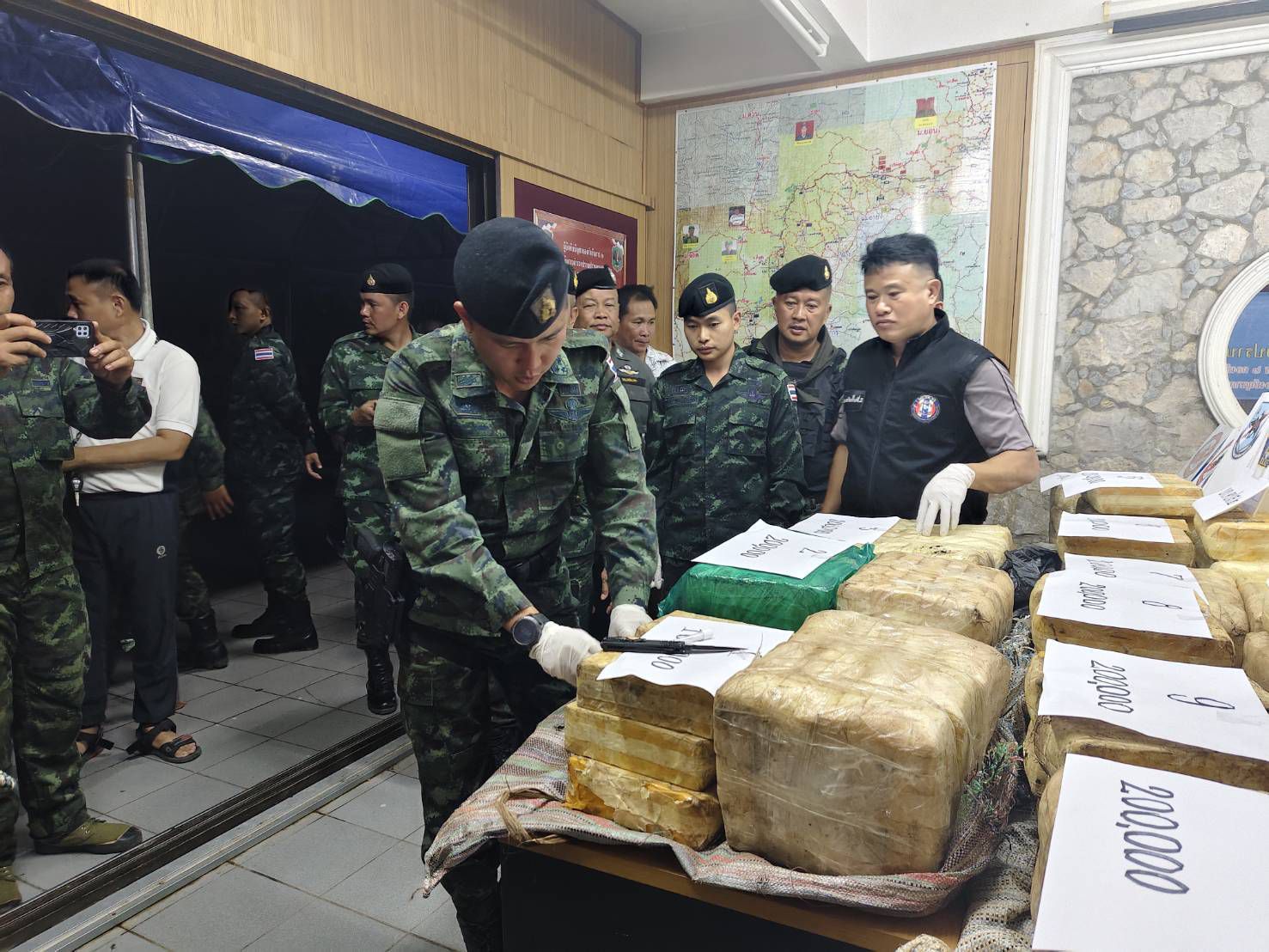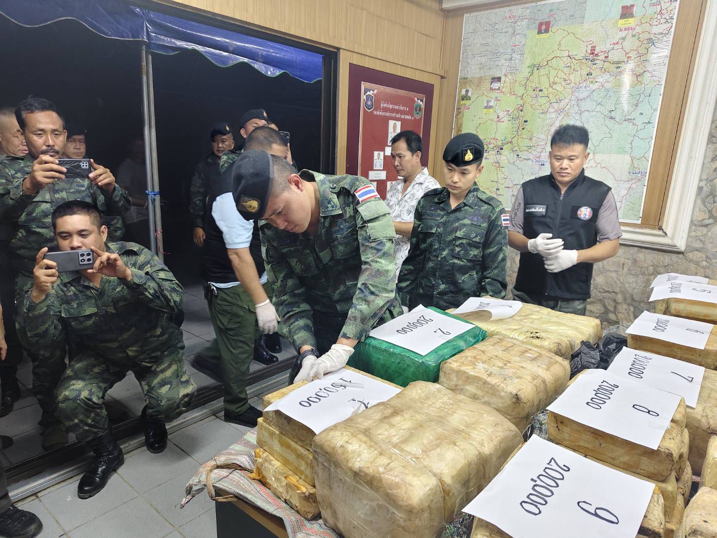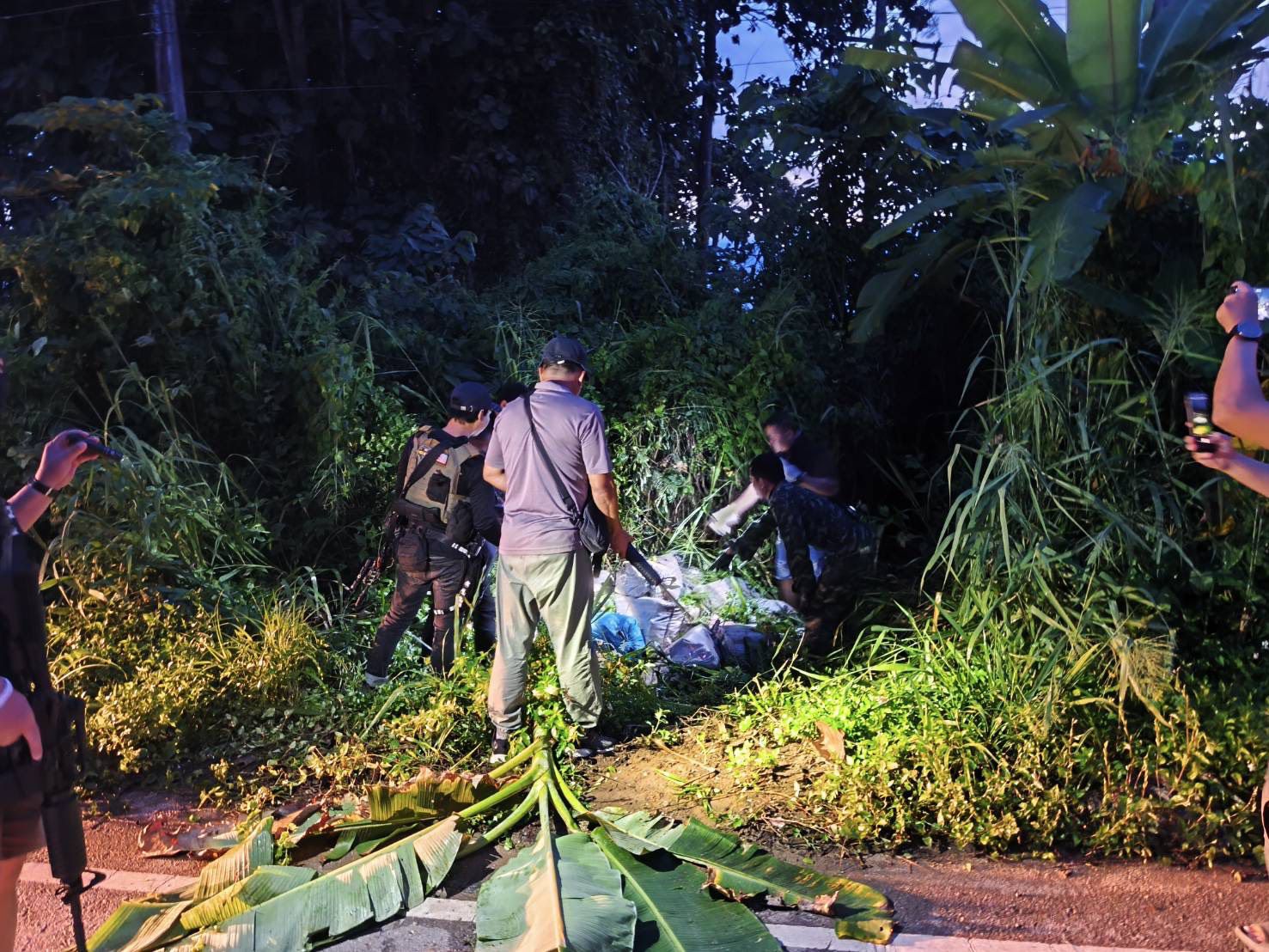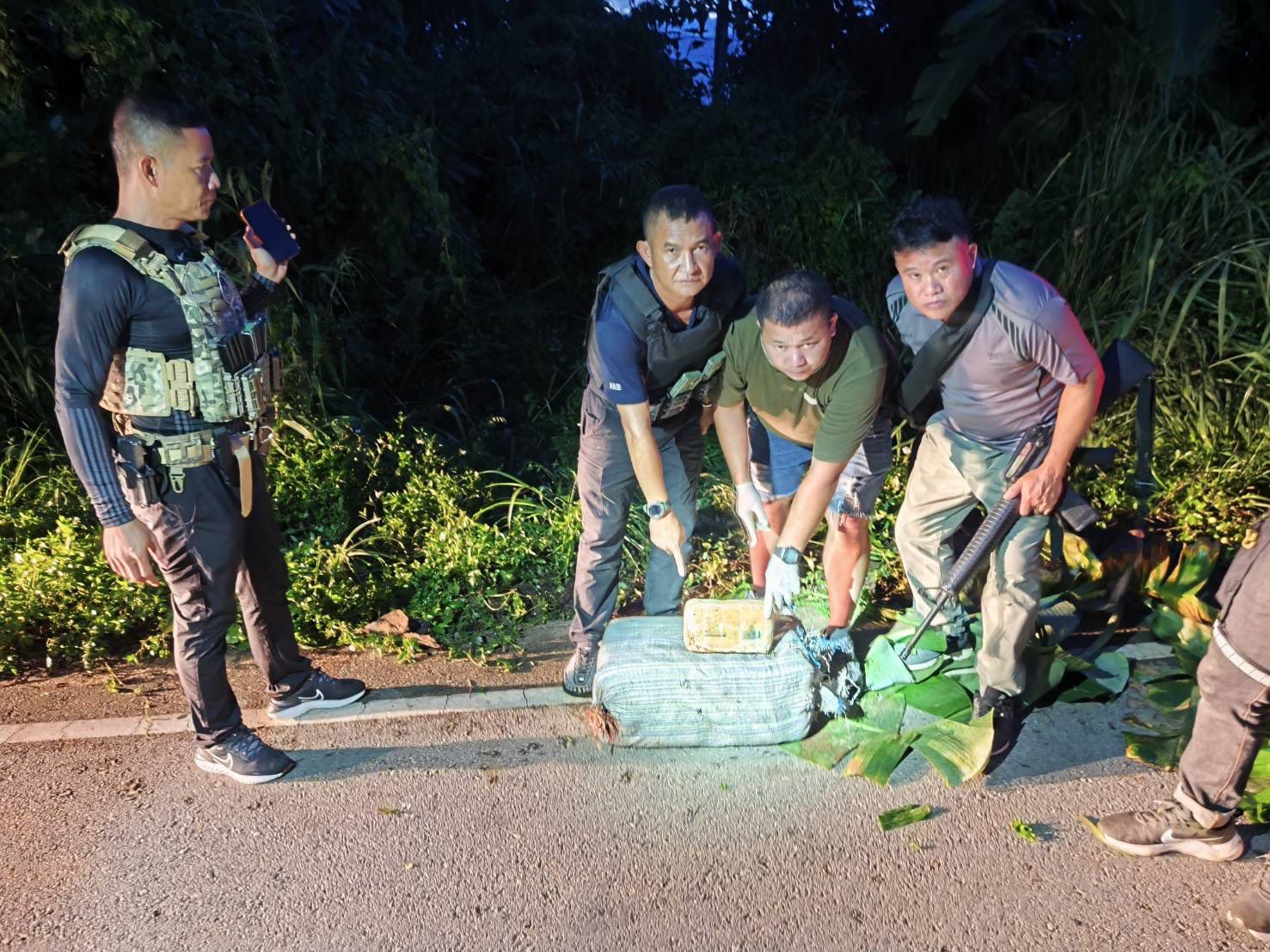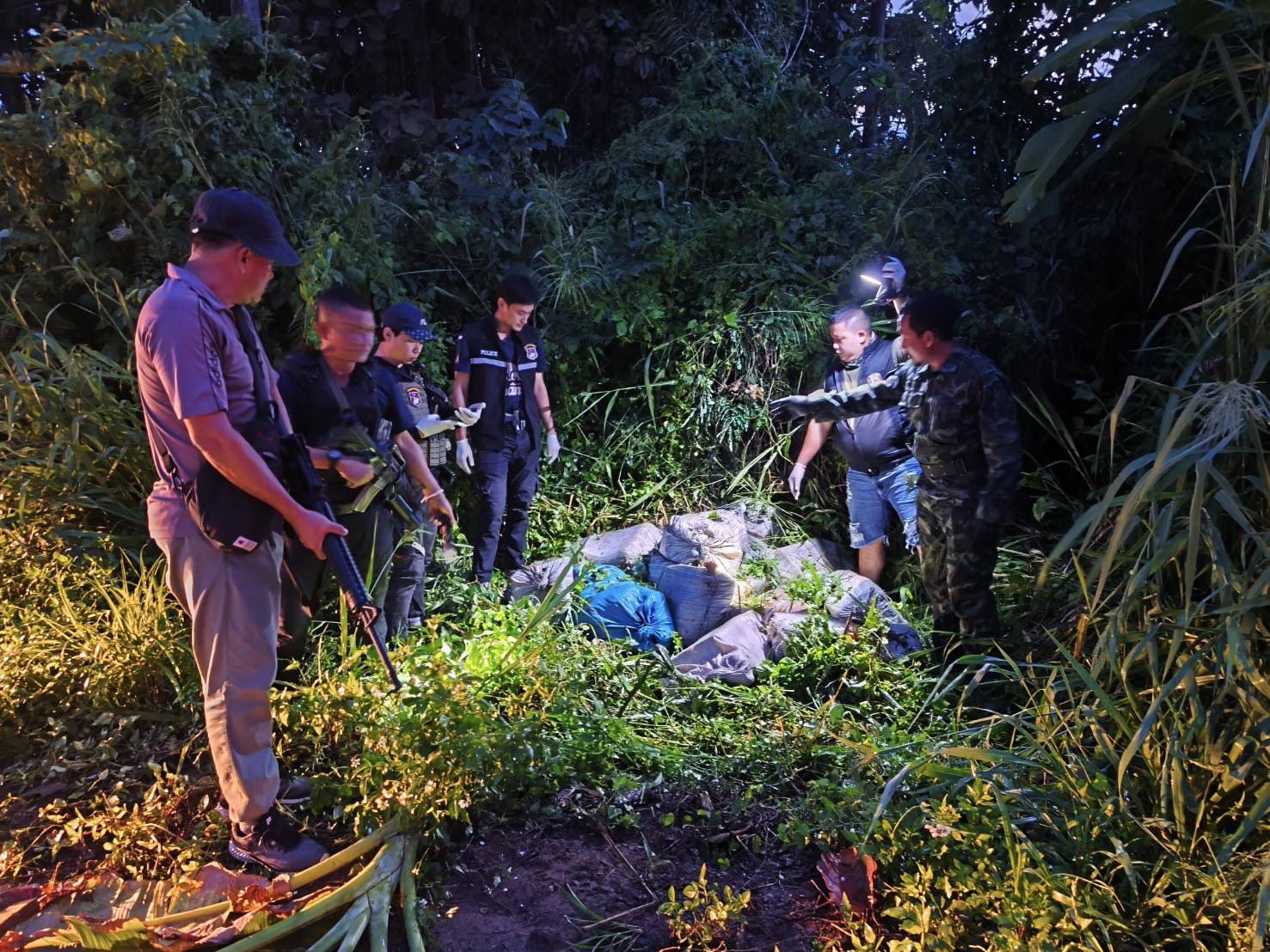 ต่อมาเวลา 18.30 น. ชุดปฏิบัติการสังเกตเห็นความเคลื่อนไหวของกลุ่มวัยรุ่นต้องสงสัยบริเวณป่าริมถนน จึงเข้าทำการตรวจสอบอย่างละเอียด พบยาบ้าบรรจุในถุงกระสอบ รวม 12 กระสอบ หรือประมาณ 1,180 มัด (คิดเป็น 2,360,000 เม็ด) ถูกนำมาวางซุกซ่อนอยู่ในโพลงหญ้าข้างทาง เพื่ออำพรางสายตาเจ้าหน้าที่