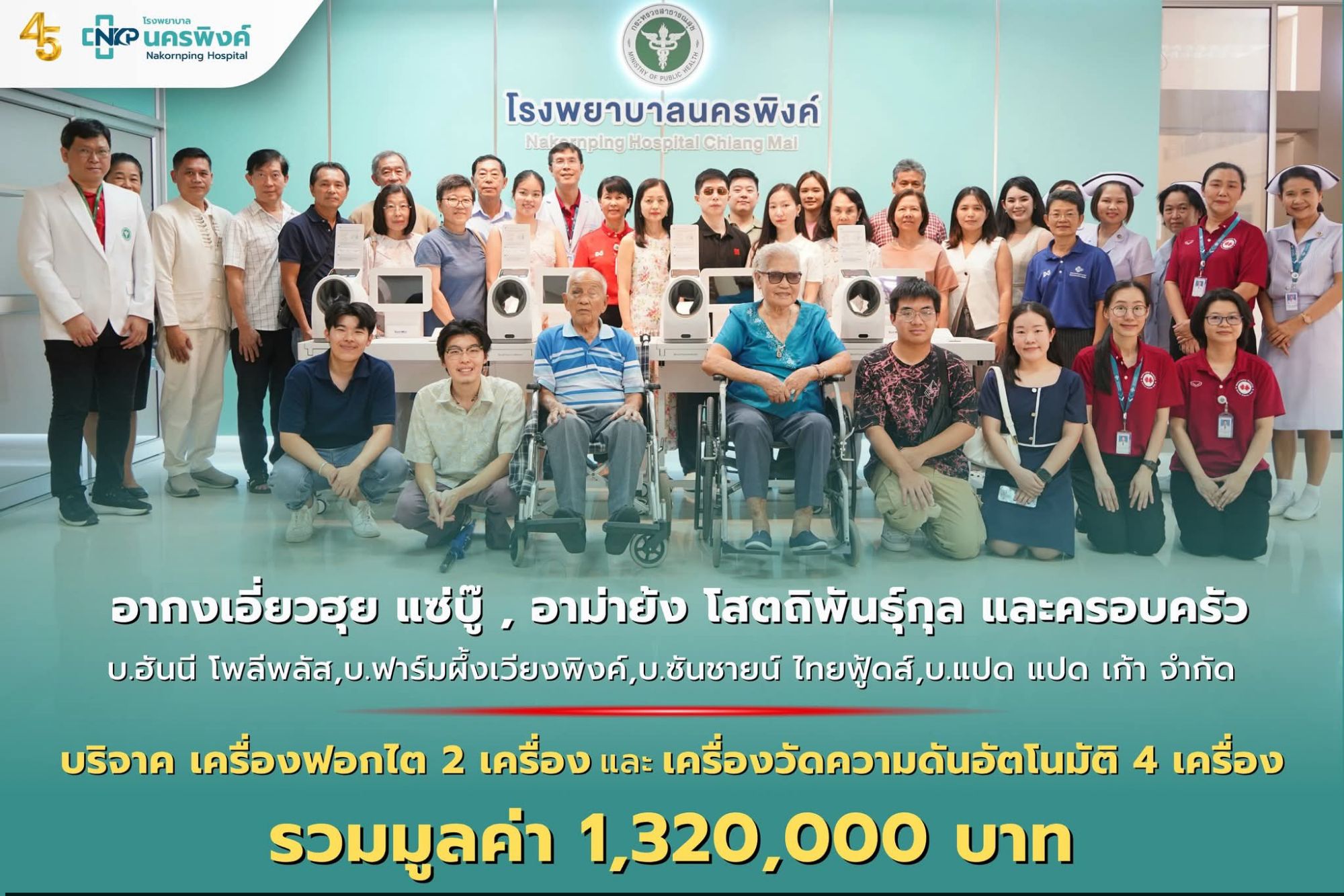 ในการนี้ นายแพทย์พันธพงศ์ ตาเรืองศรี รองผู้อำนวยการฝ่ายการแพทย์ คนที่ 1 ของโรงพยาบาลนครพิงค์ ได้ให้เกียรติเป็นผู้รับมอบเครื่องมือแพทย์ดังกล่าว