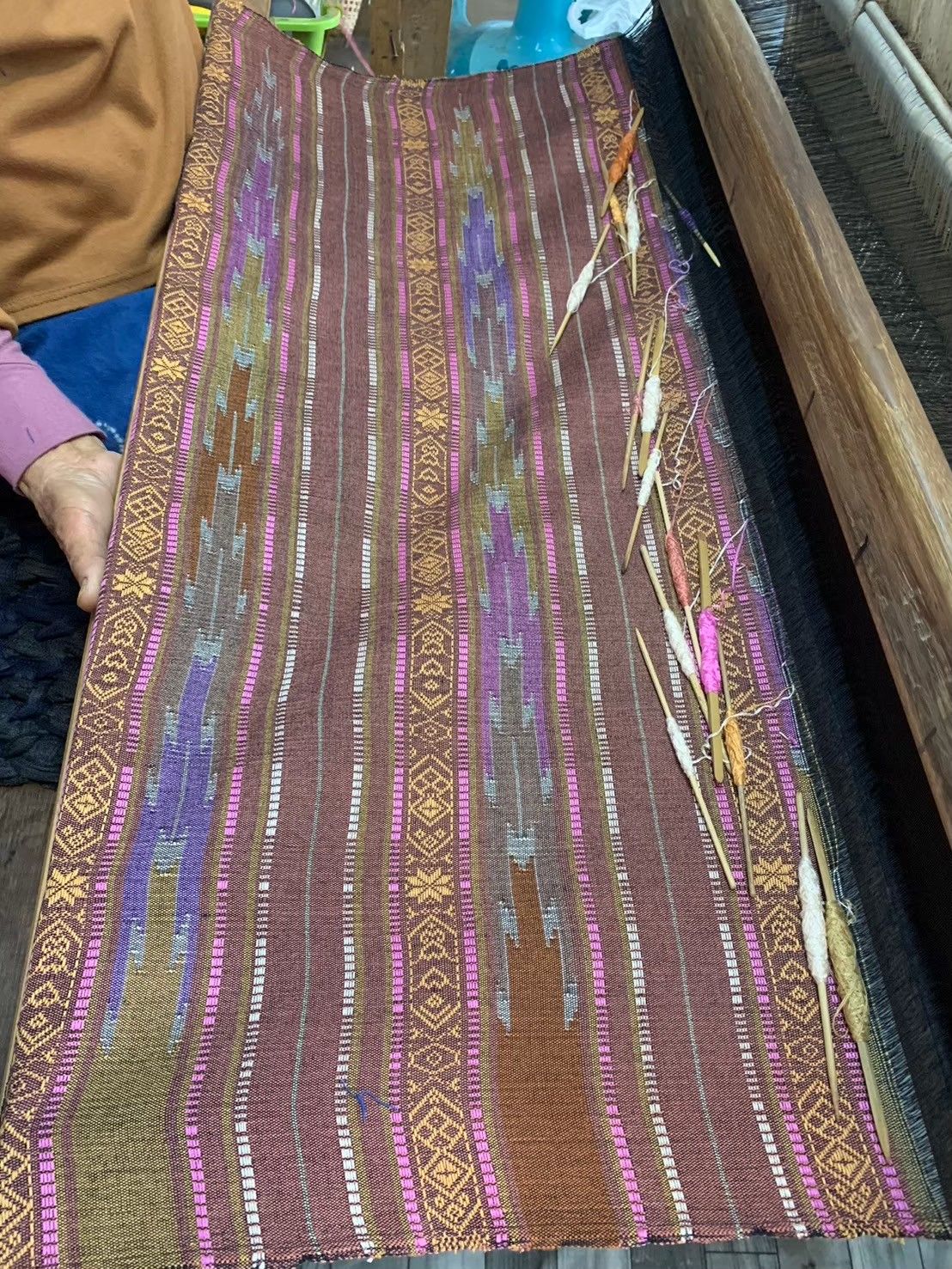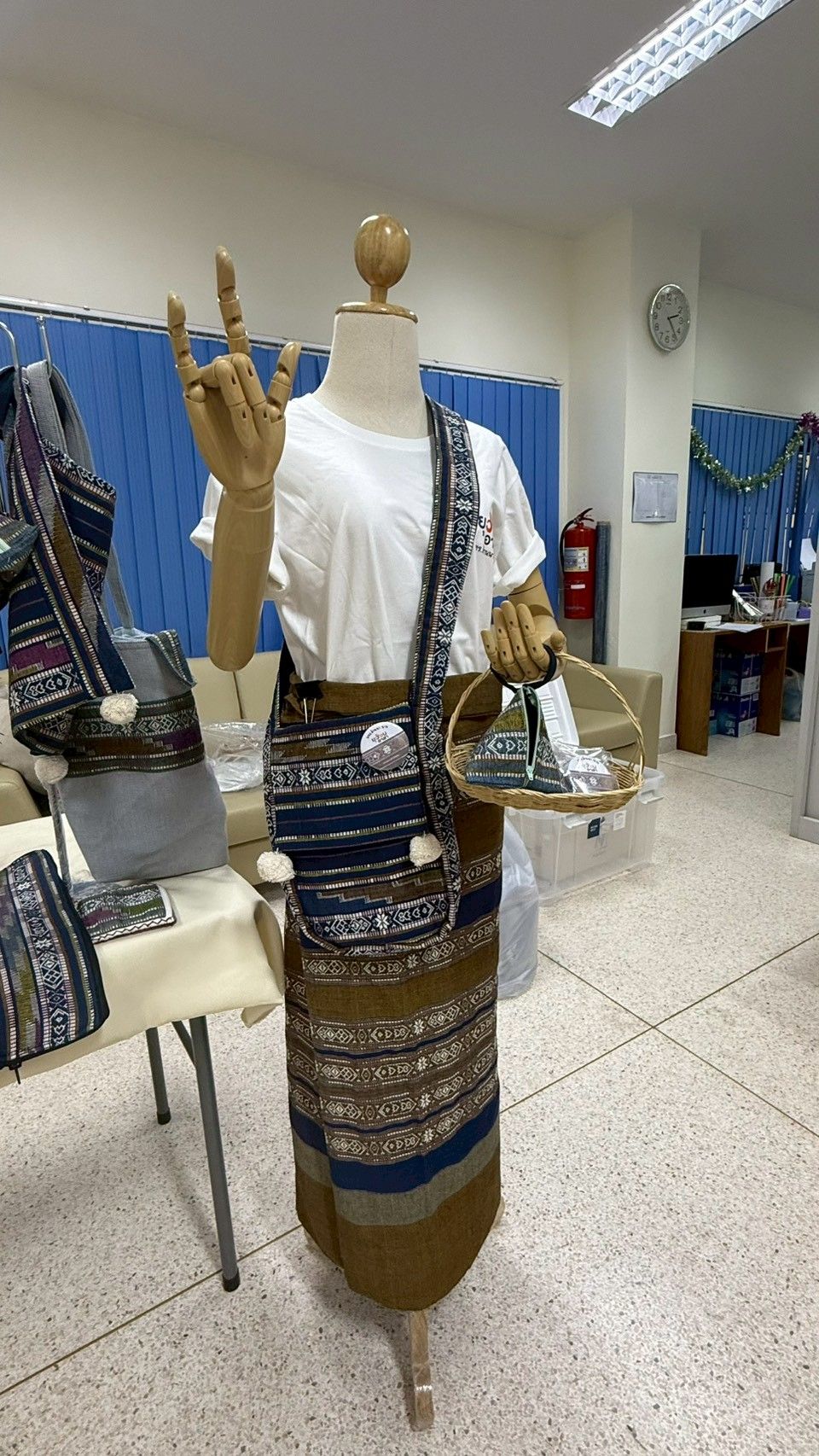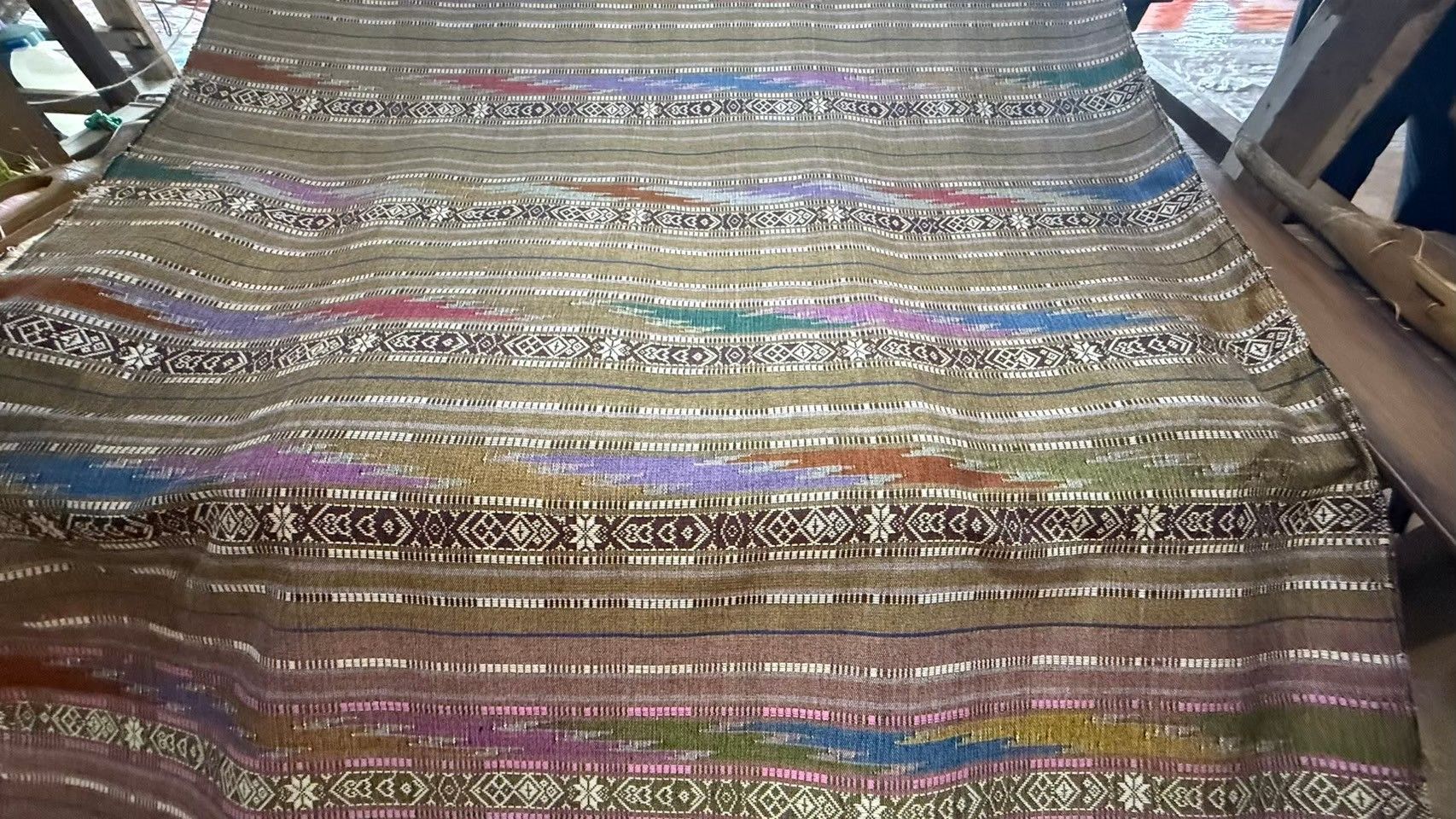 จากนั้น ทีมวิจัยได้คัดเลือกลายที่ได้จาก AI ประมาณ 10 ภาพ ส่งให้ช่างทอในชุมชนพิจารณาว่าสามารถนำไปขึ้นกี่ได้จริงและเหมาะสมตามหลักการออกแบบ ก่อนจะคัดเลือกสุดท้ายเป็นลายต้นแบบสำหรับผลิตจริง
