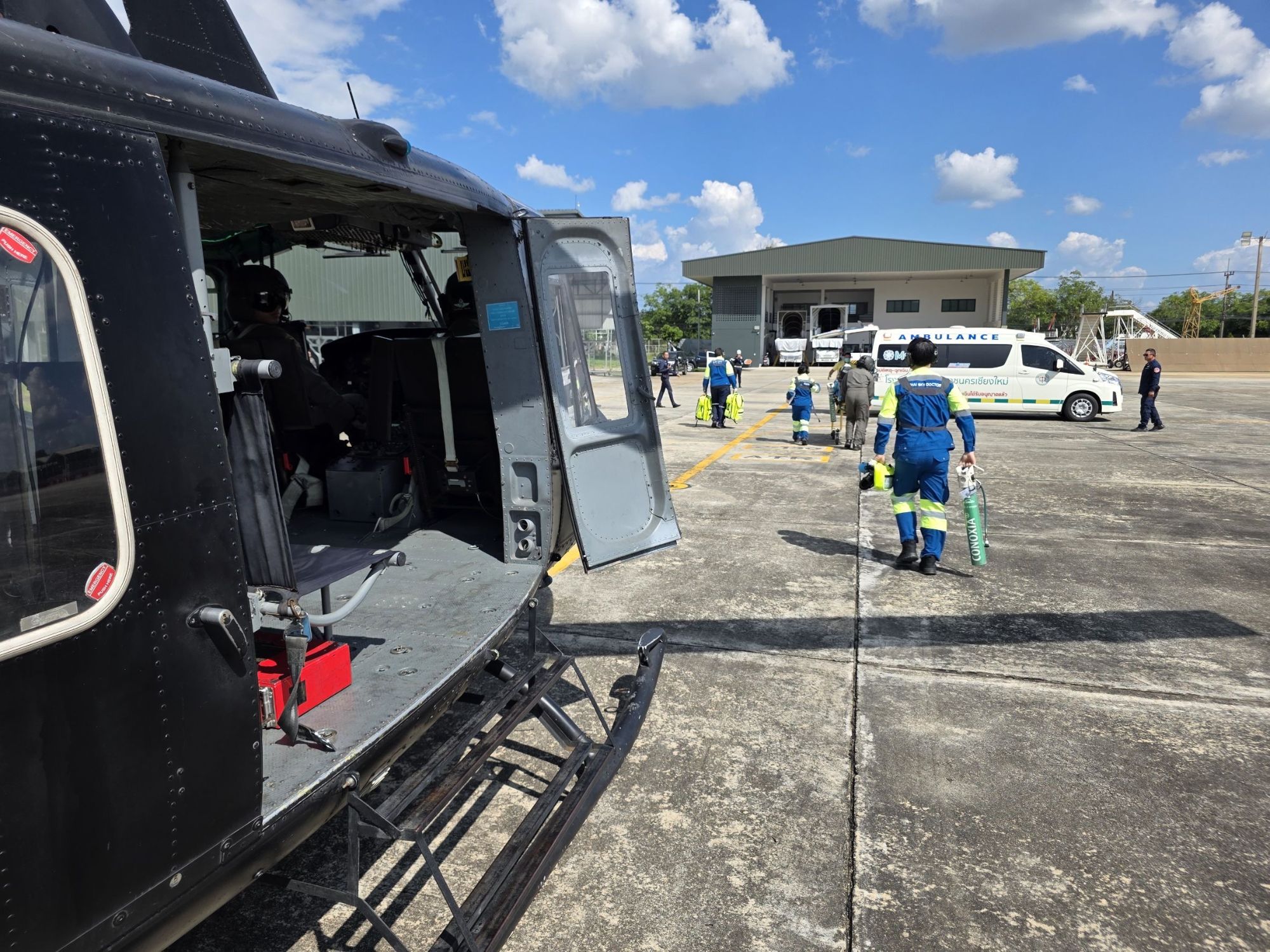 ภารกิจครั้งนี้เป็นการสนับสนุน สถาบันการแพทย์ฉุกเฉินแห่งชาติ (สพฉ.) ร่วมกับทีม SKY DOCTOR โรงพยาบาลมหาราชนครเชียงใหม่ เพื่อรับ ผู้ป่วยวิกฤติ เพศหญิง อายุ 71 ปี ซึ่งมีอาการ ภาวะหายใจเหนื่อย อย่างรุนแรง
