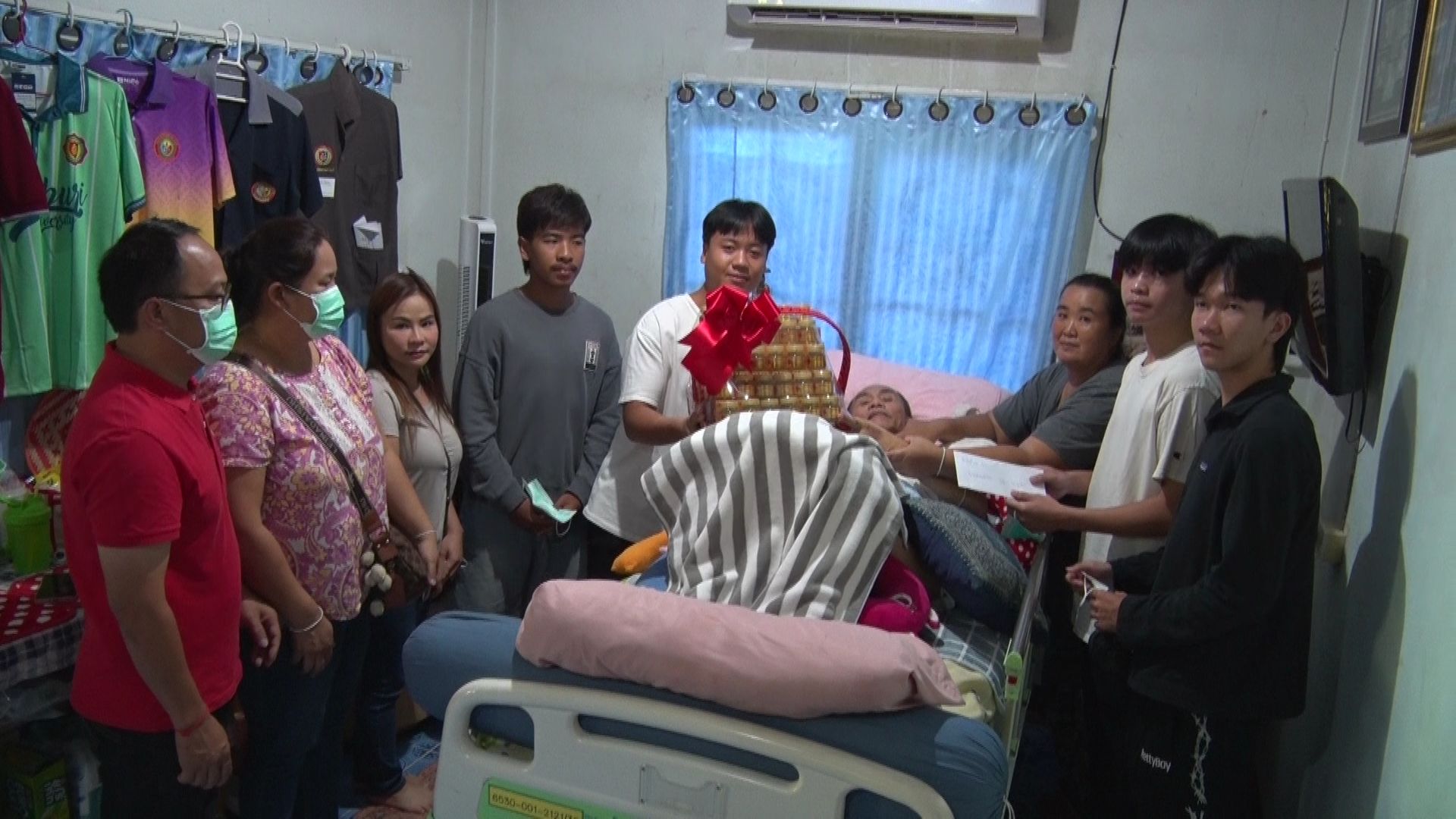 เชียงใหม่ ’13 หมูป่า’ ตัวแทนยกทีมพร้อมผู้ปกครองเยี่ยม ‘ลุงสุรทิน’ ฮีโร่เจาะบาดาลถ้ำหลวง หลังป่วยติดเตียงนาน 5 เดือน มอบเงิน-กำลังใจ เผยยึดเป็นแบบอย่าง ‘ความเสียสละเพื่อสังคม’