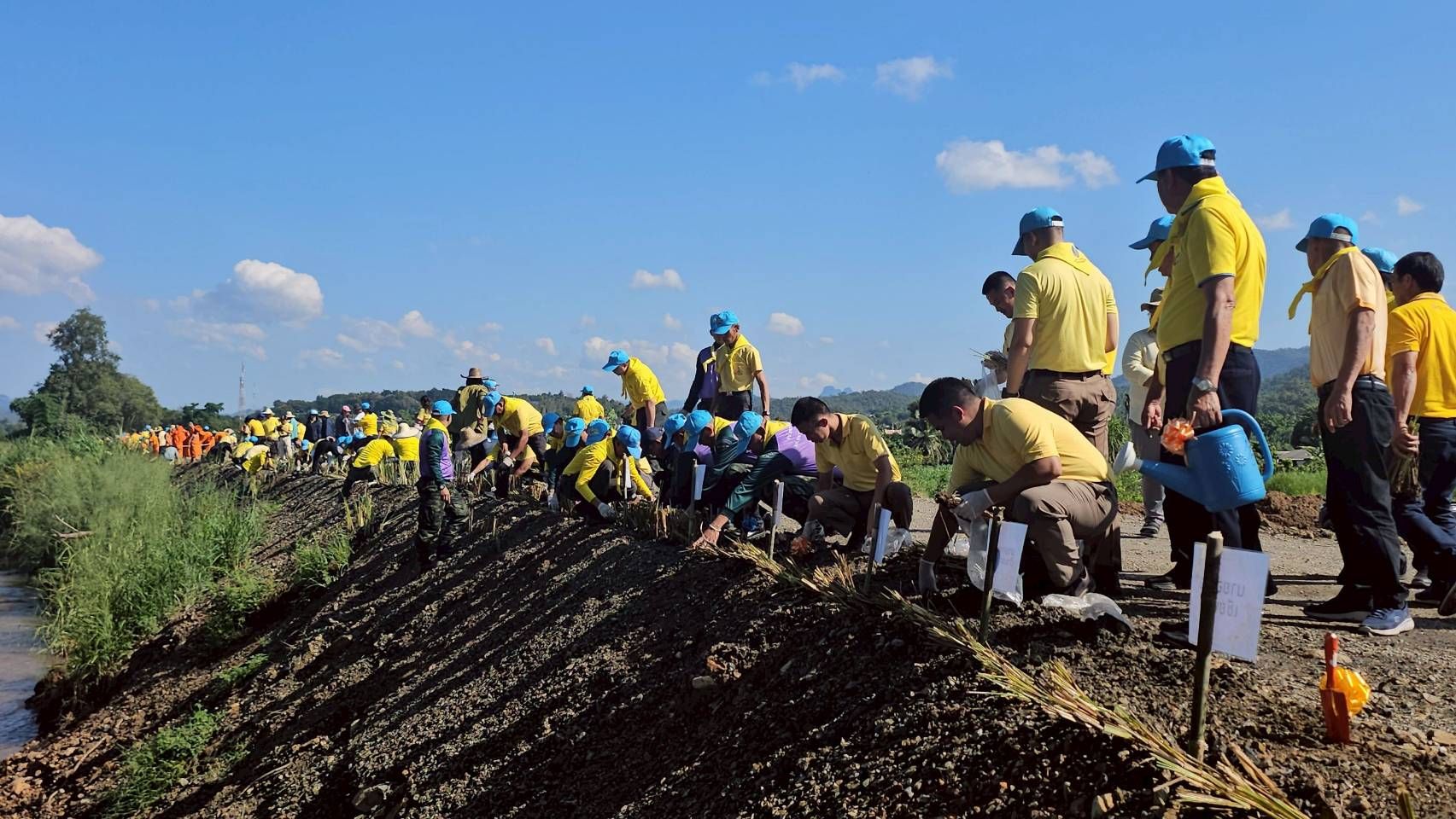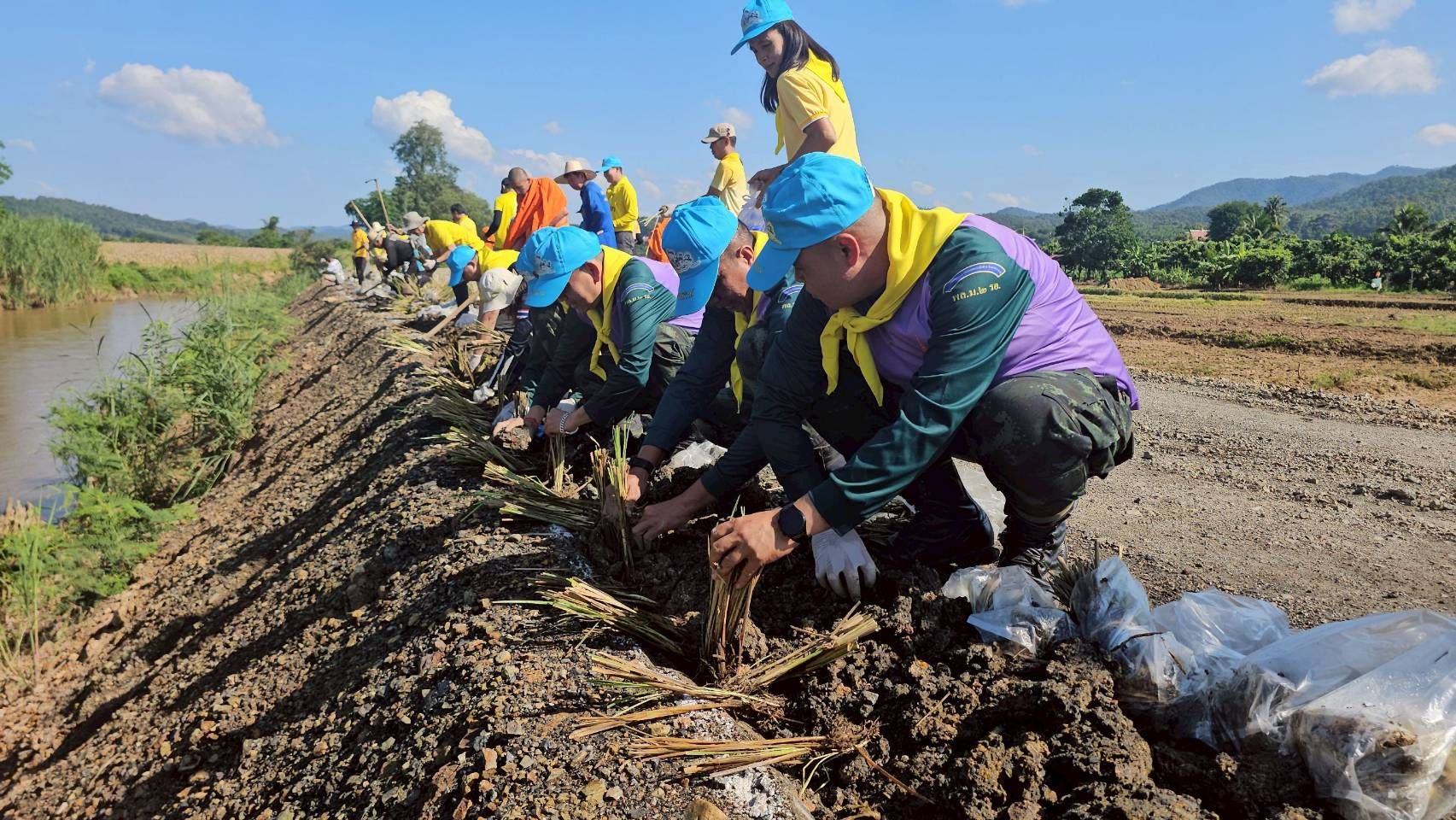 เมื่อวันที่ 22 ต.ค.68 เวลา 08.30 น. กกล.ผาเมือง โดย บก.ผาดง ฉก.ไชยานุภาพ นำกำลังพลชุดจิตอาสาของหน่วย ร่วมกับ ทต.ทุ่งข้าวพวง ,กำนัน-ผู้ใหญ่บ้าน และประชาชนในพื้นที่ ต.ทุ่งข้าวพวง อ.เชียงดาว ฯ ร่วมจัดกิจกรรมโครงการปลูกหญ้าแฝกเฉลิมพระเกียรติฯ เพื่อถวายเป็นพระราชกุศลพระบาทสมเด็จพระปรเมนทรรามาธิบดีศรีสินทรมหาวชิราลงกรณ พระวชิรเกล้าเจ้าอยู่หัว