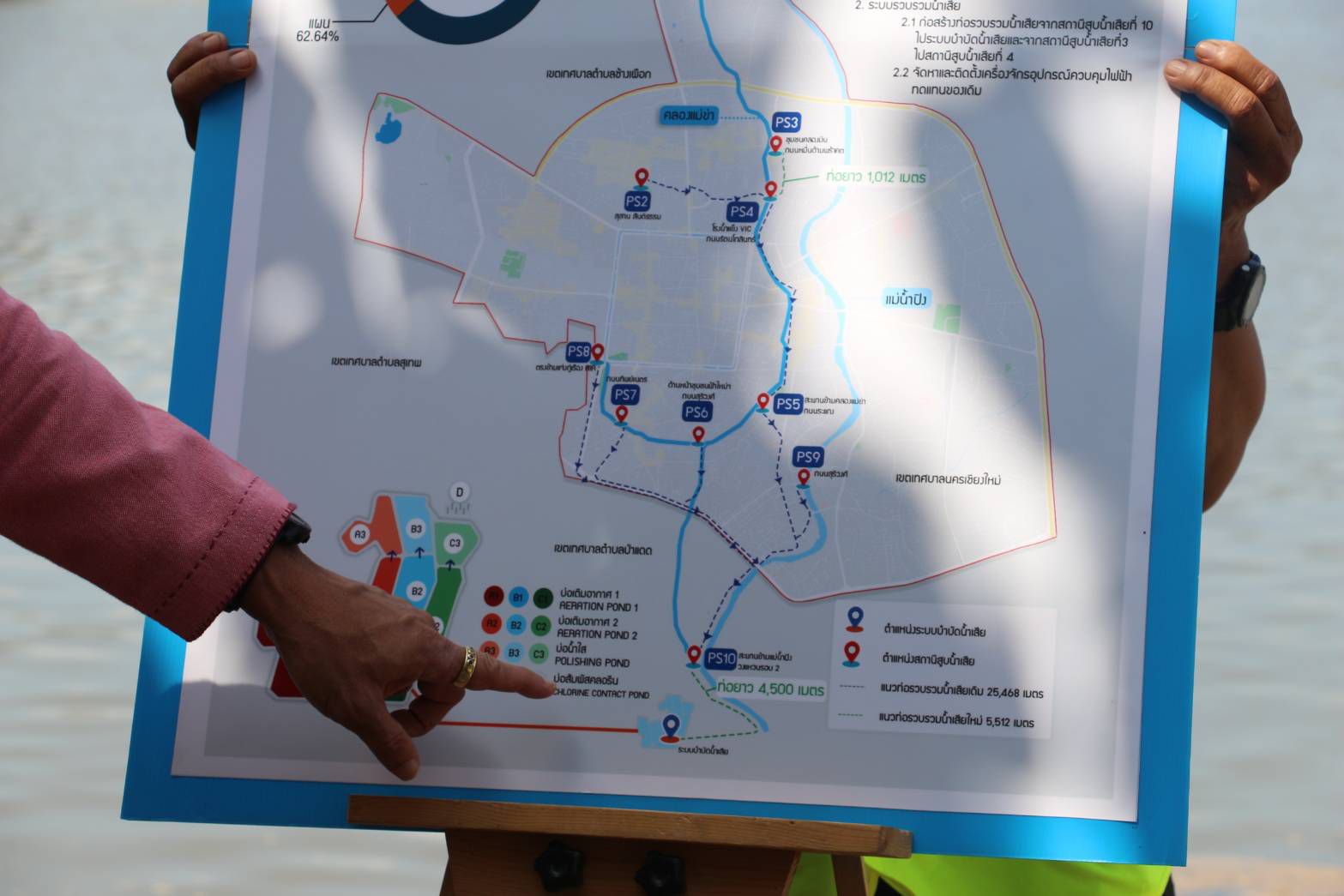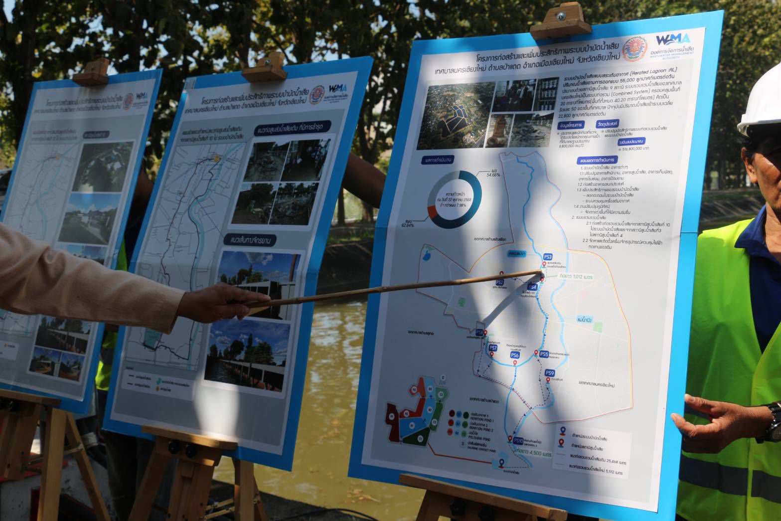 โดยรัฐบาลได้จัดสรรงบประมาณ 497 ล้านบาท ให้กับองค์การกำจัดน้ำเสียมาดำเนินโครงการก่อสร้างและเพิ่มประสิทธิภาพระบบบำบัดน้ำเสียในเขตพื้นที่เทศบาลนครเชียงใหม่ มีภารกิจหลัก คือ การเปลี่ยนท่อส่งน้ำเสียทดแทนของเดิมที่เริ่มชำรุดหลังจากใช้งานมากว่า 20 ปี โดยเฉพาะ 2 ช่วงหลัก คือ จากสถานีสูบน้ำเสียที่ 3 มาจากยังสถานีสูบน้ำเสียที่ 4 ระยะ 1,012 เมตร (ดำเนินการเสร็จแล้ว) และจากสถานีสูบน้ำเสียที่ 10 มายังบ่อบำบัดน้ำเสีย ระยะ 4,500 เมตร (ยังเหลืออีก 2,500 เมตร) ทั้งนี้ เมื่อดำเนินการเปลี่ยนท่อส่งน้ำเสียทั้ง 2 ระยะแล้วเสร็จ ก็จะสามารถใช้ท่อใหม่แทนของเดิมได้เลย นอกจากนี้ยังมีการดำเนินงานอื่นๆ อาทิ การดีเพรสระบบไฟฟ้าและเครื่องจักร การปรับปรุงสถานีสูบน้ำเสียที่อยู่รอบตัวเมืองเชียงใหม่ทั้ง 9 จุด การปรับปรุงเครื่องจักรในบ่อบำบัดน้ำเสีย การปรับปรุงภูมิทัศน์ การก่อสร้างอาคารสำนักงาน และการเปลี่ยนเครื่องเติมอากาศ โดยภาพรวมของโครงการขณะนี้คืบหน้าไปแล้วประมาณ 54 เปอร์เซ็นต์ และจะดำเนินการแล้วเสร็จทั้งหมดในเดือนกันยายน 2569