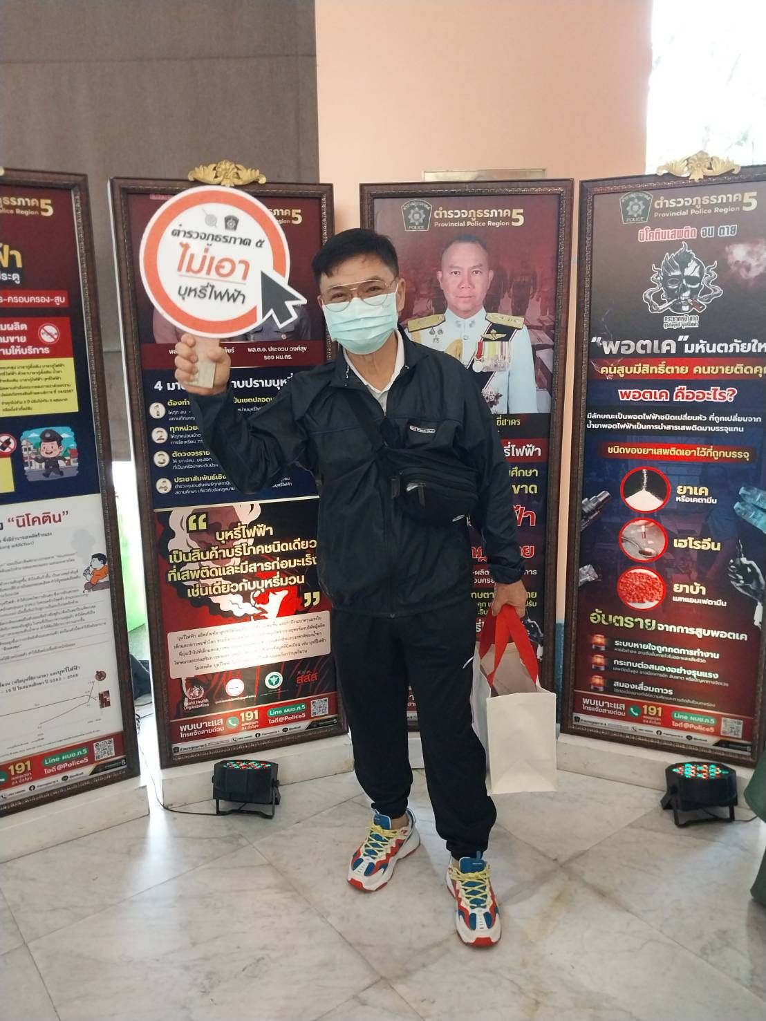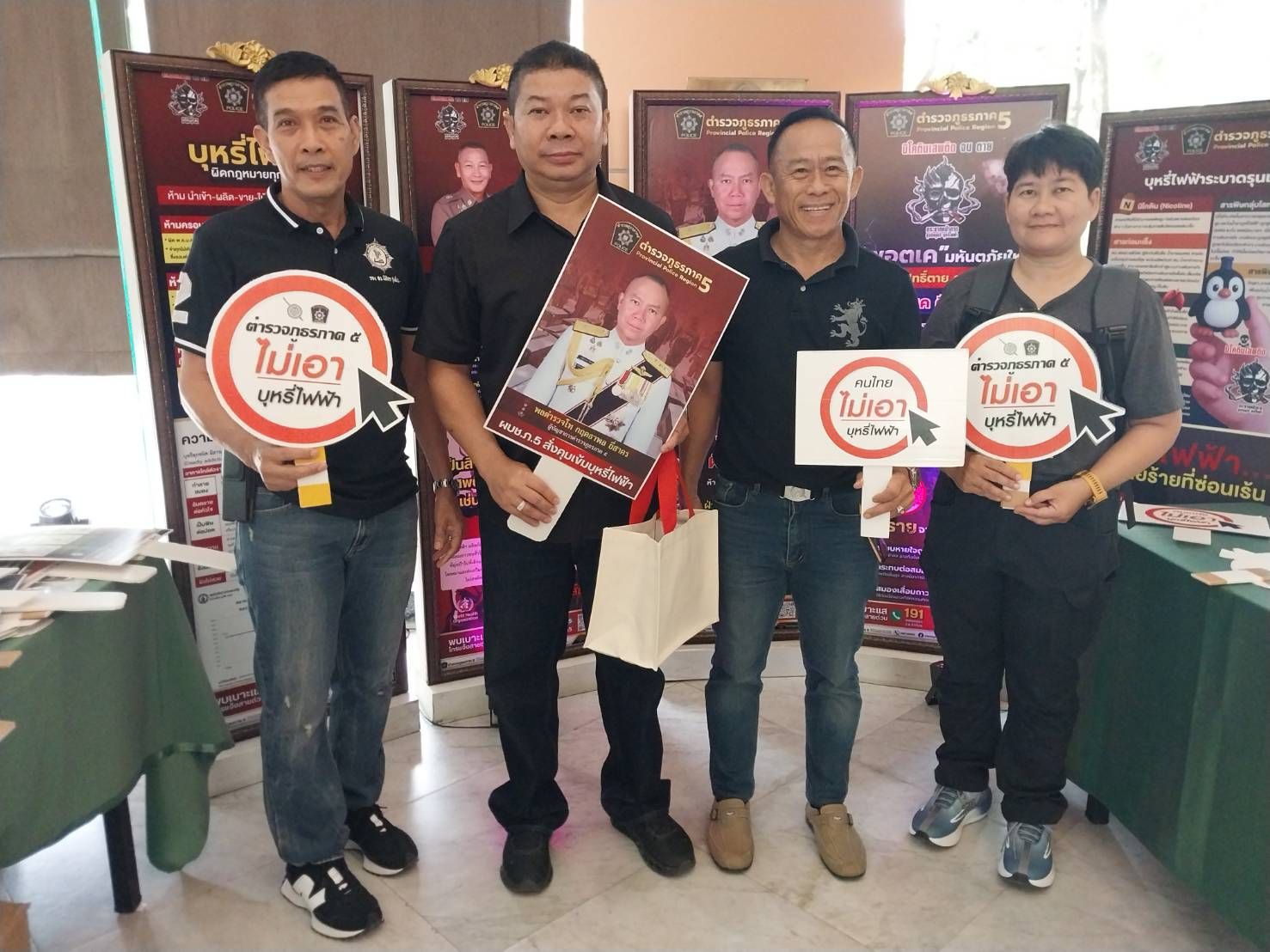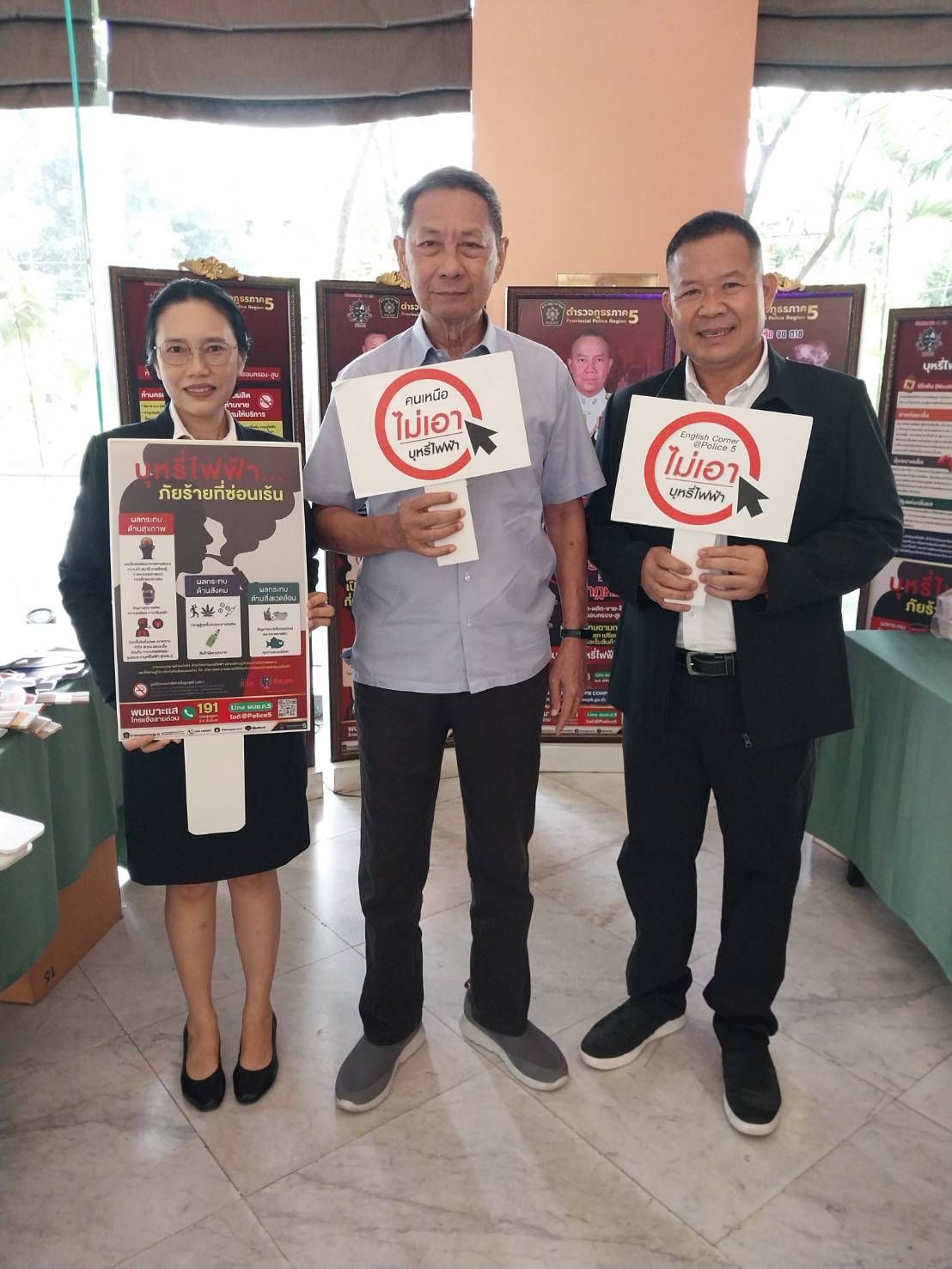 อนึ่งการจัดกิจกรรมดังกล่าว ได้รับการสนับสนุนจากมูลนิธิรณรงค์เพื่อการไม่สูบบุหรี่ ,บริษัทซันสวีท จำกัด และ ชมรม English Corner@Police 5 ซึ่งได้รับความสนใจจากผู้เข้าร่วมประชุมดังกล่าวเป็นจำนวนมาก โดยการรณรงค์ในครั้งนี้จะทำให้ผู้เข้าร่วมกิจกรรมได้รับทราบถึงข้อกฎหมายเกี่ยวกับบุหรี่ไฟฟ้า ตลอดจนพิษภัยของบุหรี่และบุหรี่ไฟฟ้า และสร้างความตระหนักในการบังคับใช้กฎหมาย ตลอดจนเกิดความร่วมมือในการร่วมกันปกป้องเด็กและเยาวชนให้ห่างไกลจากบุหรี่ บุหรี่ไฟฟ้าและยาเสพติดต่อไป.