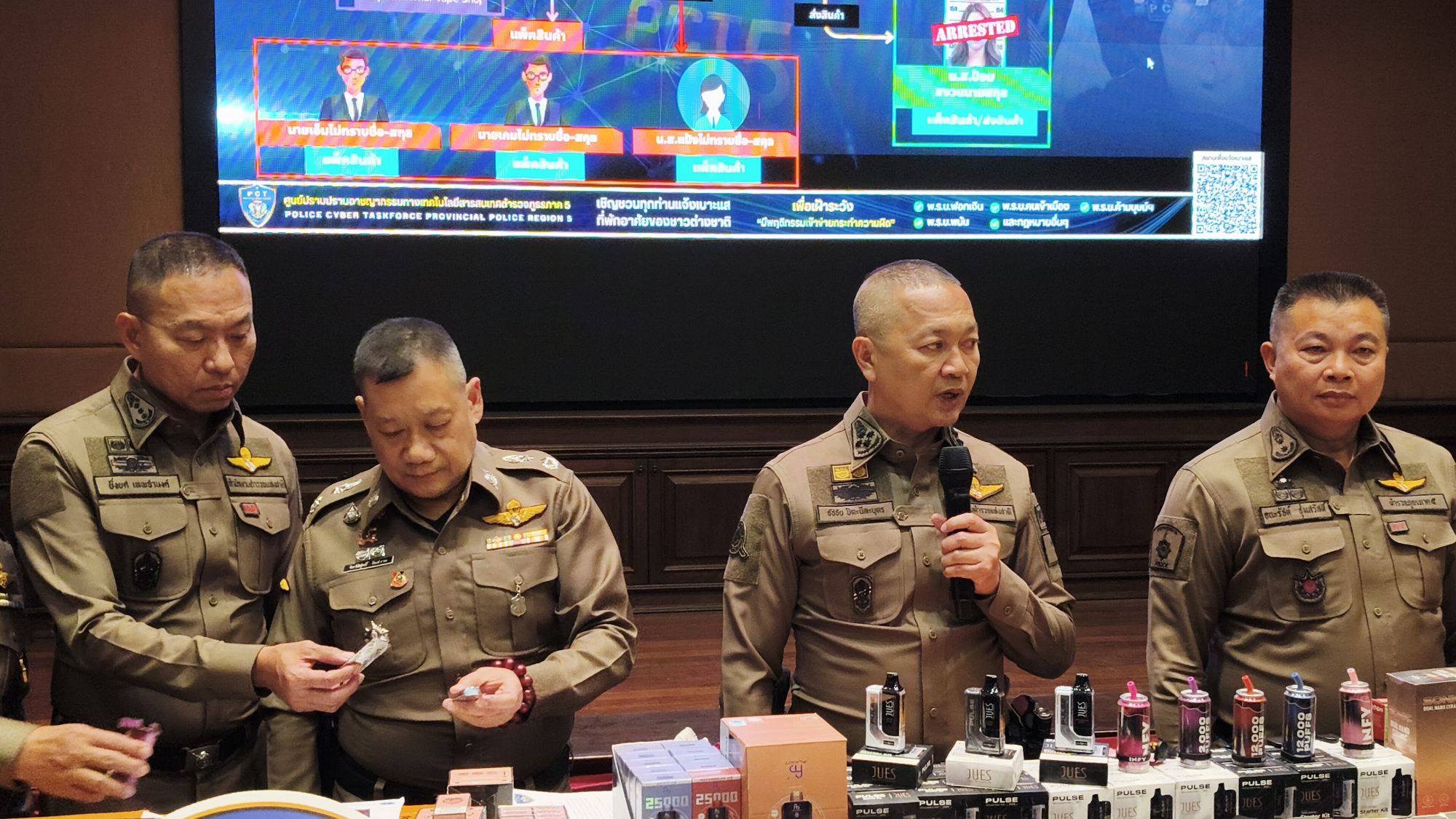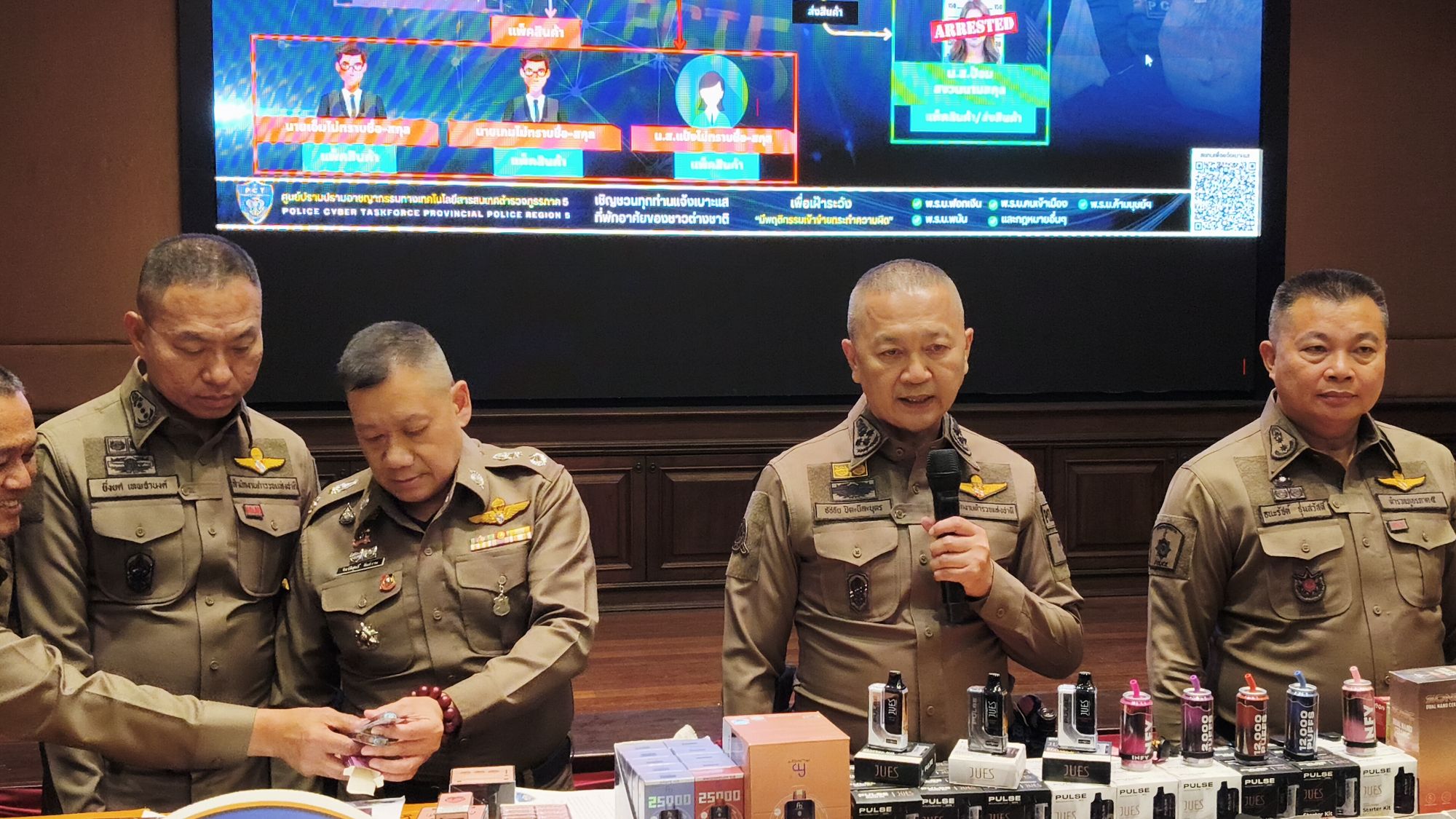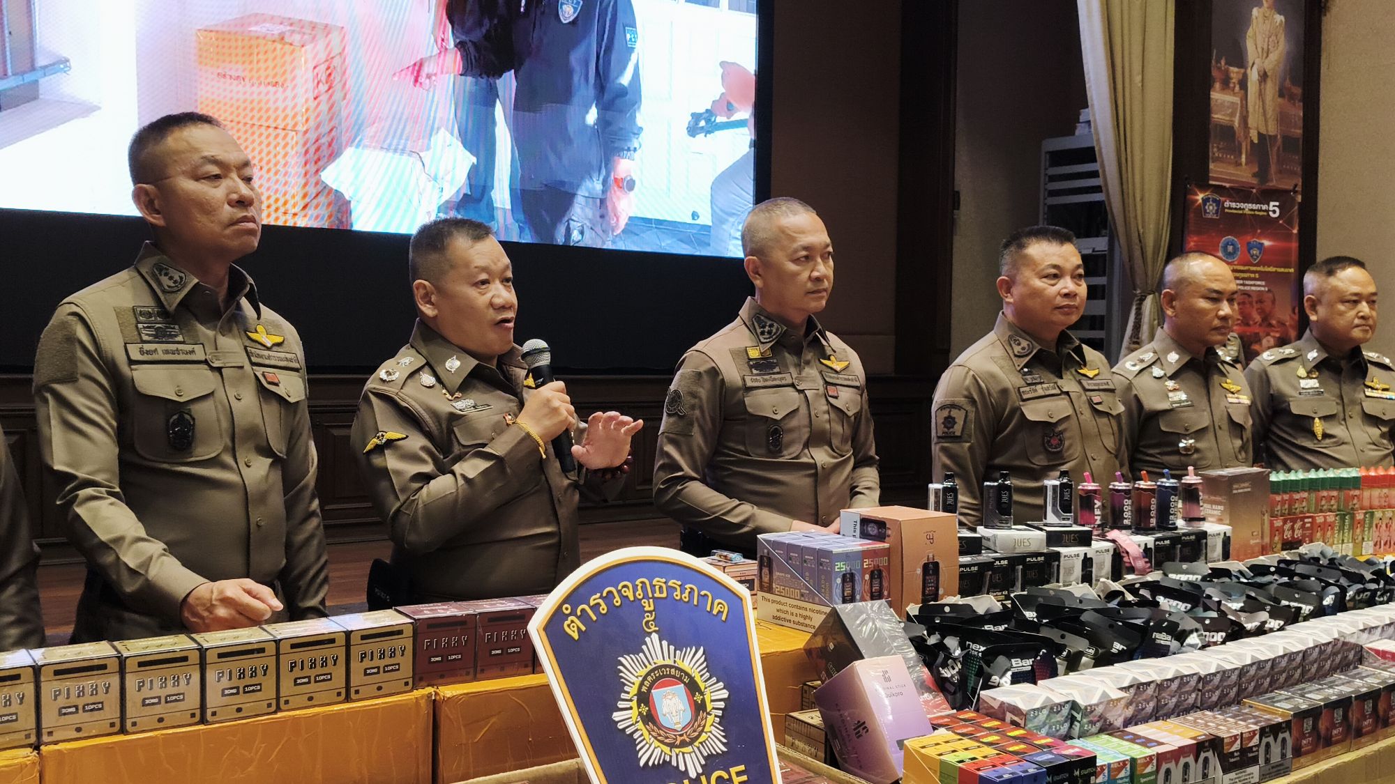 รอง ผบ.ตร. ขึ้นเหนือมอบนโยบาย พร้อมร่วมแถลงข่าวตำรวจภาค 5 บุกทลายเครือข่าย “VAPEHAUS” กลางเมืองเชียงใหม่ ยึดบุหรี่ไฟฟ้ากว่า 3.6 หมื่นชิ้น มูลค่า 6.6 ล้านบาท