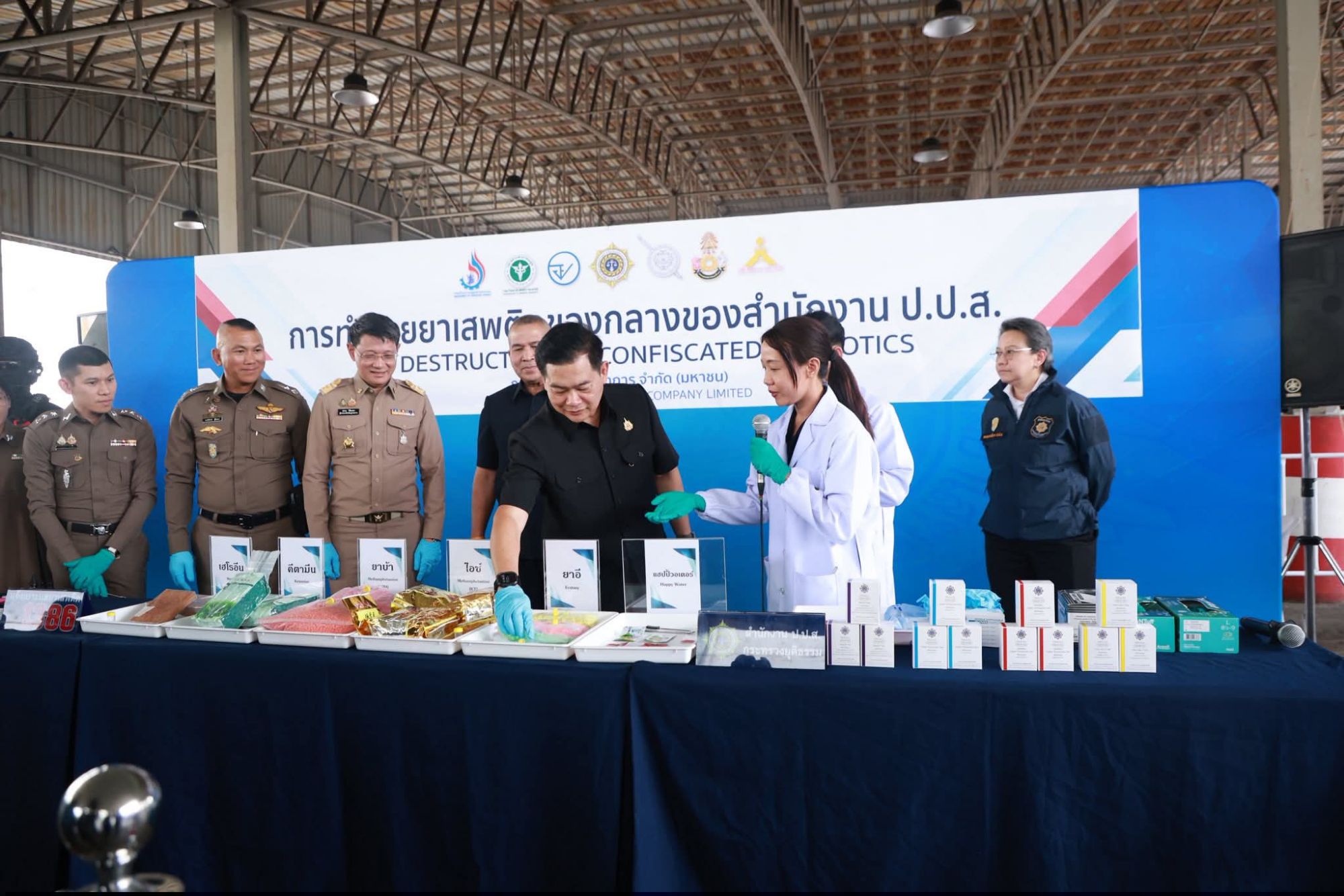 การทำลายยาเสพติดครั้งนี้ เป็นการตอกย้ำถึงความมุ่งมั่นของรัฐบาลในการแก้ไขปัญหายาเสพติดอย่างจริงจังและเด็ดขาด สำหรับยาเสพติดของกลาง มีน้ำหนักสุทธิเฉพาะตัวยาเสพติด 22.21 ตัน ประกอบด้วย ยาบ้า 138 ล้านเม็ด (12,737.54 กิโลกรัม), ไอซ์ 5,157.23 กิโลกรัม, เฮโรอีน 1,133.89 กิโลกรัม, คีตามีน 601.08 กิโลกรัม และยาเสพติดประเภทอื่นๆ อีกกว่า 2,583.79 กิโลกรัมพล.ต.ท. รุทธพล เนาวรัตน์ กล่าวเน้นย้ำว่า “ตามนโยบายของนายกรัฐมนตรี นายอนุทิน ชาญวีรกูล ที่ได้ประกาศให้การปราบปรามยาเสพติดเป็นวาระแห่งชาติที่รัฐบาลให้ความสำคัญอย่างสูงสุด เรามุ่งเน้นการดำเนินงานครบทุกมิติ ทั้งการป้องกัน ปราบปราม และบำบัดฟื้นฟู เพื่อสร้างความปลอดภัยให้แก่สังคมและลดความเดือดร้อนของพี่น้องประชาชน การทำลายยาเสพติดล็อตใหญ่นี้ เป็นผลจากประมวลกฎหมายยาเสพติดฉบับใหม่ ที่ทำให้เราจัดการของกลางได้อย่างรวดเร็ว โปร่งใส และตรวจสอบได้ รัฐบาลขอเน้นย้ำว่าทุกนโยบายต้องเกิดผลเป็นรูปธรรม และนี่คือการส่งสัญญาณที่ชัดเจนว่าเราประกาศตน ‘เป็นศัตรูกับผู้ค้ายาเสพติด’ การดำเนินการครั้งที่ 11 นี้ยอดรวมยาเสพติดที่ทำลายไปแล้วมีน้ำหนักกว่า 225 ตัน การมีผู้แทนจากทุกภาคส่วนมาร่วมเป็นสักขีพยานในวันนี้ คือเครื่องยืนยันความ โปร่งใส เพื่อสร้างความเชื่อมั่นให้แก่ประชาชนว่ายาเสพติดที่จับกุมได้จะถูกจัดการอย่างเด็ดขาด ไม่มีโอกาสเล็ดลอดกลับไปทำลายอนาคตของลูกหลานและสังคมไทยอีกต่อไป”ด้าน พ.ต.ต. สุริยา สิงหกมล กล่าวเสริมว่า “ ภายใต้การนำของท่านรัฐมนตรีฯ สำนักงาน ป.ป.ส. ขอยืนยันว่ายาเสพติดที่เห็นในวันนี้ คือผลจากการทำงานอย่างหนักของเจ้าหน้าที่ทุกฝ่าย ภารกิจของเราไม่ได้จบที่การจับกุม แต่จะสมบูรณ์ก็ต่อเมื่อของกลางเหล่านี้ถูกทำลายจนหมดสิ้น ขอให้ประชาชนมั่นใจว่าเราจะปฏิบัติหน้าที่อย่างเข้มแข็งต่อไป เพื่อปกป้องสังคมและอนาคตของลูกหลานเราทุกคน ”นับตั้งแต่ปีงบประมาณ 2566 ป.ป.ส. ได้สกัดกั้นและทำลายยาเสพติดของกลางไปแล้ว 11 ครั้ง จาก 2,198 คดี รวมน้ำหนักกว่า 225.19 ตัน ในจำนวนนี้เป็นยาบ้ากว่า 1,492 ล้านเม็ด ซึ่งมีมูลค่าปลายทางสูงกว่าหลายหมื่นล้านบาท การทำลายยาเสพติดทั้งหมดนี้ คือการตัดวงจร ทางการเงินของเครือข่ายยาเสพติดโดยตรง เพื่อหยุดยั้งเงินทุนสกปรกและป้องกันยาเสพติดไม่ให้ถึงมือประชาชน