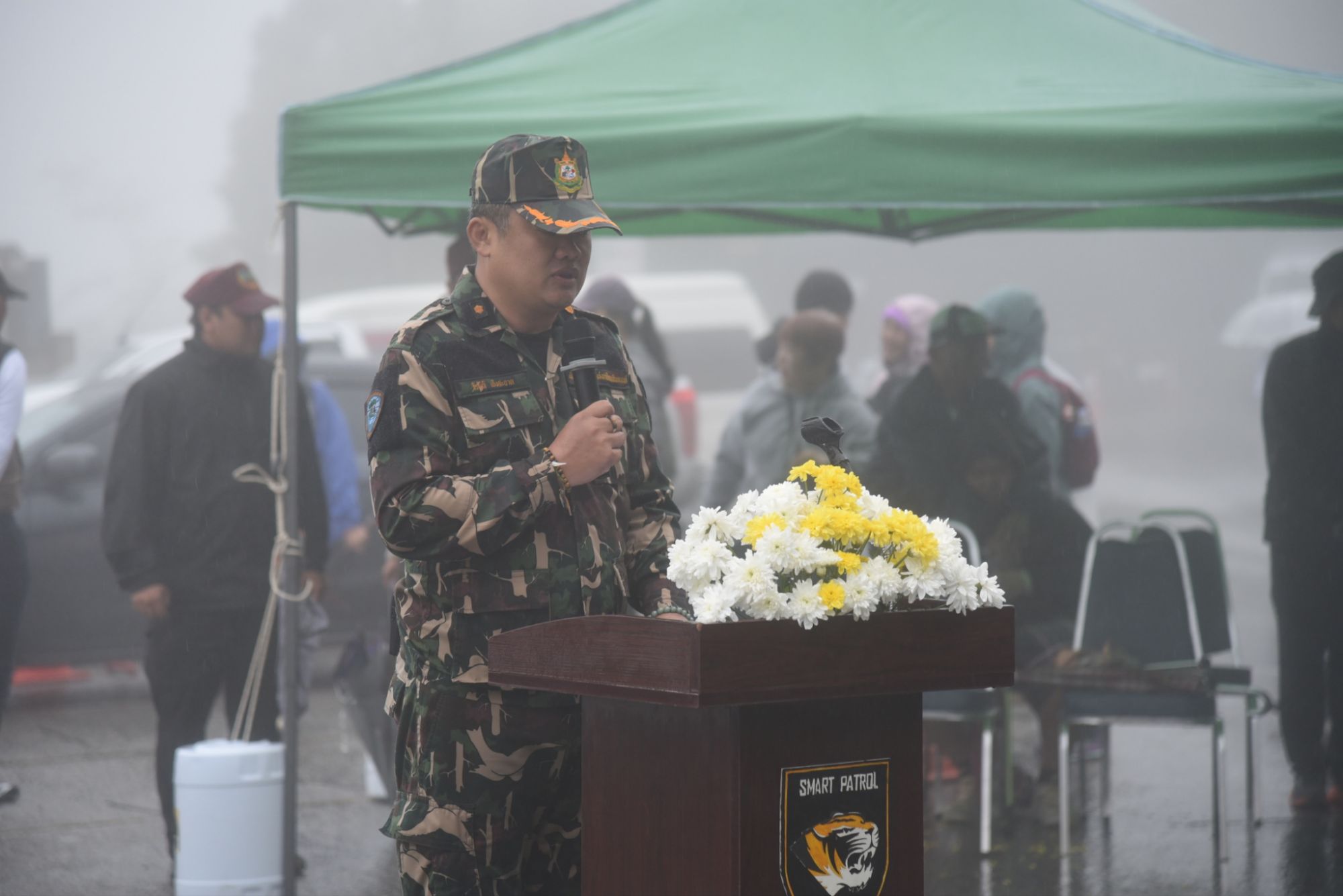 ท่ามกลางสภาพอากาศที่ฝนตกหนักและอุณหภูมิต่ำสุด 14 องศาเซลเซียส นายกริชสยาม คงสตรี ผู้อำนวยการฯ ได้กล่าวเปิดงานและมอบของที่ระลึกให้กับนักท่องเที่ยวผู้มาเยือน อาทิ ที่พักบ้านรับรองหลังใหญ่ เสื้อยืด และสมุดภาพ เพื่อเป็นขวัญกำลังใจ