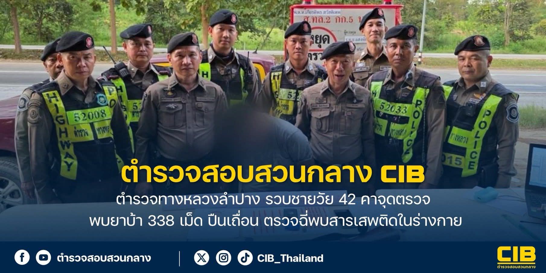 ตำรวจทางหลวงลำปาง รวบชายวัย 42 คาจุดตรวจ พบยาบ้า 338 เม็ด ปืนเถื่อน ตรวจฉี่พบสารเสพติดในร่างกาย
