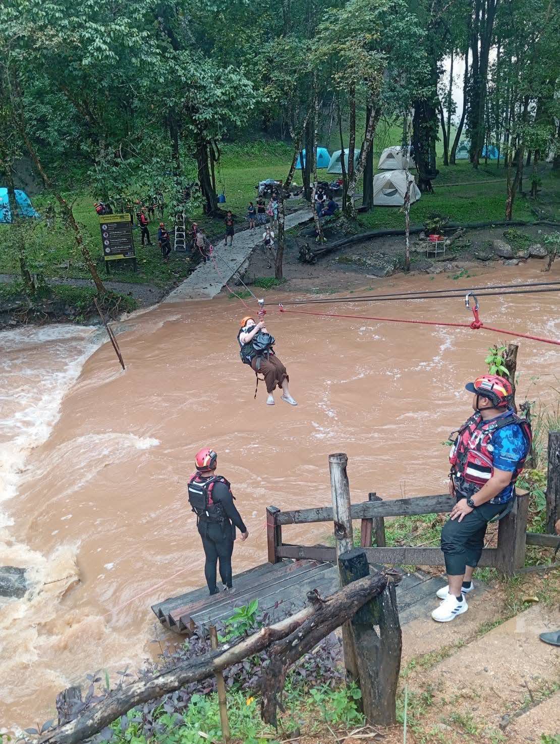 สภ.จอมทอง ร่วมกับ เจ้าหน้าที่ชุดกู้ภัยอุทยานแห่งชาติออบหลวง เทศบาลตำบลดอยแก้ว ชมรมตอบโต้ภัยพิบัติเชียงใหม่ มูลนิธิเทวฤษธิ์ ช่วยเหลือนักท่องเที่ยว 25 คน ปลอดภัยจากน้ำป่าไหลหลากน้ำตกแม่เตี๊ยะ