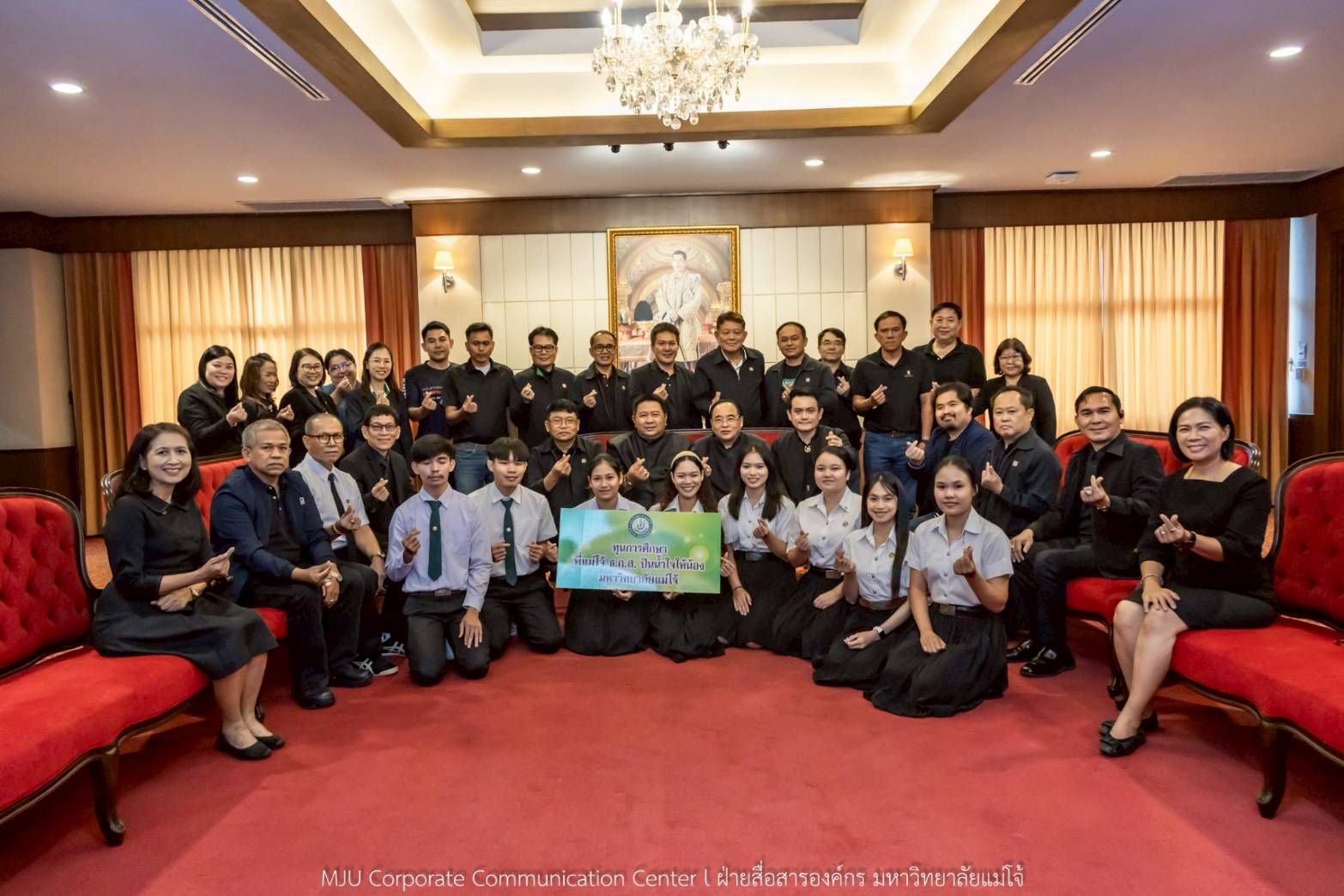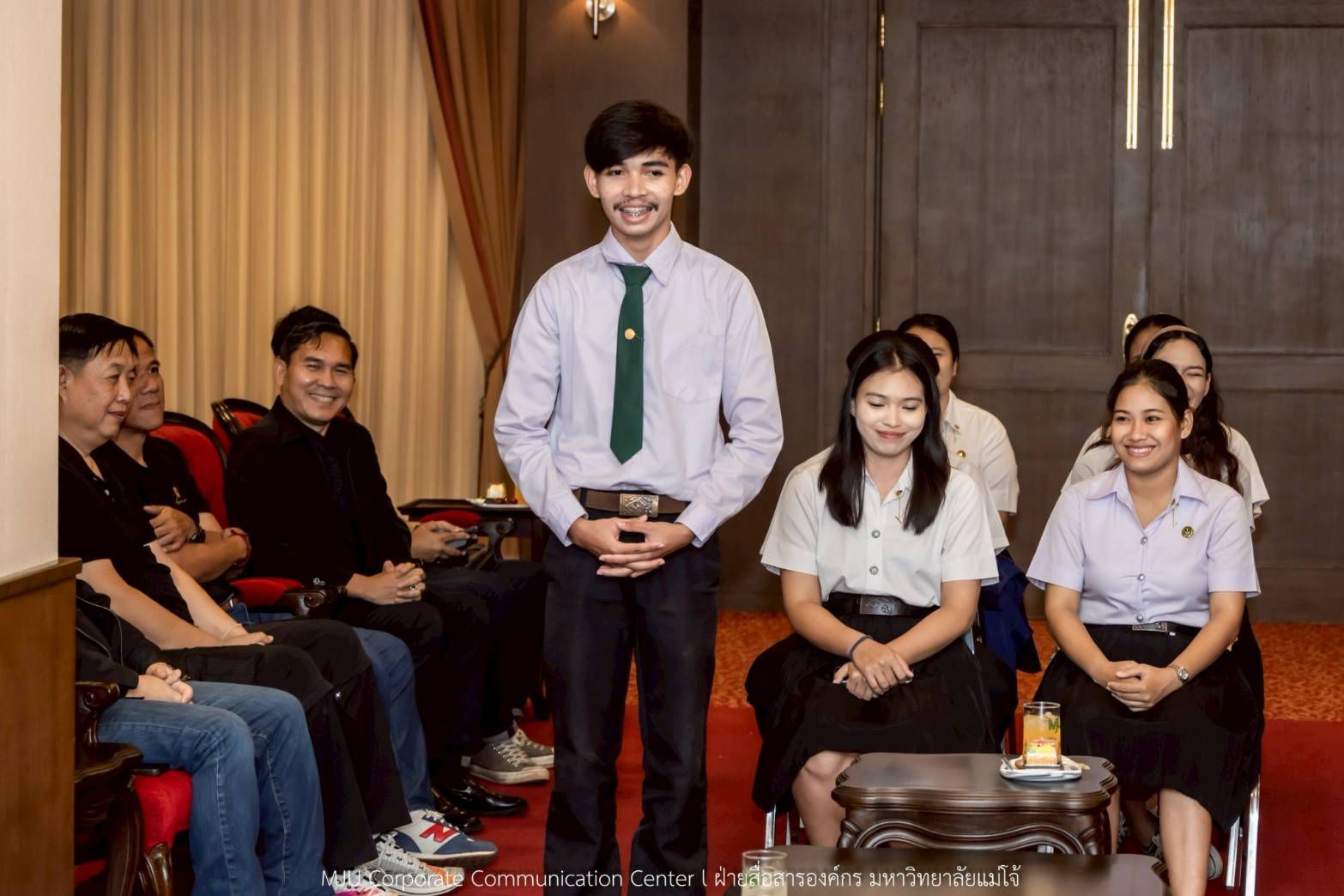 ทั้งนี้ ผู้แทนนักศึกษาผู้รับทุนได้ร่วมให้การต้อนรับและกล่าวแสดงความขอบคุณ ณ ห้องอินทนิล ชั้น 2 สำนักงานมหาวิทยาลัย มหาวิทยาลัยแม่โจ้.