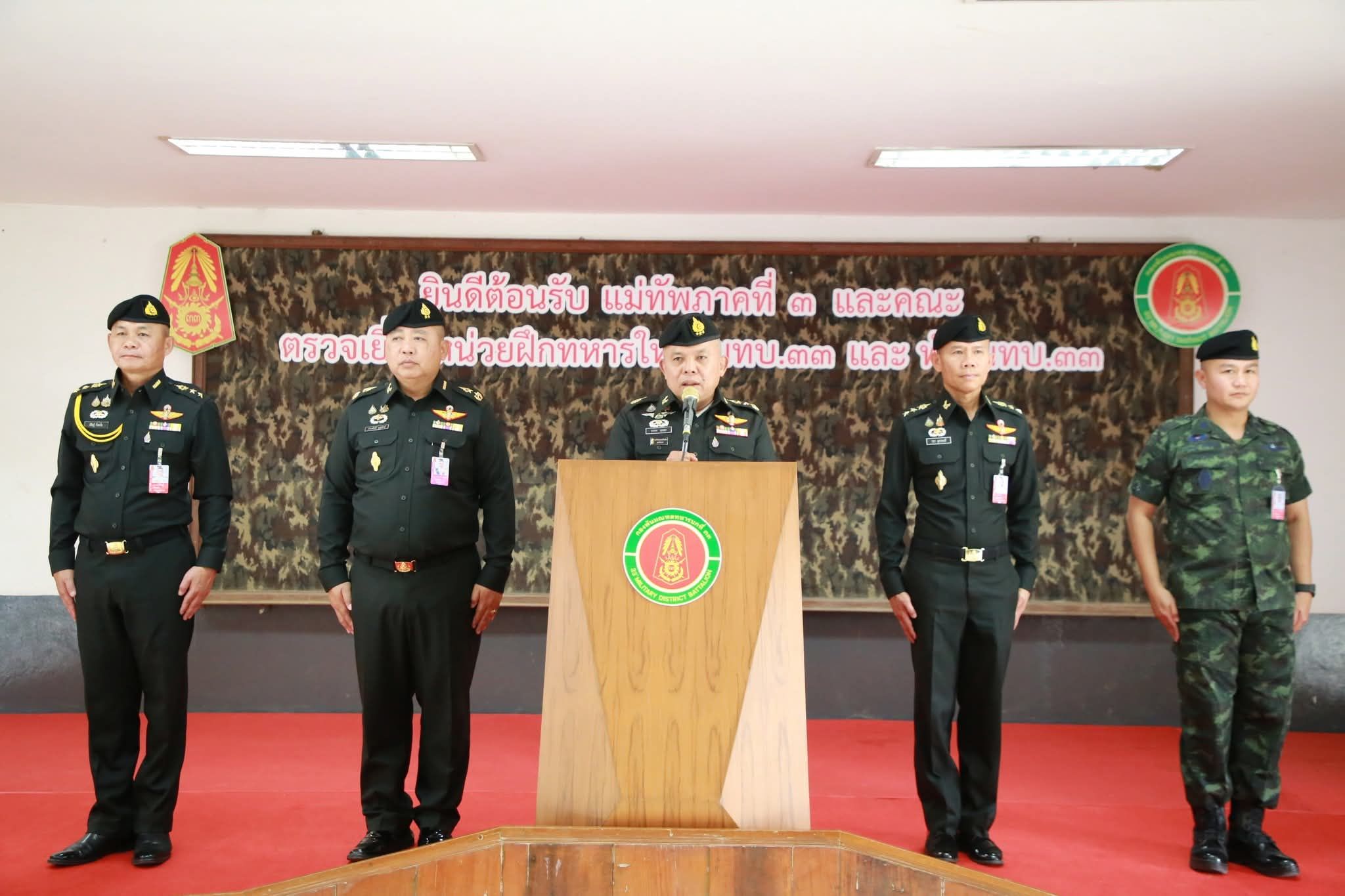 ซึ่งในโอกาสนี้ แม่ทัพภาคที่ 3 ได้กล่าวให้โอวาทและให้กำลังใจแก่น้องๆทหารใหม่ พร้อมพบผู้ฝึกทหารใหม่ และครูฝึกทหารใหม่ เพื่อรับฟังความคิดเห็นและข้อเสนอแนะ พร้อมทั้งมอบสิ่งของบำรุงขวัญให้แก่ทหารใหม่ทั้งสองหน่วยฝึก ณ หน่วยฝึกทหารใหม่ มทบ.33 และ หน่วยฝึกทหารใหม่ พัน.มทบ.33 ค่ายกาวิละ ต.วัดเกตุ อ.เมือง จ.เชียงใหม่.