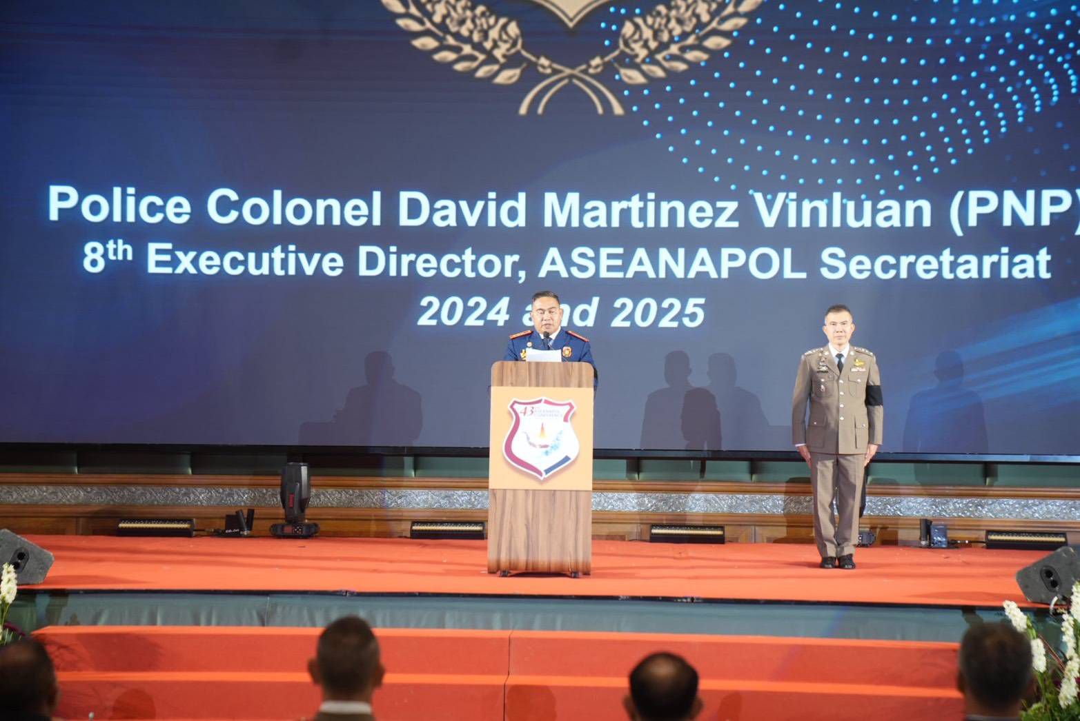 6 พฤศจิกายน 2568 เวลา 14.00 น. พล.ต.อ.กิตติ์รัฐ พันธุ์เพ็ชร์ ผู้บัญชาการตำรวจแห่งชาติ (ผบ.ตร.) เป็นประธานปิดการประชุมหัวหน้าตำรวจอาเซียน ครั้งที่ 43 โดยมี พล.ต.อ.กรไชย คล้ายคลึง รอง ผบ.ตร., พล.ต.ท.ยิ่งยศ เทพจำนงค์ ผู้ช่วย ผบ.ตร., พล.ต.ท.อาชยน ไกรทอง ผู้บัญชาการตำรวจปราบปรามยาเสพติด, คณะสมาคมแม่บ้านตำรวจ นำโดย คุณกนกวรรณ พันธุ์เพ็ชร์ นายกสมาคมแม่บ้านตำรวจ และผู้เข้าร่วมการประชุม ร่วมพิธี ณ ห้องแกรนด์บอลรูม โรงแรมแกรนด์ไฮแอท เอราวัณ กรุงเทพมหานคร