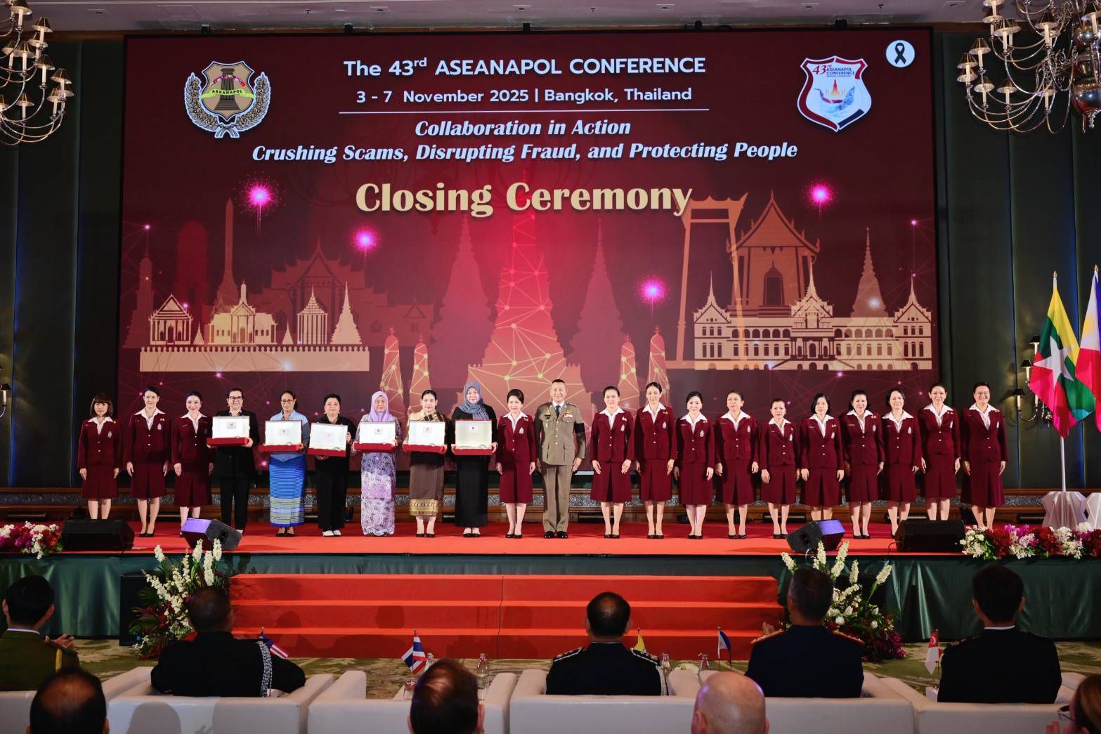 ทั้งนี้ หัวหน้าตำรวจอาเซียนทั้ง 10 ประเทศ ได้ร่วมลงนามแถลงการณ์ร่วมการประชุมหัวหน้าตำรวจอาเซียน ครั้งที่ 43 โดยมีมติในการร่วมมือปราบปรามอาชญากรรมข้ามชาติ 8 ด้าน ได้แก่ การลักลอบค้ายาเสพติด, การลักลอบค้าอาวุธ, การก่อการร้าย, การค้ามนุษย์, อาชญากรรมเกี่ยวกับสัตว์ป่า, อาชญากรรมทางการเงิน, อาชญากรรมทางไซเบอร์ และอาชญากรรมทางทะเล โดยมุ่งเน้นการปราบปรามสแกมเมอร์ และการค้ามนุษย์