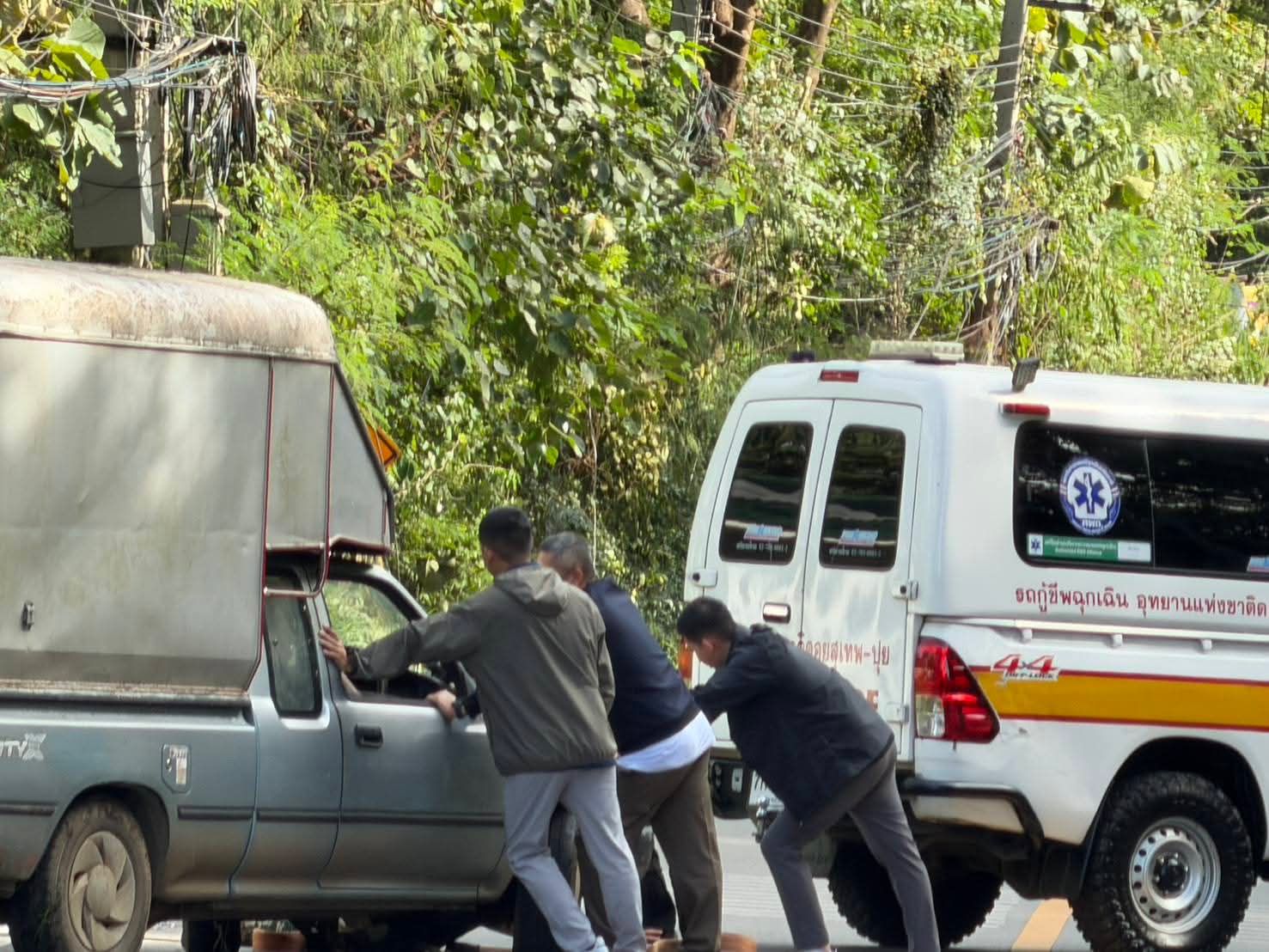 วันที่ 7 พ.ย.68 เวลา 14.50 น. พ.ต.ท.นิธิภัทร์ บุลมาก สว.ส.ทท.1 กก.2 บก.ทท.2(เชียงใหม่) พร้อมด้วยเจ้าหน้าที่สายตรวจ ได้ประสานงานอย่างรวดเร็วกับทีมกู้ชีพดอยสุเทพ เพื่อระดมกำลังเข้าให้ความช่วยเหลือพ่อค้ารายหนึ่ง หลังประสบเหตุรถยนต์ที่จอดไว้เกิดไหลลงไปบริเวณไหล่ถนนด้านหน้าสำนักงานปศุสัตว์ ทำให้รถติดค้างอยู่และไม่สามารถเคลื่อนย้ายได้