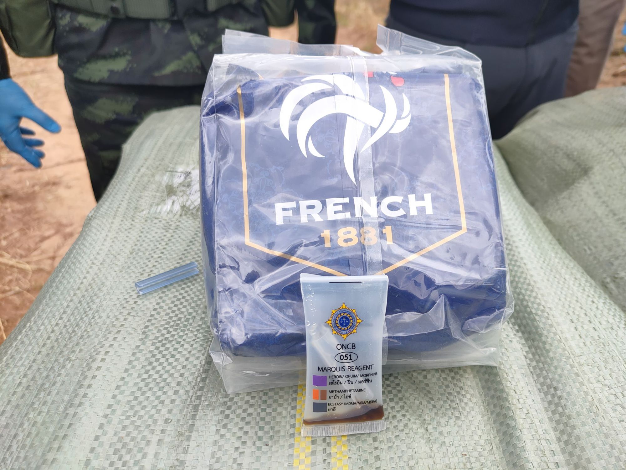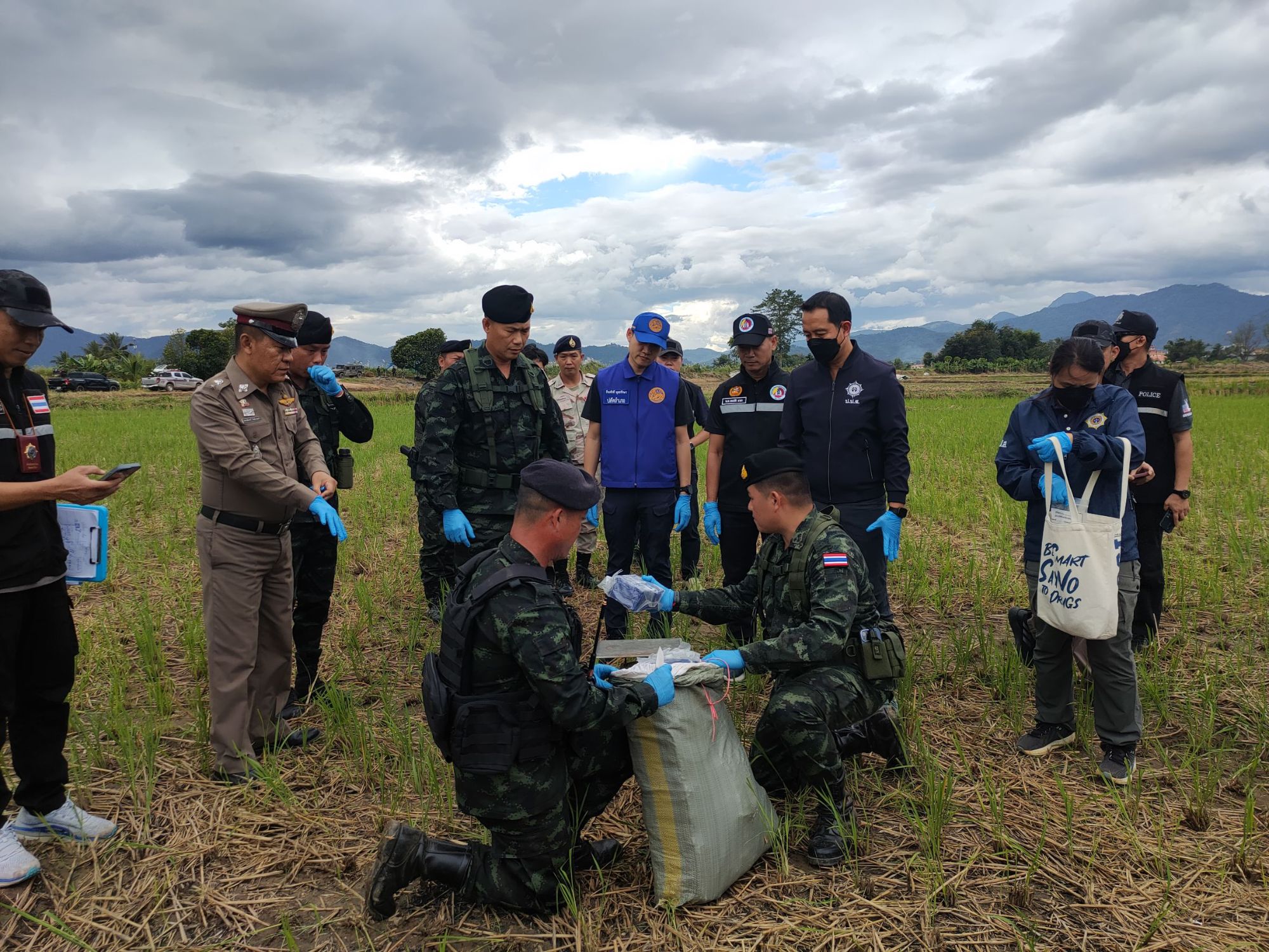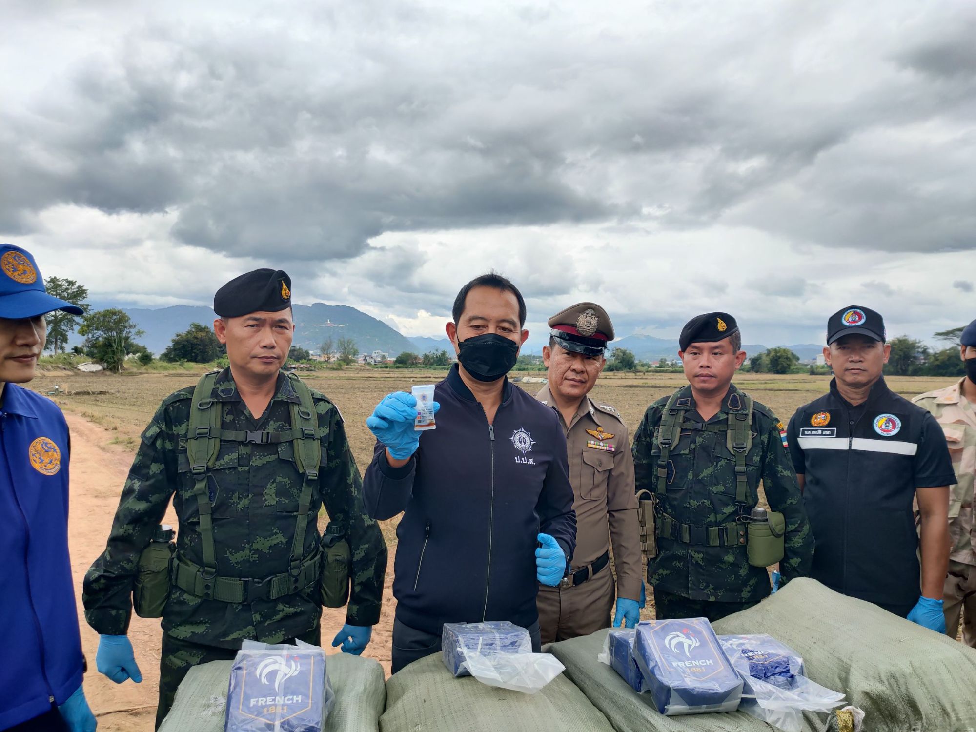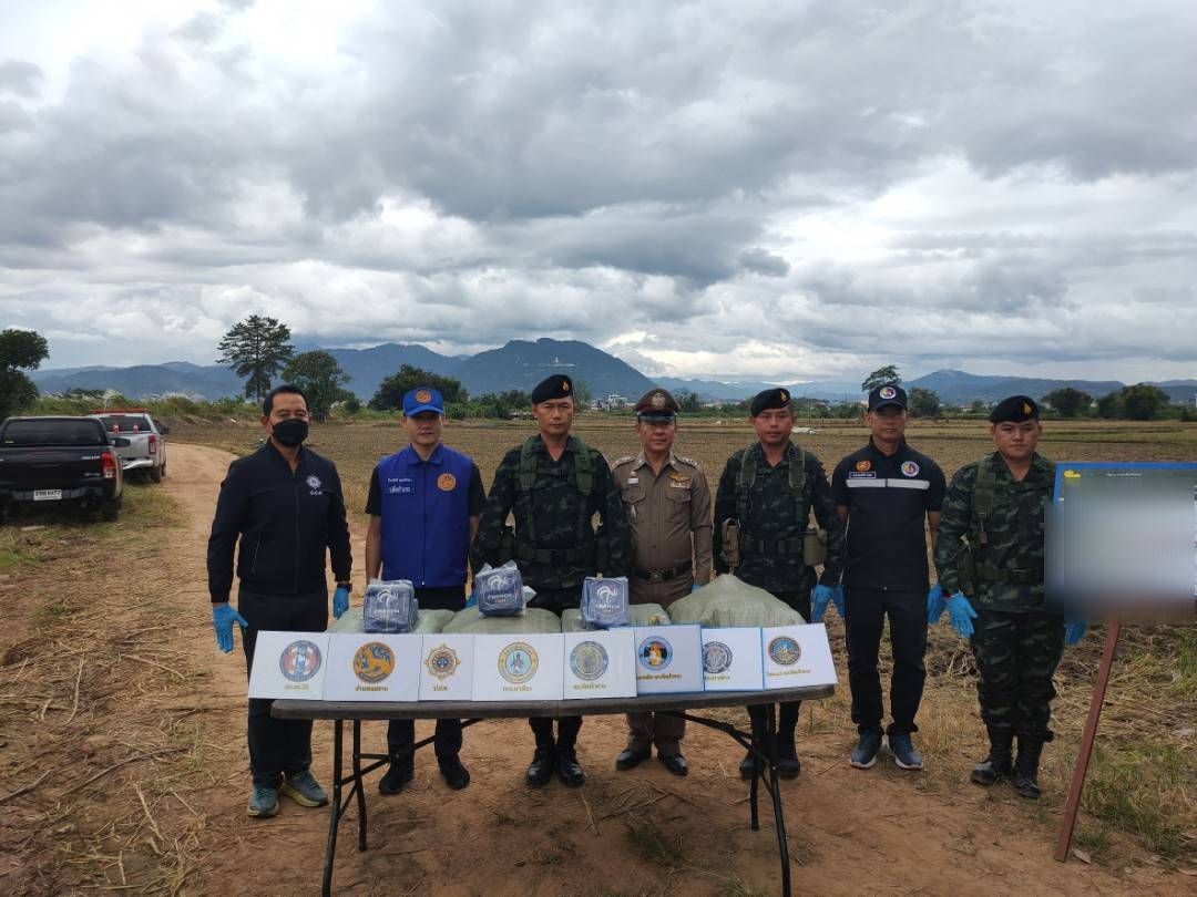 ต่อมาเมื่อวันที่ 8 พฤศจิกายน 2568 เวลา 06.30 น. หน่วยได้จัดกำลังพลทำการ ลาดตระเวนพิสูจน์ทราบ บริเวณพื้นที่เกิดเหตุ ผลการปฏิบัติ ตรวจพบกระสอบดัดแปลงเป็นเป้สะพายหลัง จำนวน 4 กระสอบ ภายในบรรจุยาเสพติดให้โทษประเภท 1 (ไอซ์) กระสอบละ 25 ก้อน น้ำหนักก้อนละ 1 กิโลกรัม รวมจำนวนทั้งสิ้นประมาณ 100 ก้อน น้ำหนักรวมประมาณ 100 กิโลกรัม