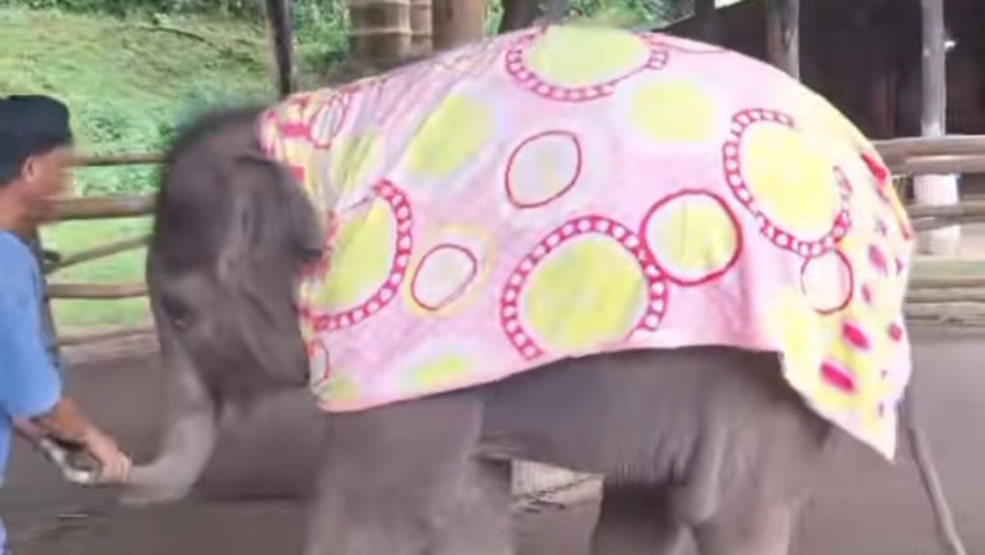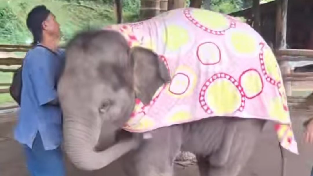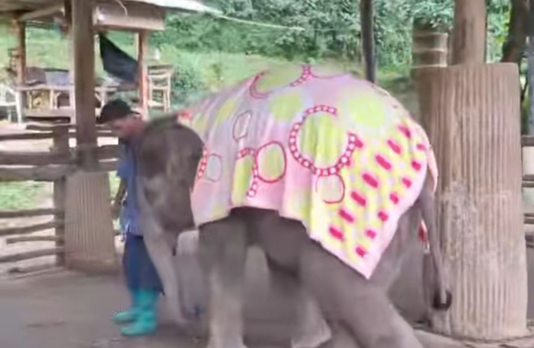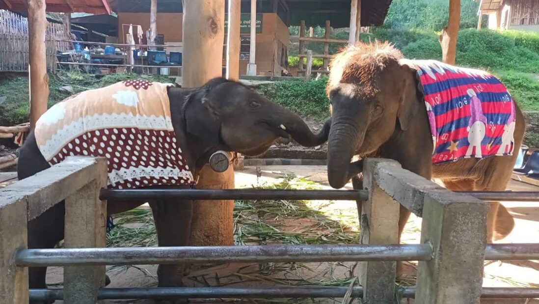 ‘น้องชูใจ’ ช้างน้อยสุดน่ารัก เป็นนางแบบทดลองสวมใส่ผ้าห่มเป็นตัวแรก เตรียมพร้อมรับลมหนาวที่กำลังจะมาถึง