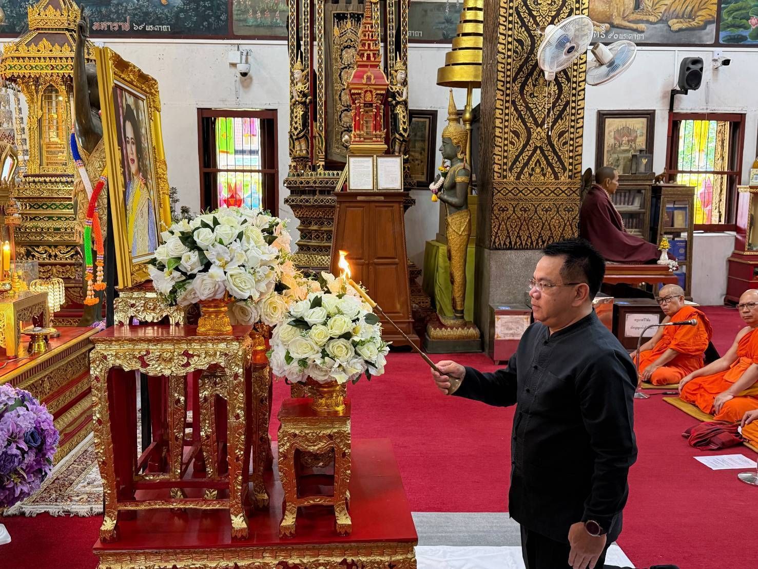 ในการนี้ นายโยธิน ประสงค์ความดี รองผู้ว่าราชการจังหวัดลำพูน เป็นประธานฝ่ายฆราวาส นำข้าราชการ ทหาร ตำรวจ หน่วยงานภาครัฐ ภาคเอกชน และประชาชนชาวลำพูน เข้าร่วมพิธีด้วยความสำนึกในพระมหากรุณาธิคุณอันหาที่สุดมิได้
