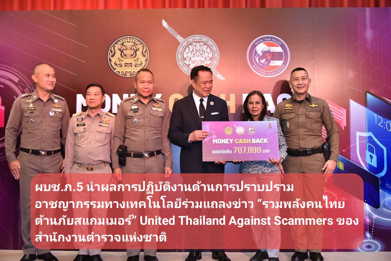 ผบช.ภ.5 นำผลการปฏิบัติงานด้านการปราบปรามอาชญากรรมทางเทคโนโลยีร่วมแถลงข่าว “รวมพลังคนไทย ต้านภัยสแกมเมอร์” United Thailand Against Scammers