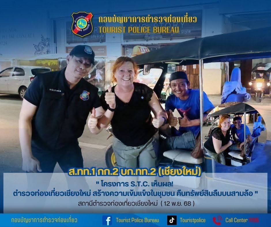 เมื่อวันที่ 12 พ.ย.68 เวลา 00.30 น. (ต่อเนื่องการค้นหาจากวันที่ 11 พ.ย.68 เวลา 23.00 น.) เกิดเรื่องราวที่สร้างความประทับใจให้กับนักท่องเที่ยวชาวต่างชาติ เมื่อเธอได้เข้าขอความช่วยเหลือจากตำรวจท่องเที่ยว หลังลืมกระเป๋าที่มีทรัพย์สินสำคัญไว้บนรถสามล้อ