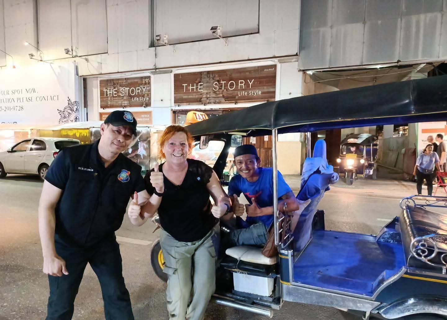 ด้วยความรวดเร็ว ในที่สุดก็สามารถติดต่อคนขับรถสามล้อคันดังกล่าวได้ ซึ่งคนขับแจ้งว่าได้นำกระเป๋าไปส่งคืนยังโรงแรมที่พักของนักท่องเที่ยวเรียบร้อยแล้ว ข่าวดีนี้สร้างรอยยิ้มและความประทับใจให้กับนักท่องเที่ยวเป็นอย่างมาก เธอได้กล่าวขอบคุณคนขับรถสามล้อและตำรวจท่องเที่ยวที่ได้ประสานงานและให้ความช่วยเหลือจนได้รับทรัพย์สินคืนอย่างปลอดภัย พร้อมทั้งได้ขอให้รถสามล้อคันเดิมมารับและไปส่งถึงโรงแรมที่พัก