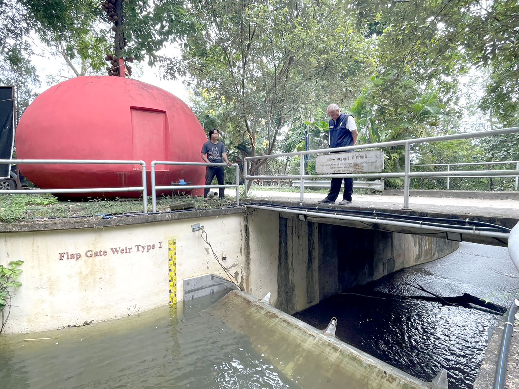 นายเกื้อกูล มานะสัมพันธ์สกุล ผู้อำนวยการโครงการชลประทานเชียงใหม่ กล่าวว่า ด้วยปัจจุบันเขื่อนภูมิพล จังหวัดตาก มีปริมาณน้ำเต็มความจุ 13,397 ล้าน ลบ.ม. ซึ่งมีน้ำไหลเข้าเขื่อนวันนี้ 88 ล้าน ลบ.ม. มีการระบายน้ำ 53 ล้าน ลบ.ม. ประกอบกับกรมชลประทานได้มีนโยบายให้มีการหน่วงน้ำไว้ในพื้นที่ตอนบนของลุ่มน้ำปิง เพื่อบรรเทาน้ำหลากในลุ่มน้ำเจ้าพระยา ในวันนี้ ทางโครงการชลประทานเชียงใหม่ จึงได้ดำเนินการยกฝายพับได้ที่ติดตั้งบริเวณอาคารระบายน้ำล้นอ่างเก็บน้ำแม่จอกหลวง เพื่อหน่วงน้ำให้อยู่ในอ่างเก็บน้ำแม่จอกหลวง
