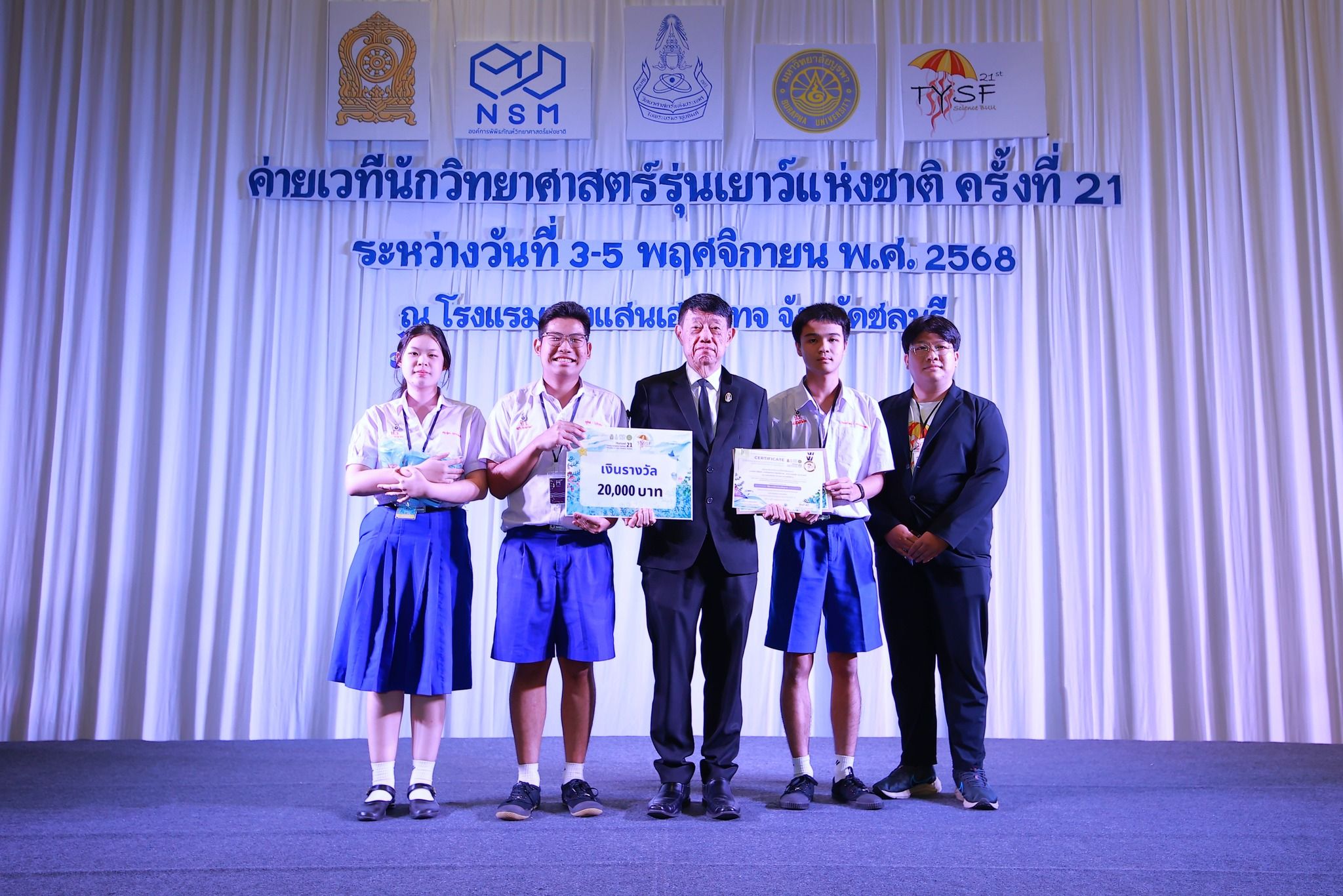 – รางวัล เหรียญทอง สาขาประยุกต์ ระดับชั้นมัธยมศึกษาตอนปลาย พร้อมรับเงินรางวัล 20,000 บาท