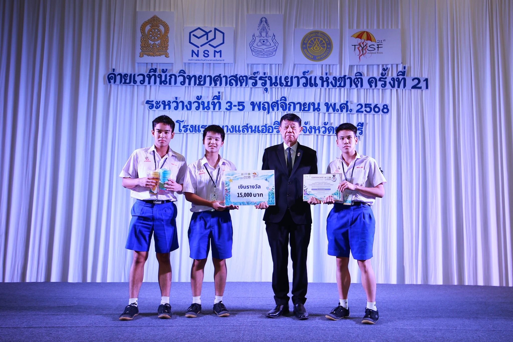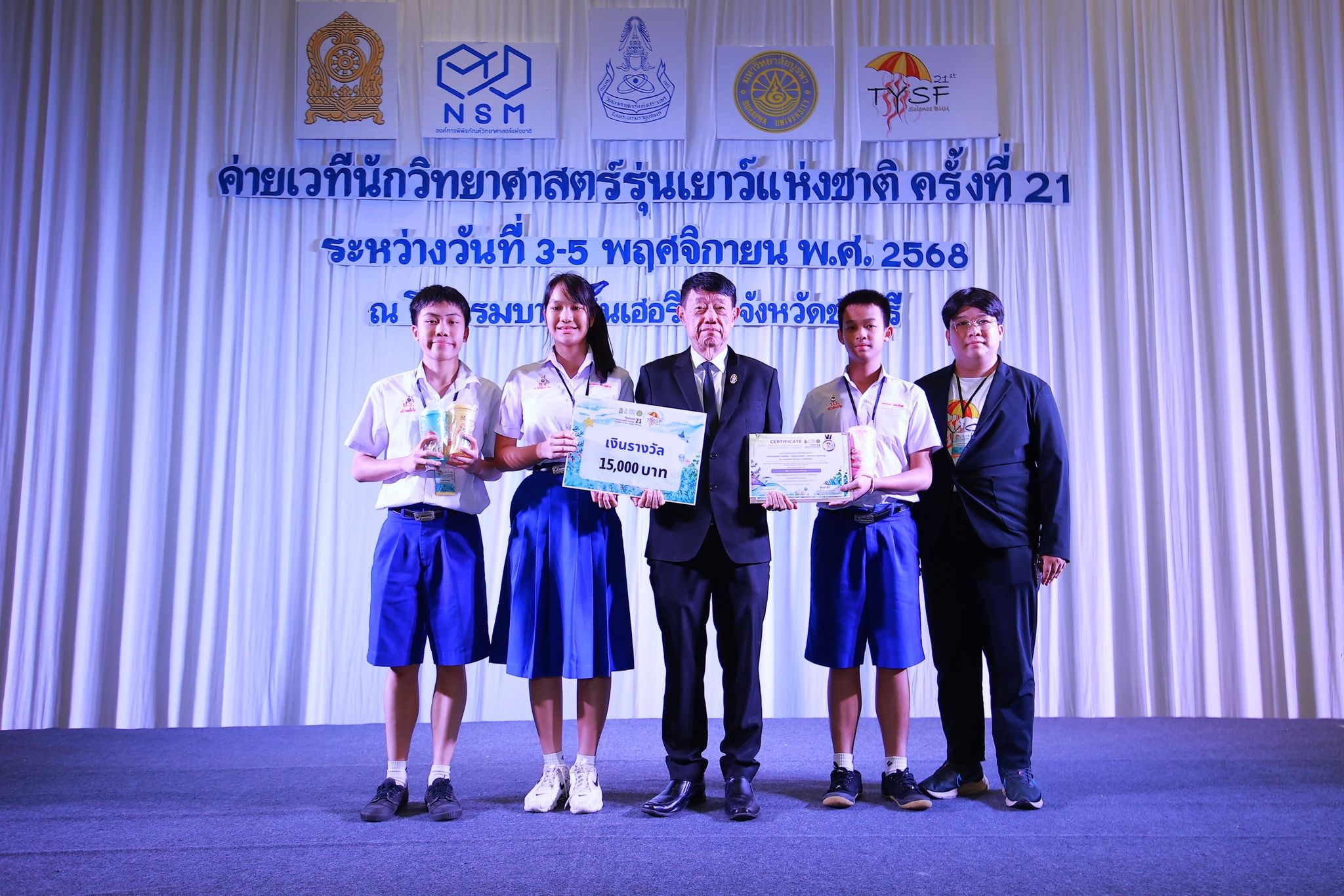 – รางวัล เหรียญเงิน สาขาประยุกต์ ระดับชั้นมัธยมศึกษาตอนปลาย พร้อมเงินรางวัล : 15,000 บาท