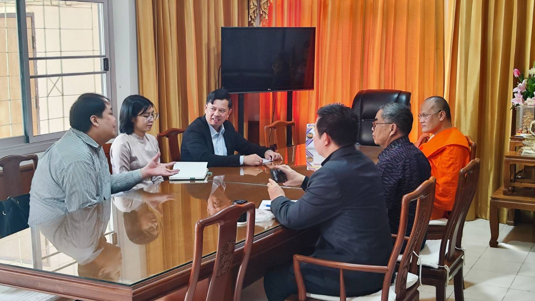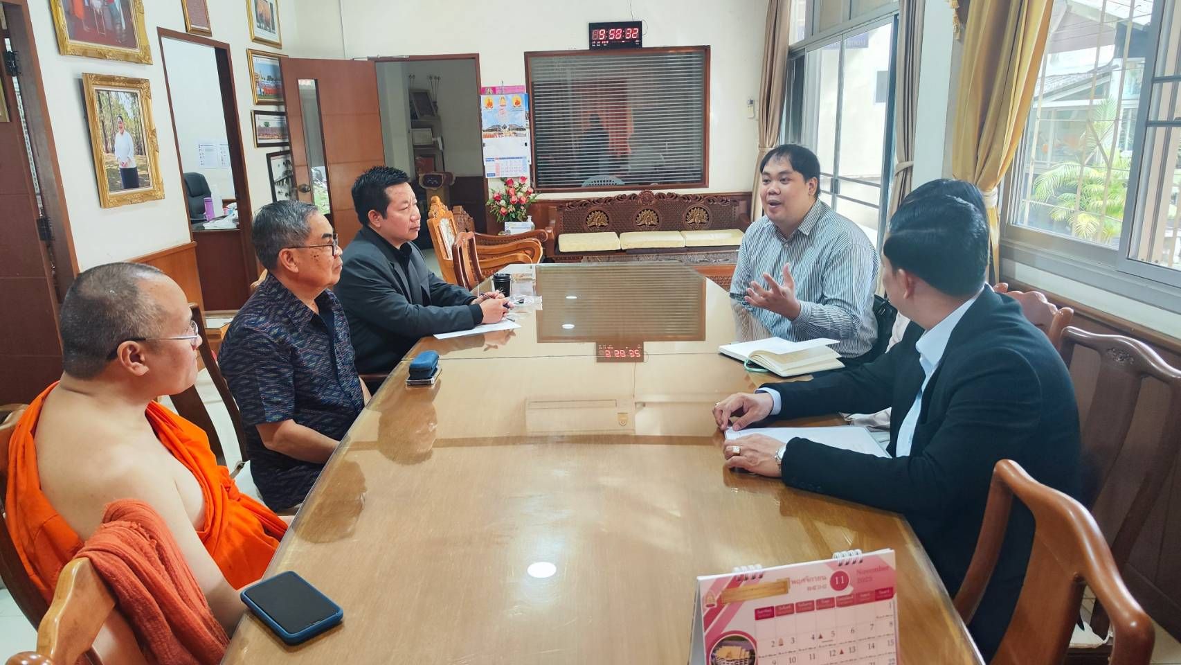 ให้การต้อนรับและร่วมประชุมหารือในนามของมหาวิทยาลัย โดยได้แลกเปลี่ยนข้อมูลด้านการเตรียมงาน ทั้งในด้านการอำนวยความสะดวก สถานที่พิธีการ ความพร้อมของคณะสงฆ์ ตลอดจนแนวทางความร่วมมือระยะยาวในการส่งเสริมพระพุทธศาสนาในระดับนานาชาติ